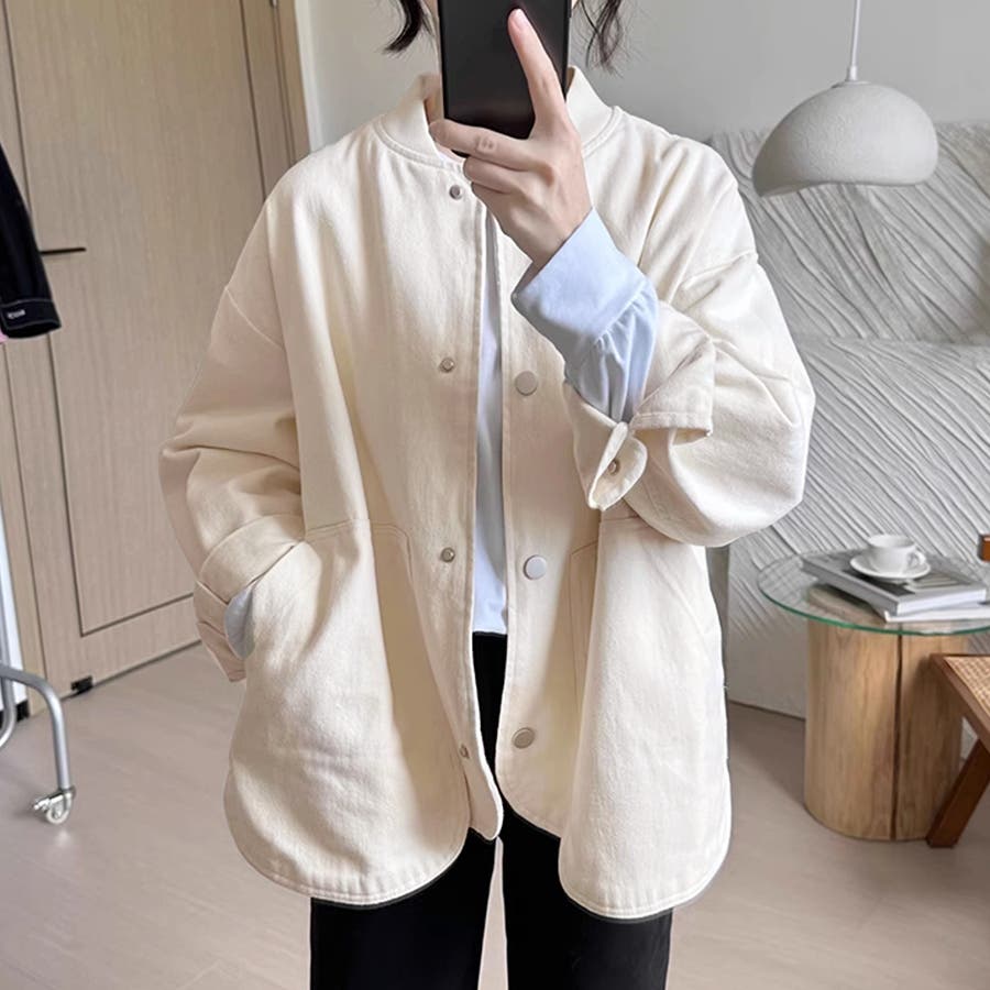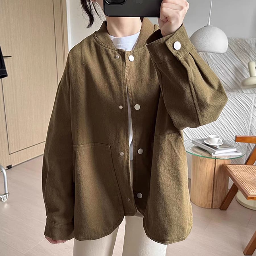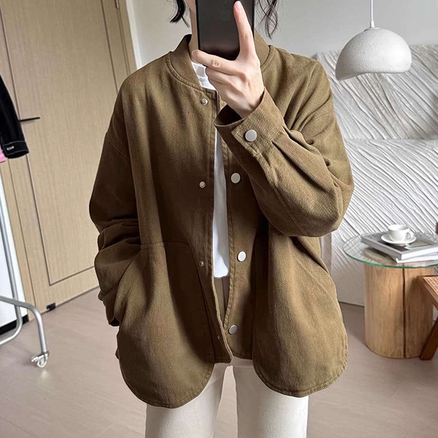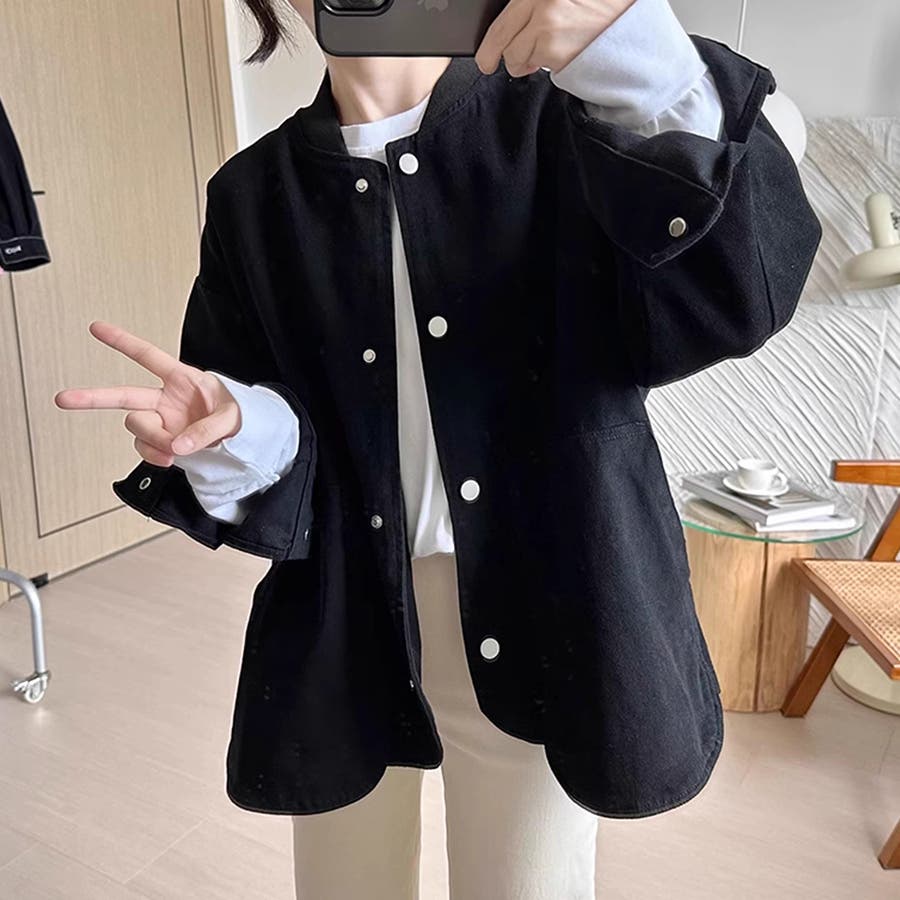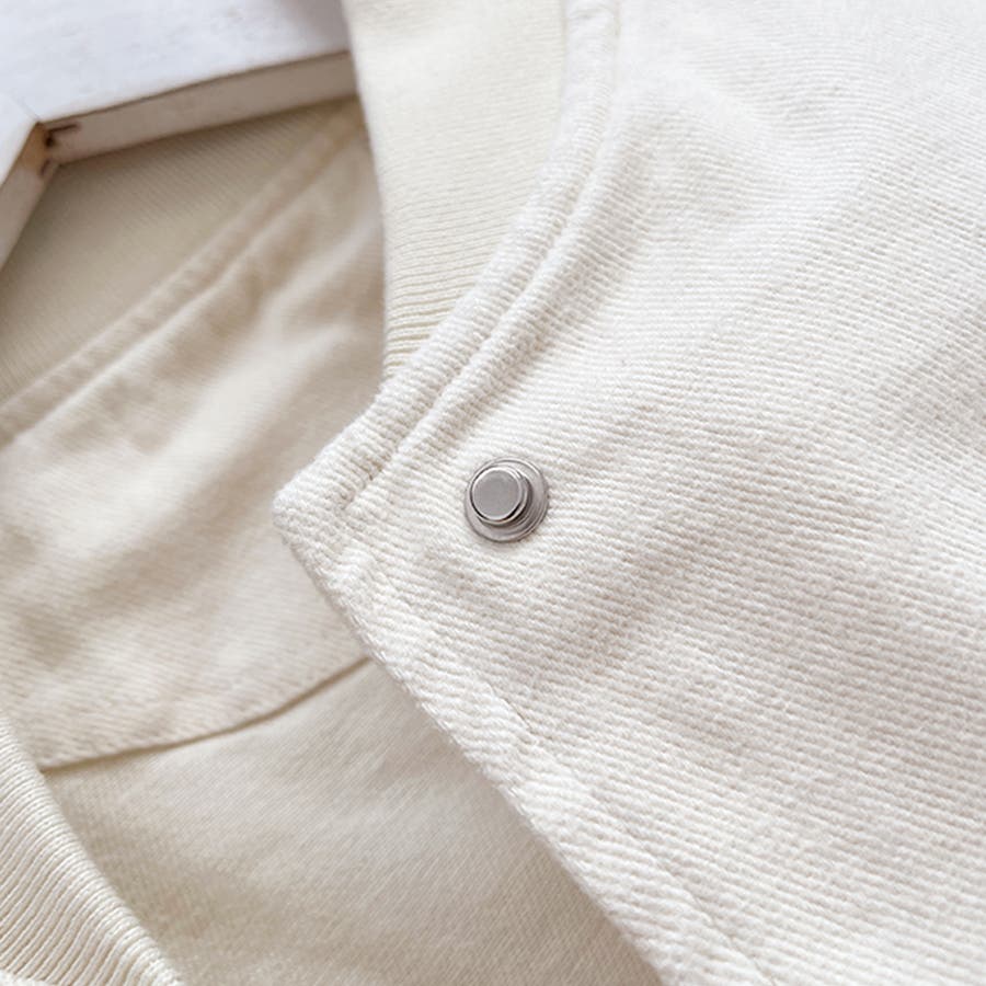 フロントのスナップボタンが印象的な、着映えジャケット。