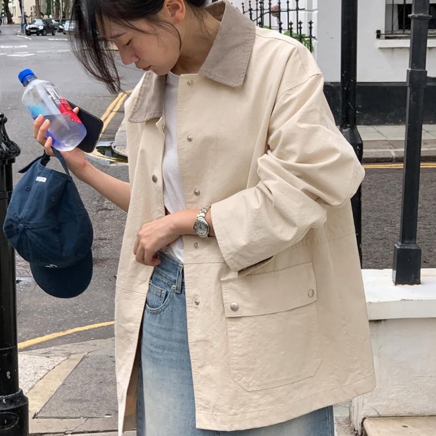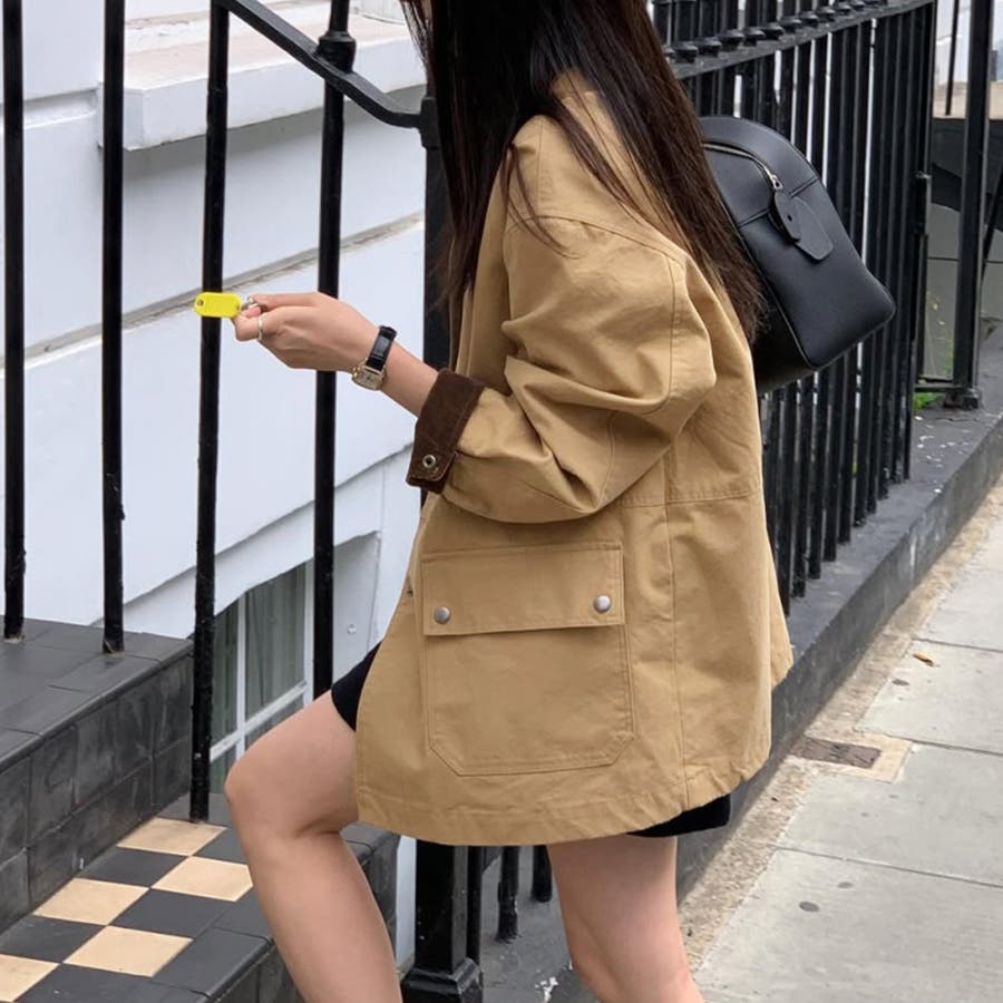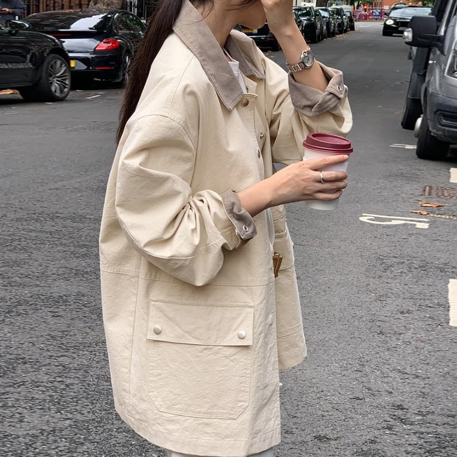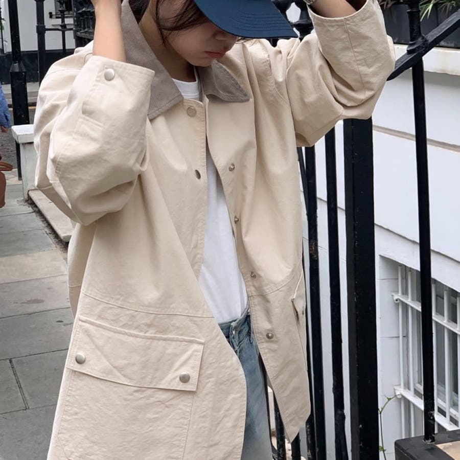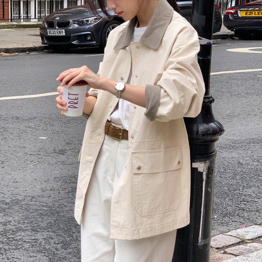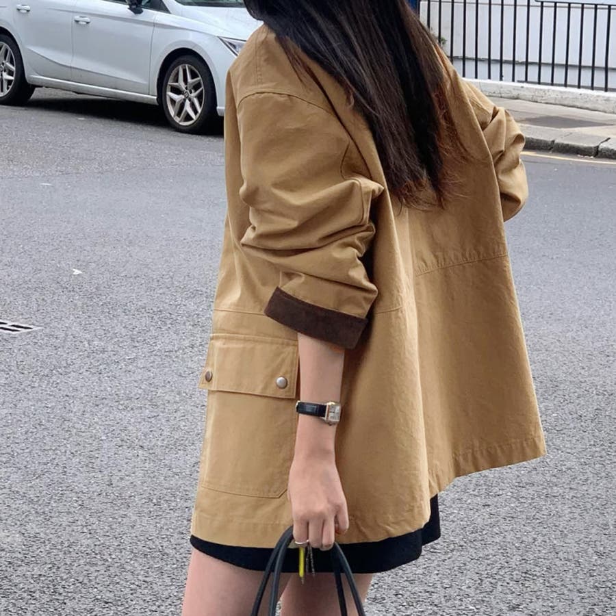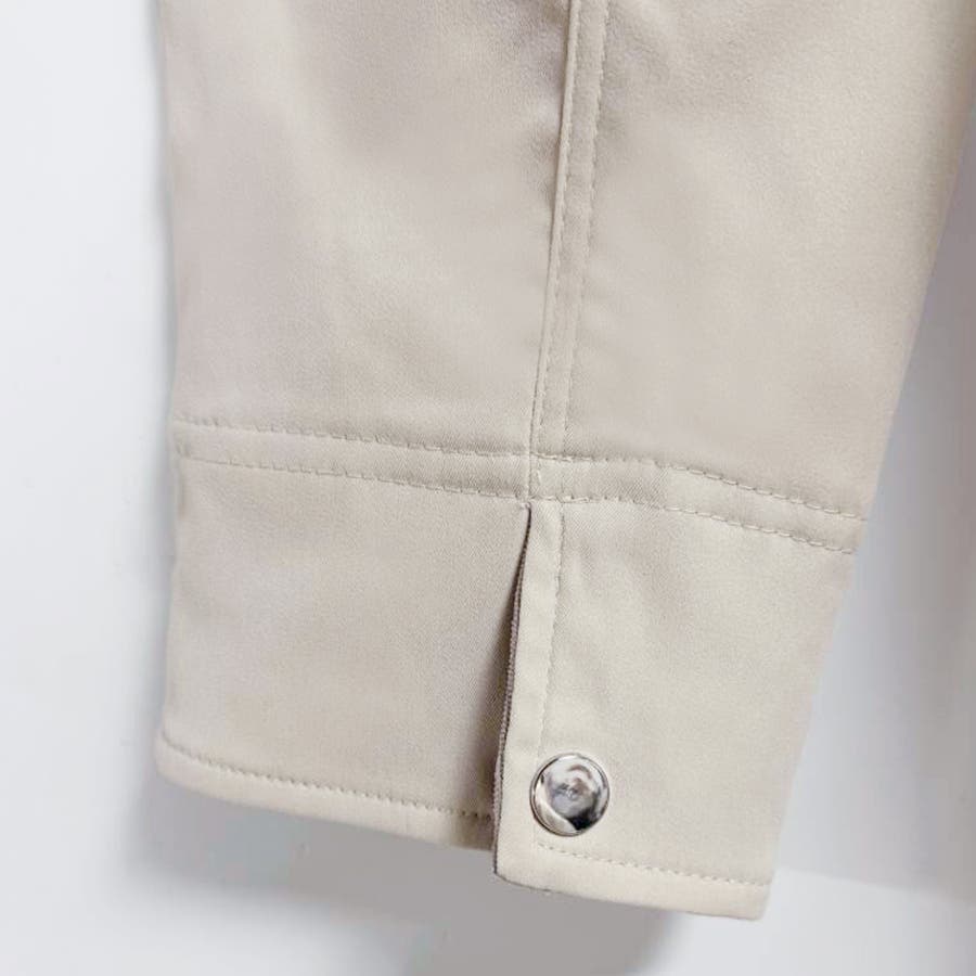 フラップ付きポケットや袖口のボタンなど、細部までこだわりのあるデザイン。