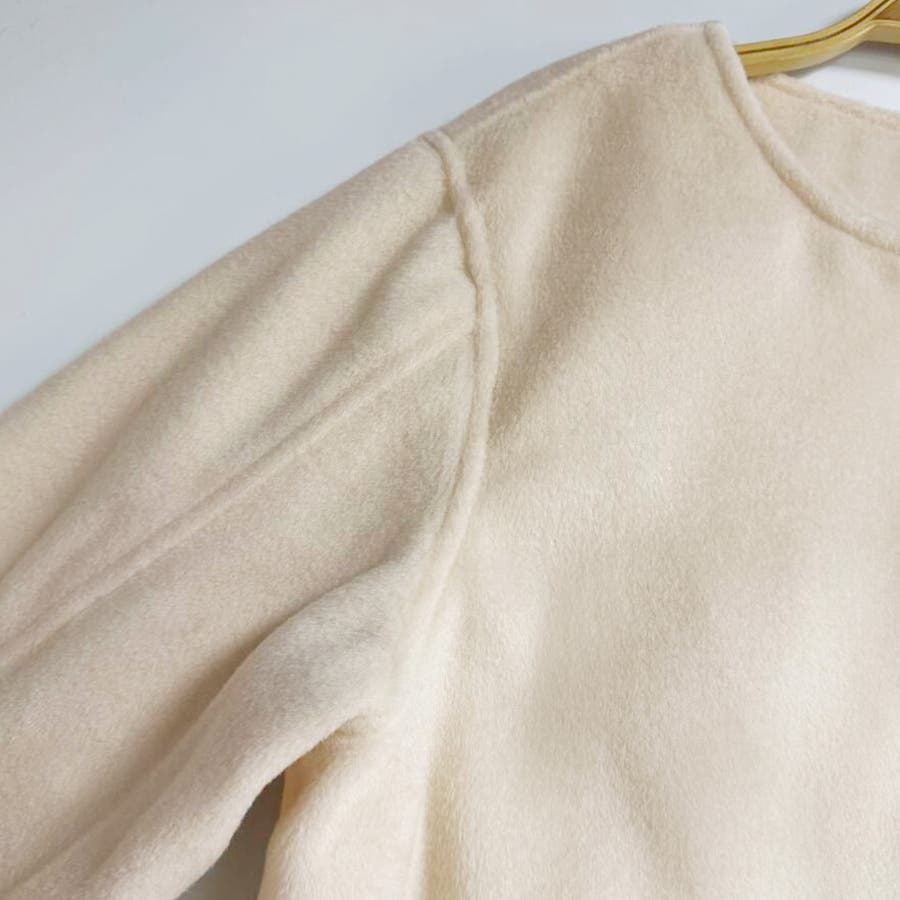 袖口にはさりげないボリュームを持たせ、女性らしい柔らかさを演出。