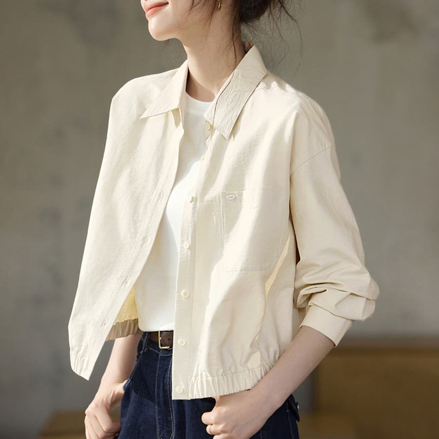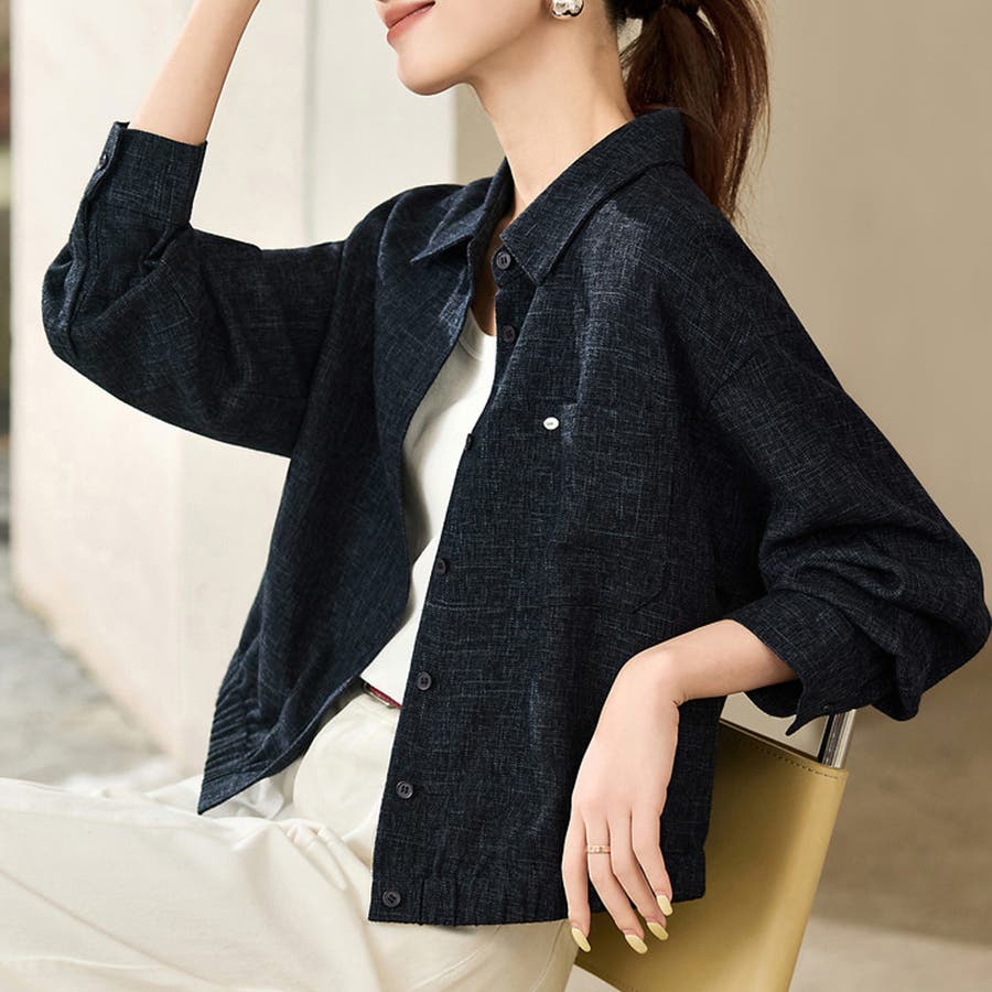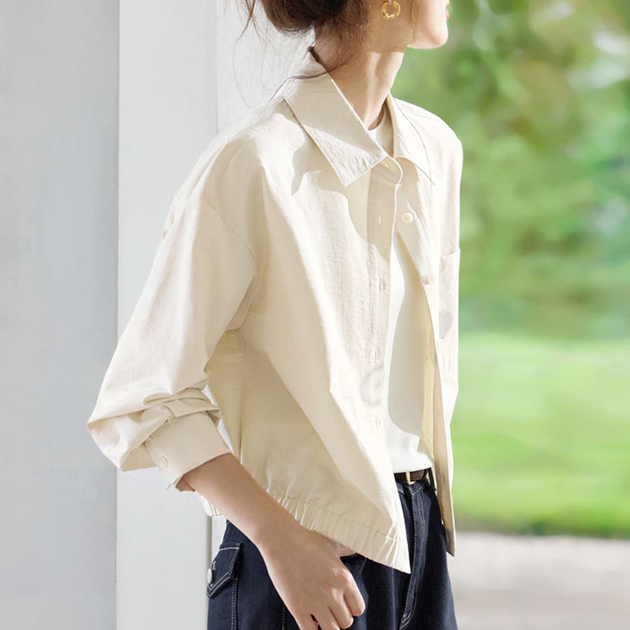 ギャザー袖が印象的な長袖シャツジャケットです。