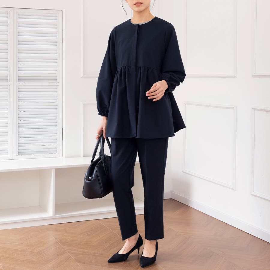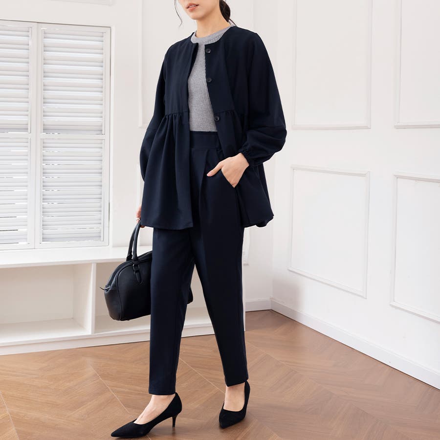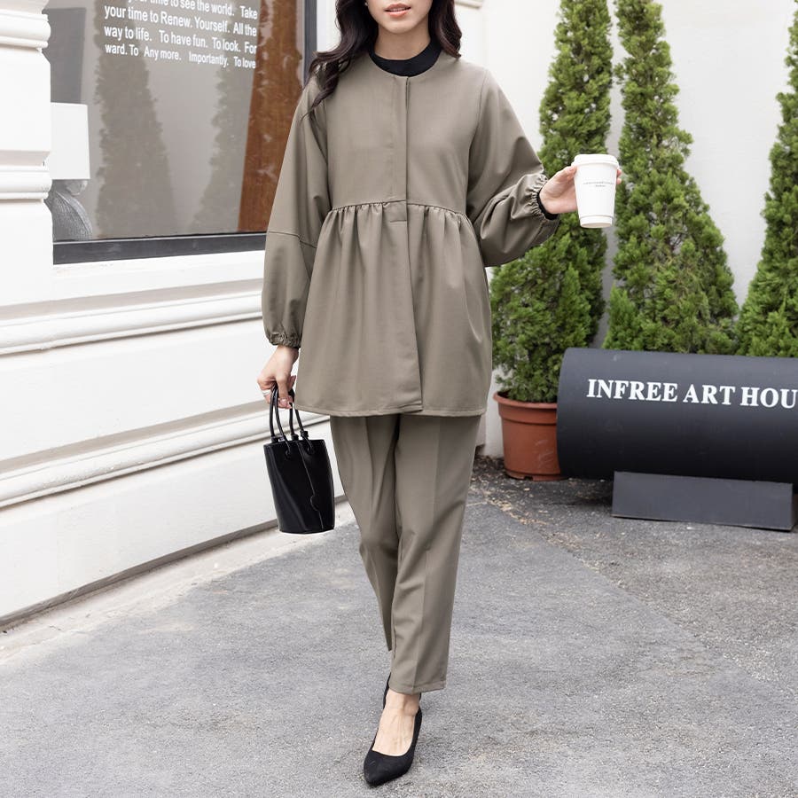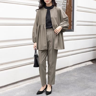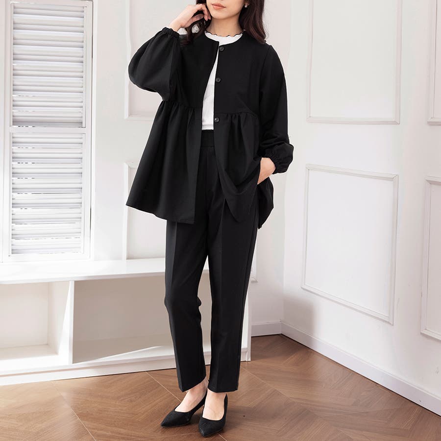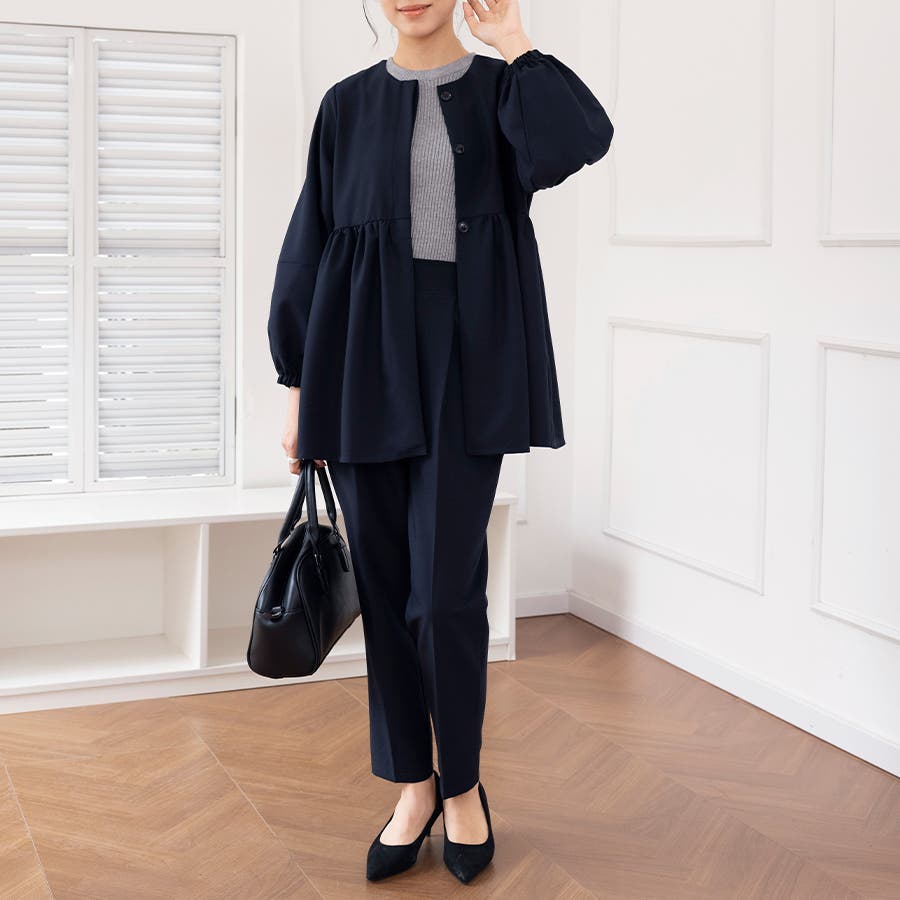 ボリュームスリーブとペプラムシルエットが上品な印象のセットアップが新登場!