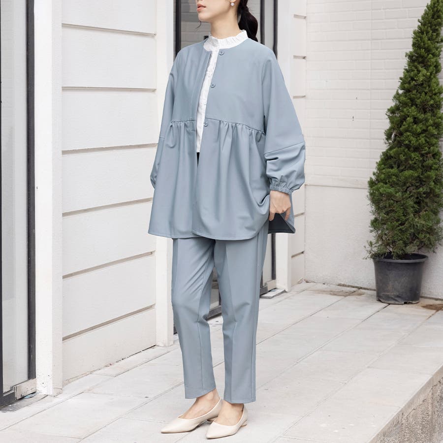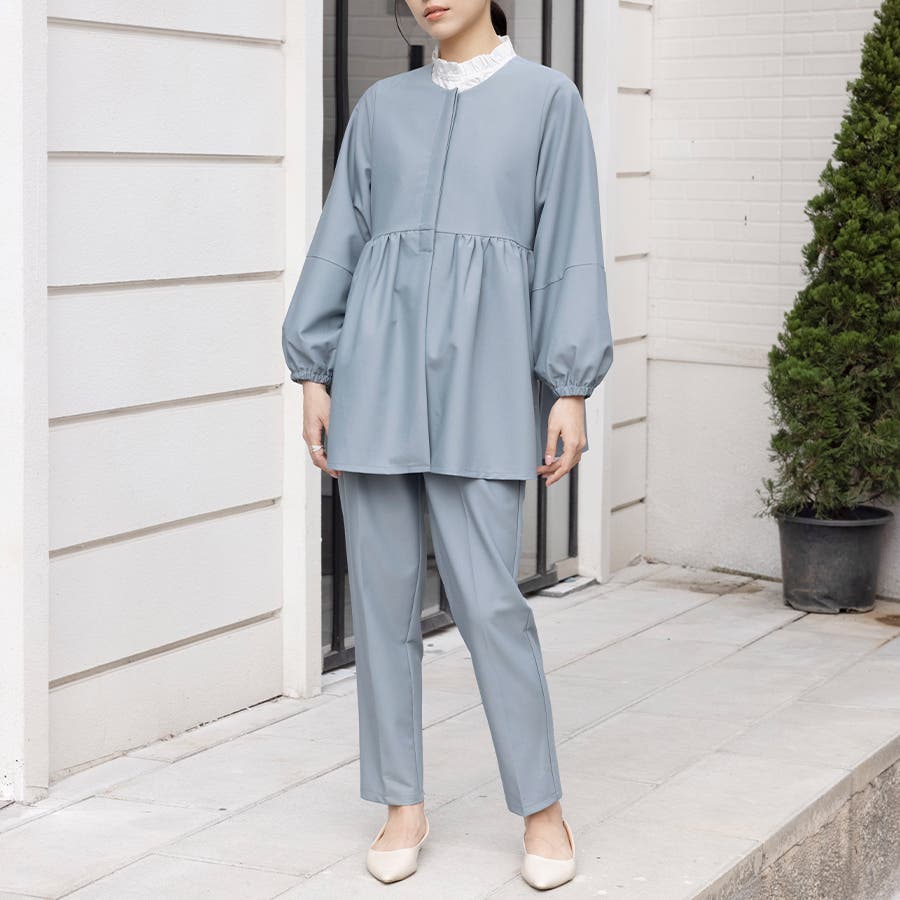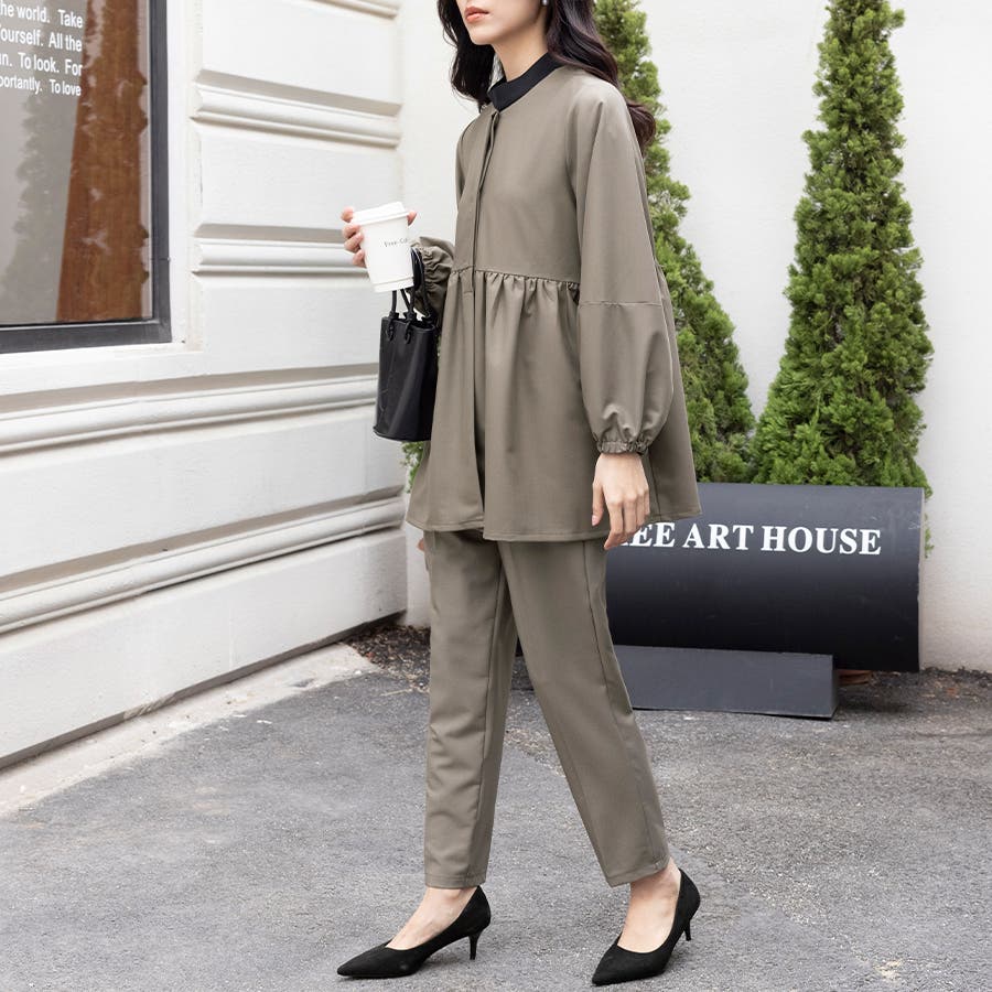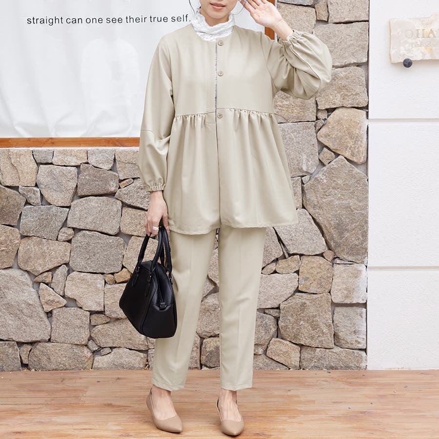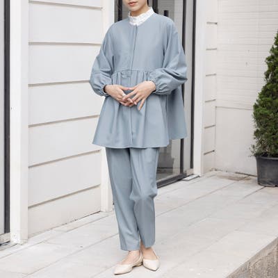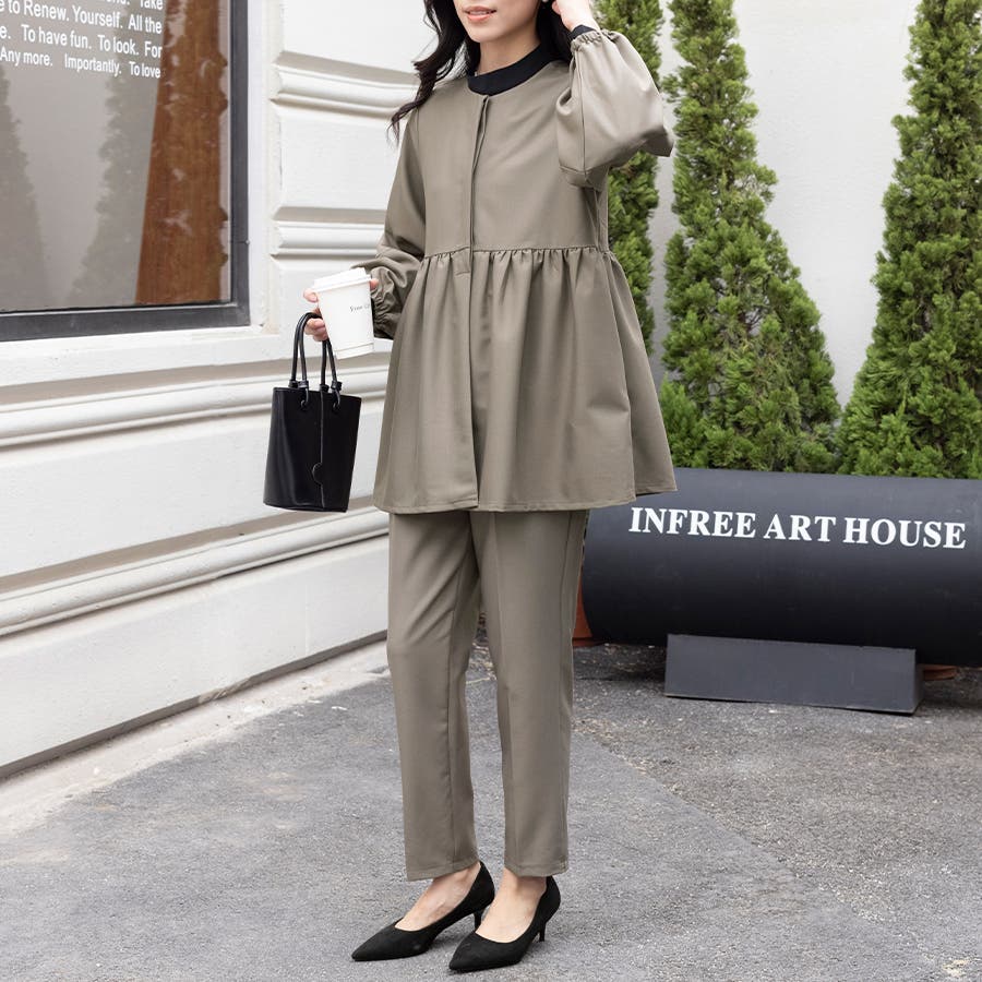 ボリュームスリーブとペプラムシルエットが上品な印象のセットアップが新登場!
