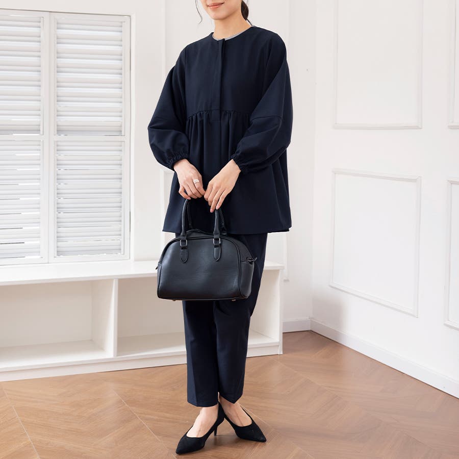 すっきりとしたラウンドネックが女性らしさを引き立てます。