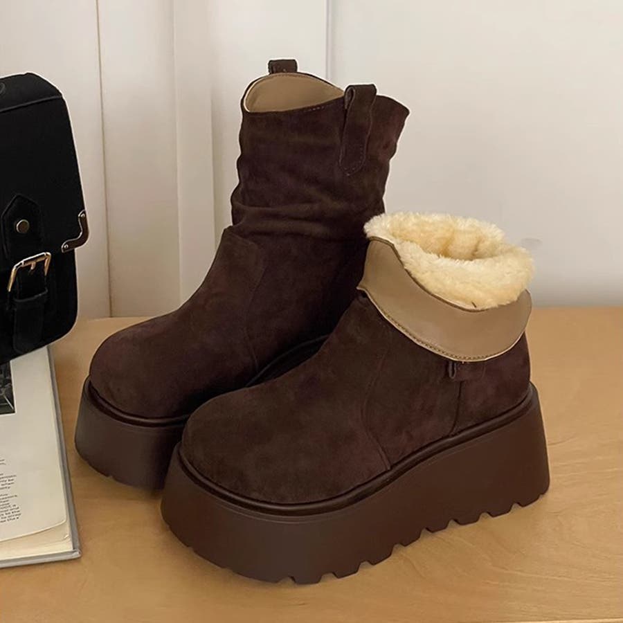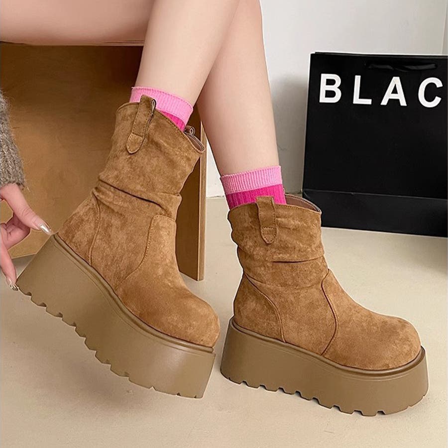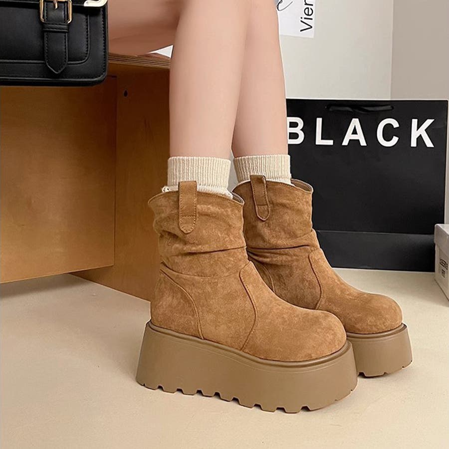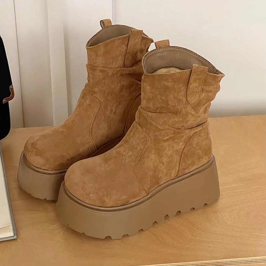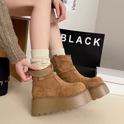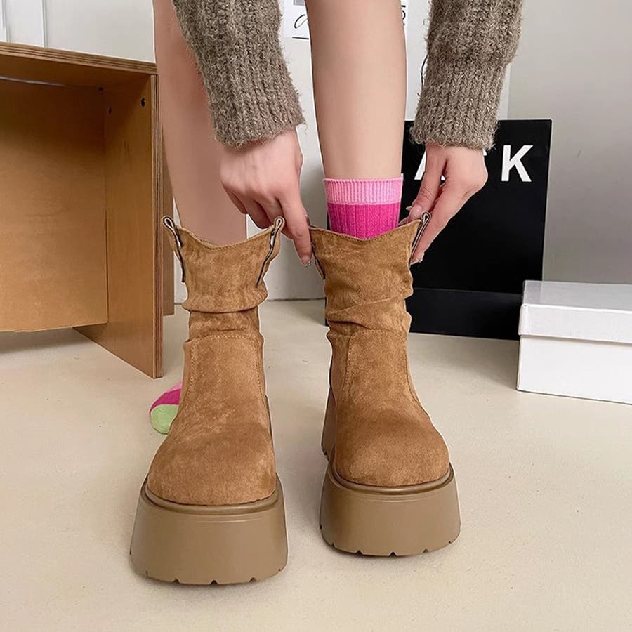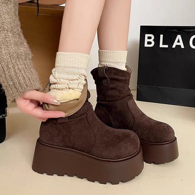 スエード調厚底ブーツ