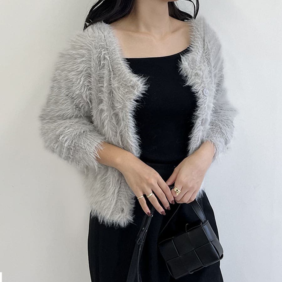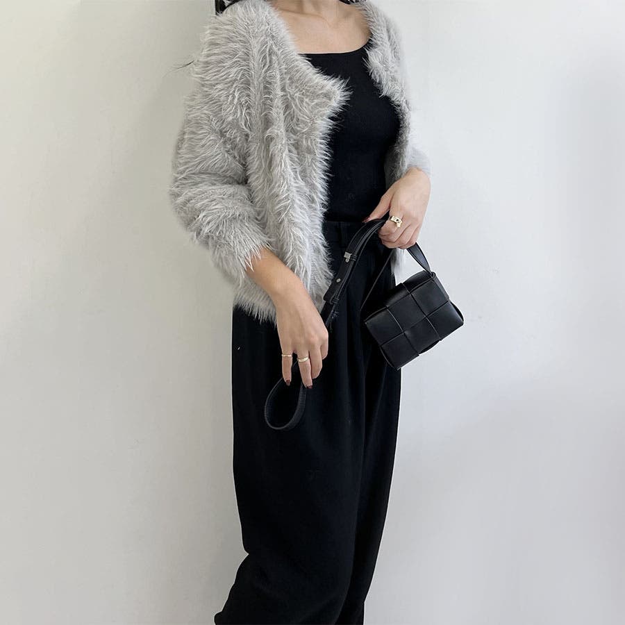 柔らかいシャギー素材が大人フェミニンな雰囲気を醸し、お手持ちのベーシックアイテムと合わせるだけで一気に洒落感UPします。