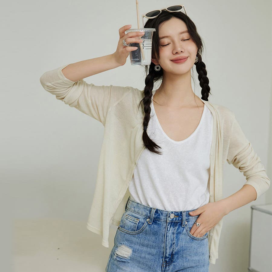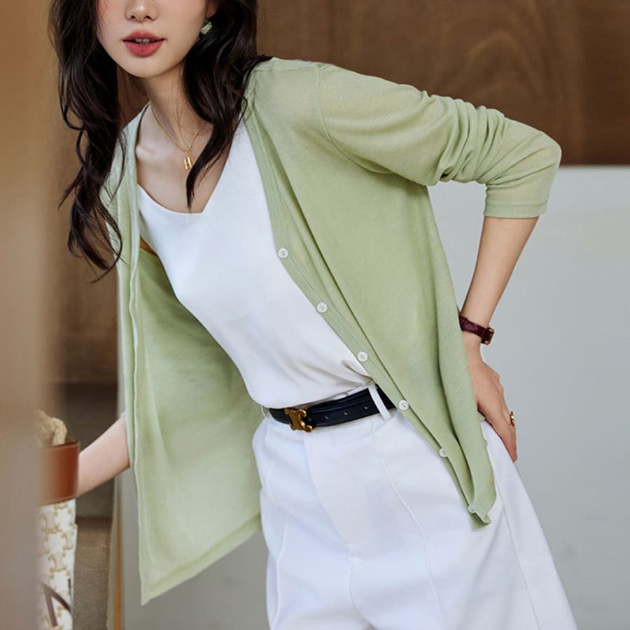 キャミソールなどのインナーと合わせるだけで、洗練されたこなれ感を演出できます。