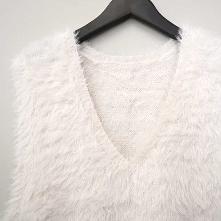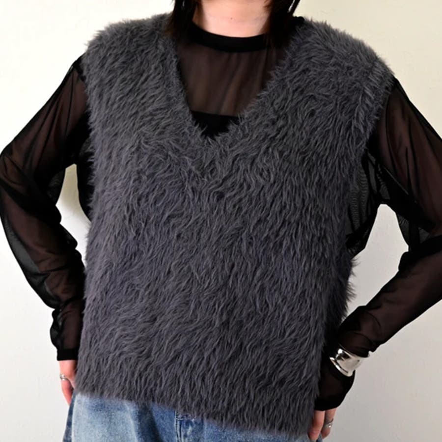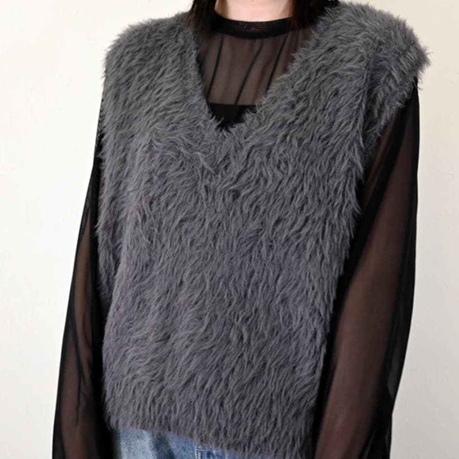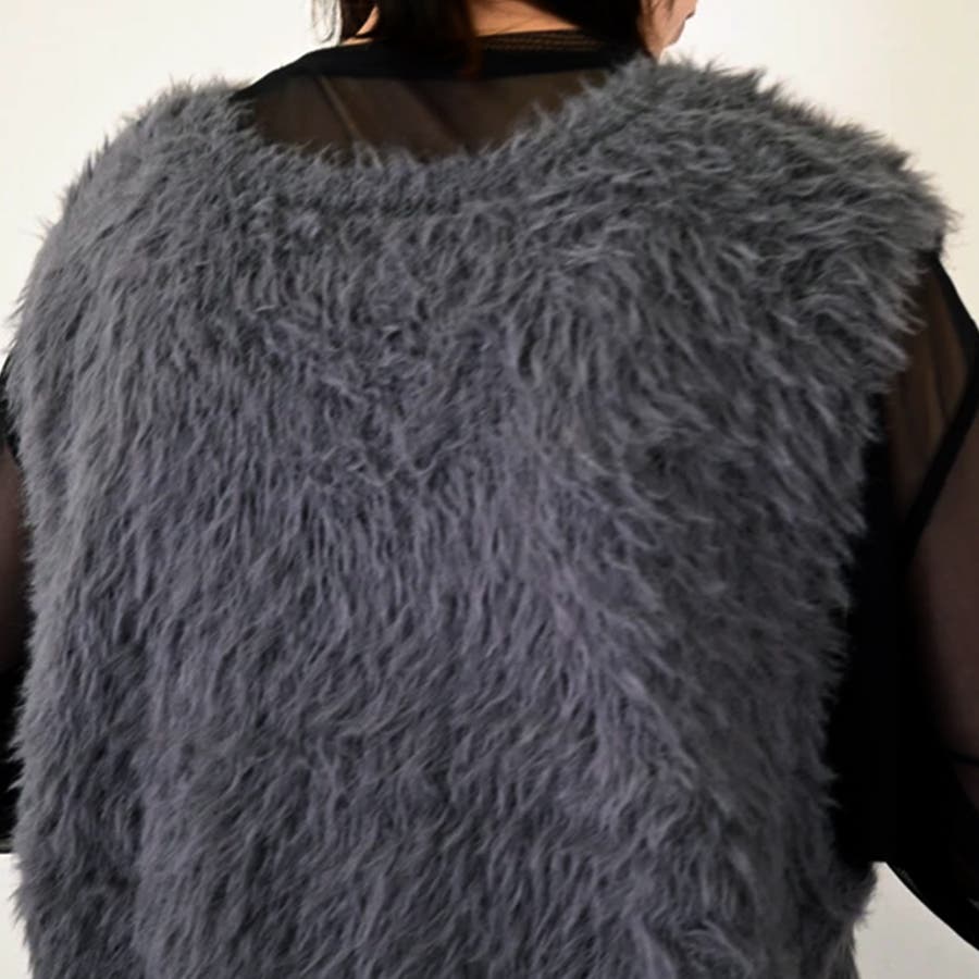 トップス ベストカジュアル ふんわり ファー Vネック シャギー風