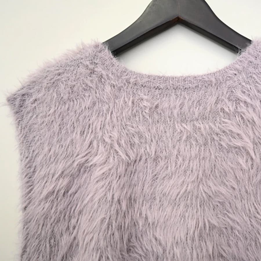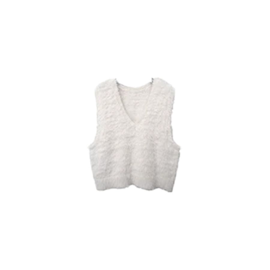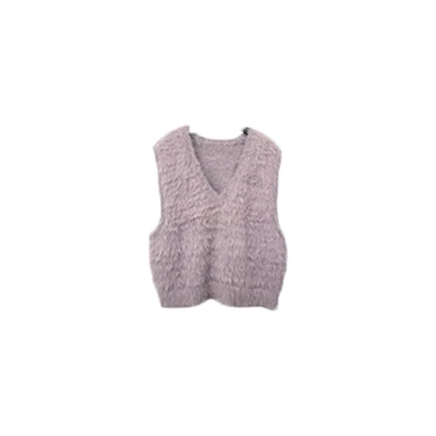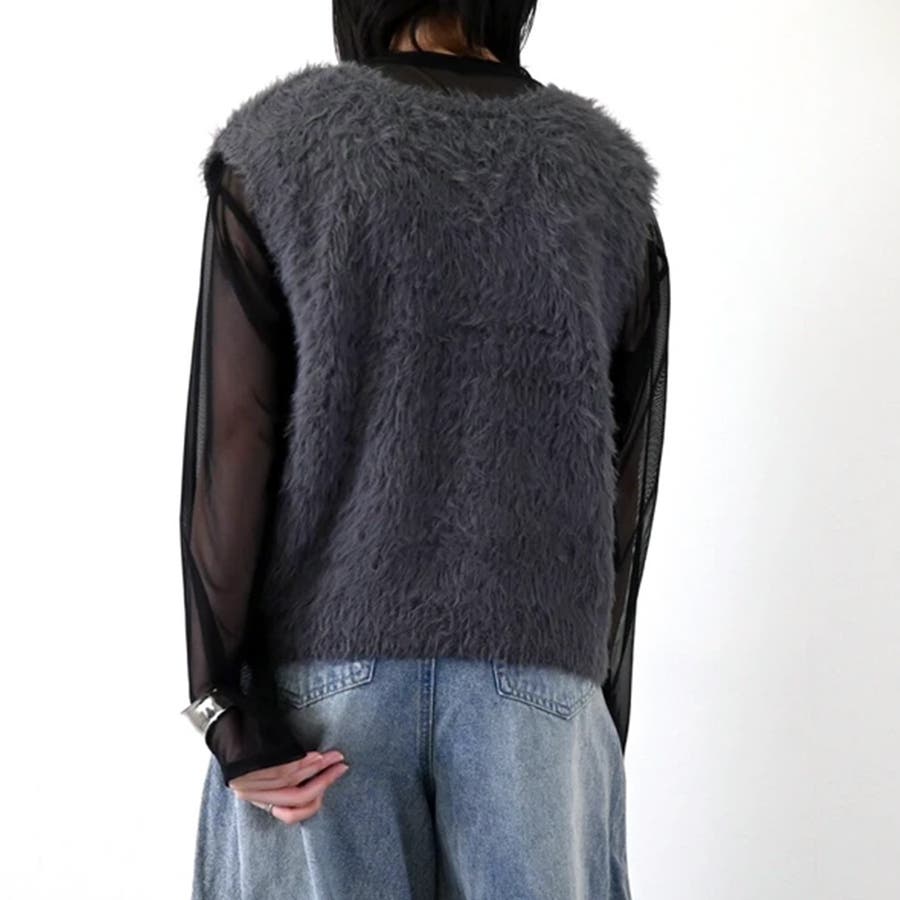 トップス ベストカジュアル ふんわり ファー Vネック シャギー風