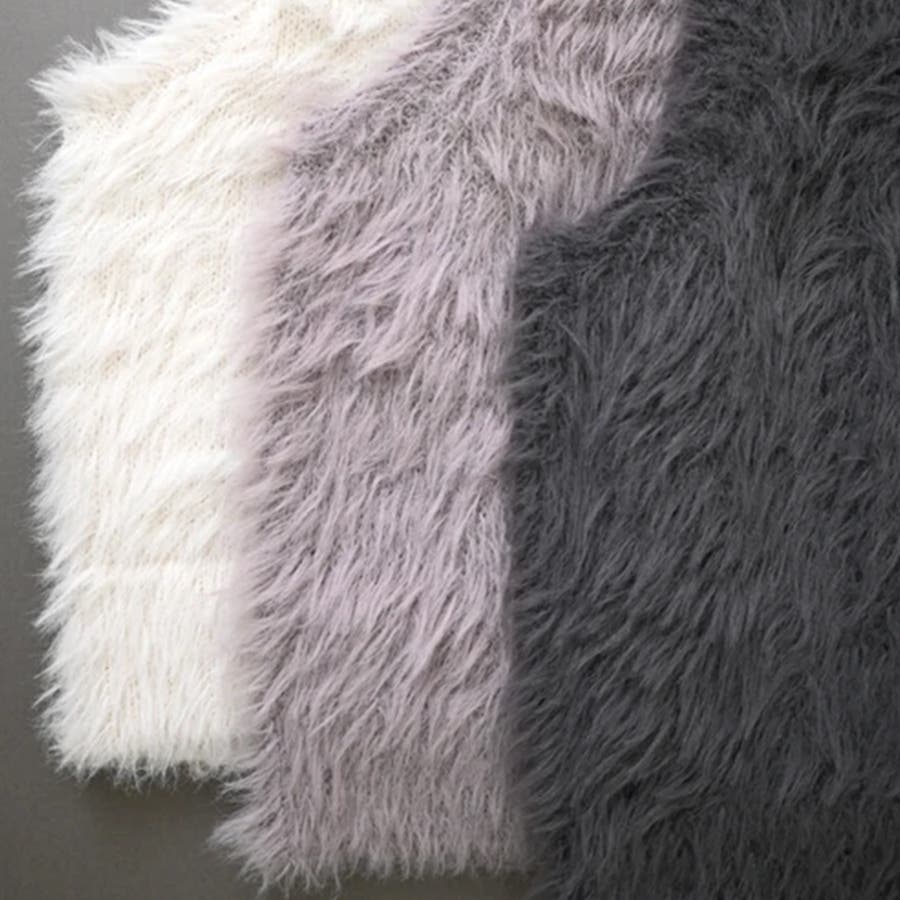 シャギー風で温かく、Vネックで大人っぽいデザインに仕上げました。