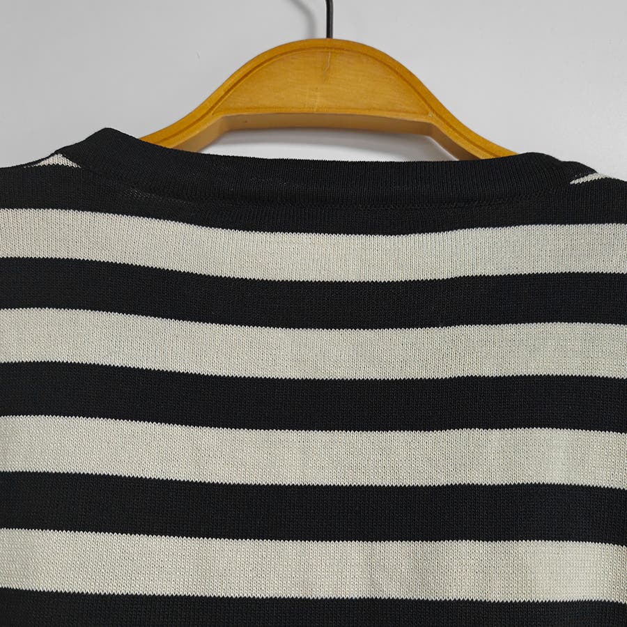 ブラックとボーダーの2色展開で、着回し力も高い一枚です。