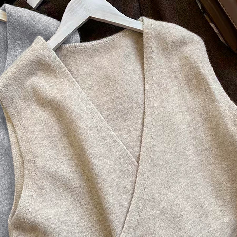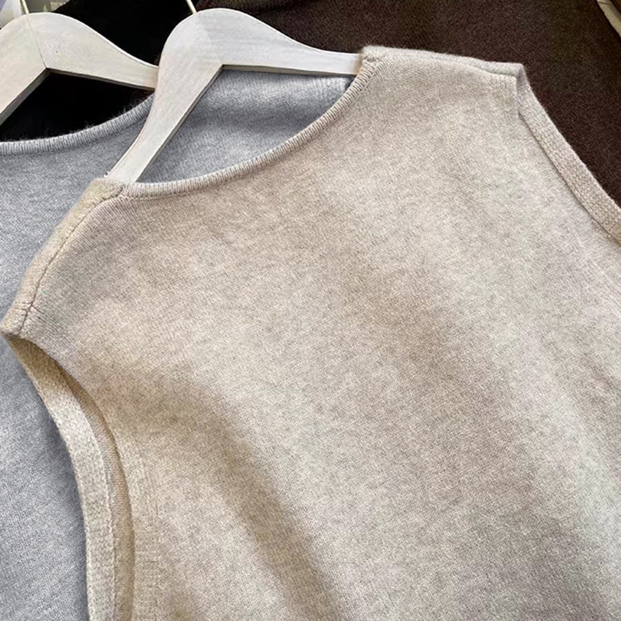 ミニマルなデザインでレイヤードスタイルに映える、ノースリーブベスト。