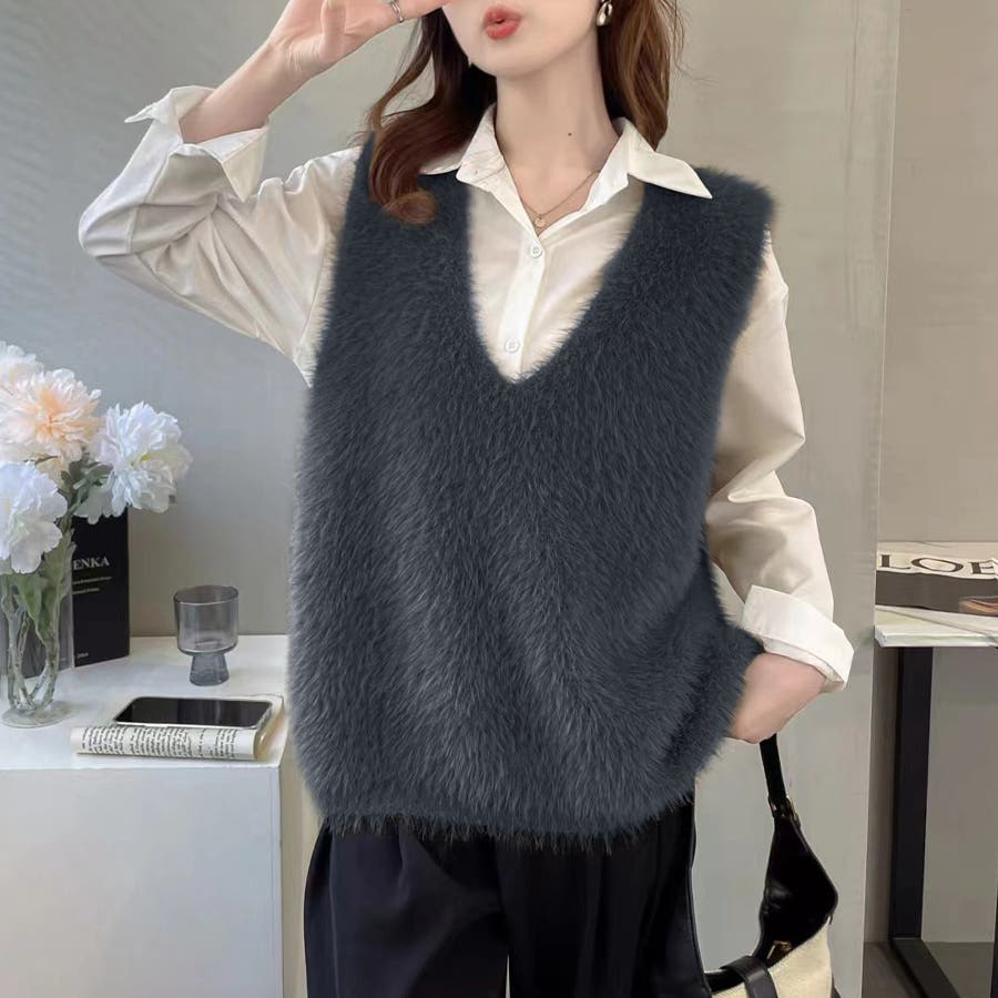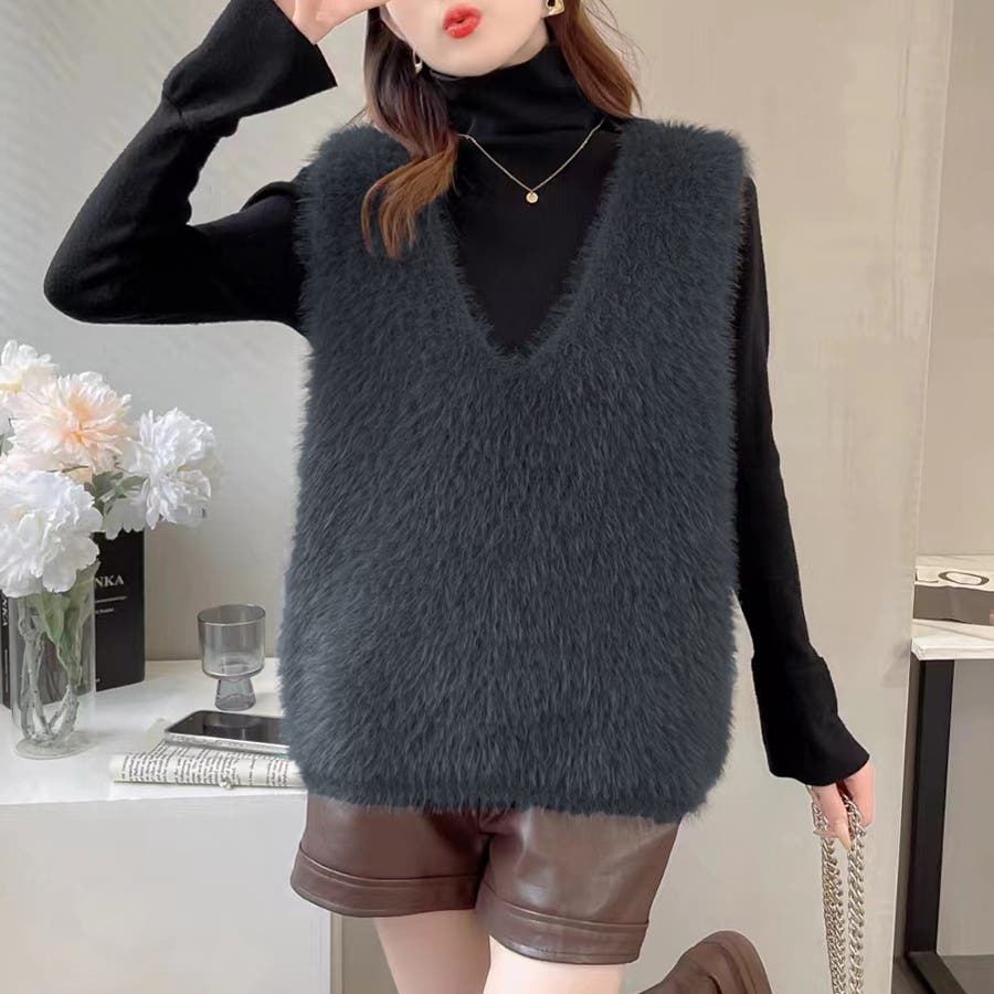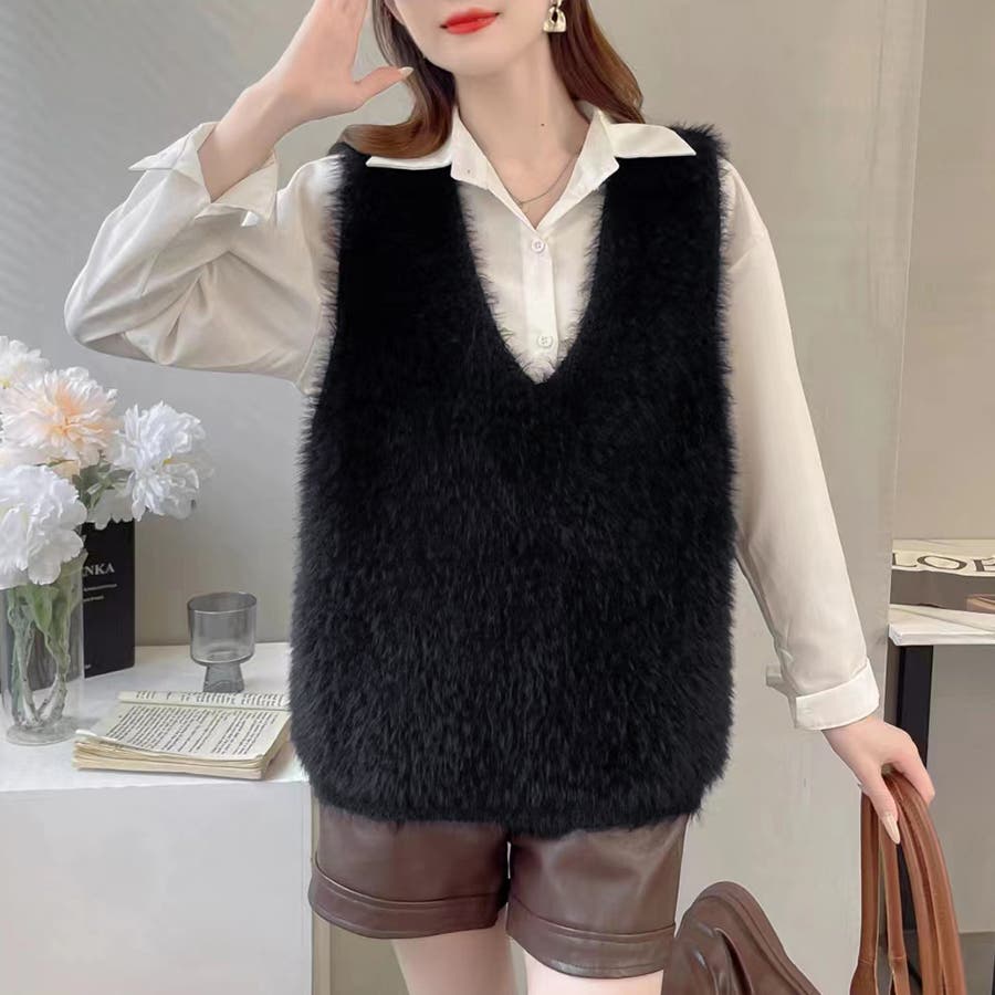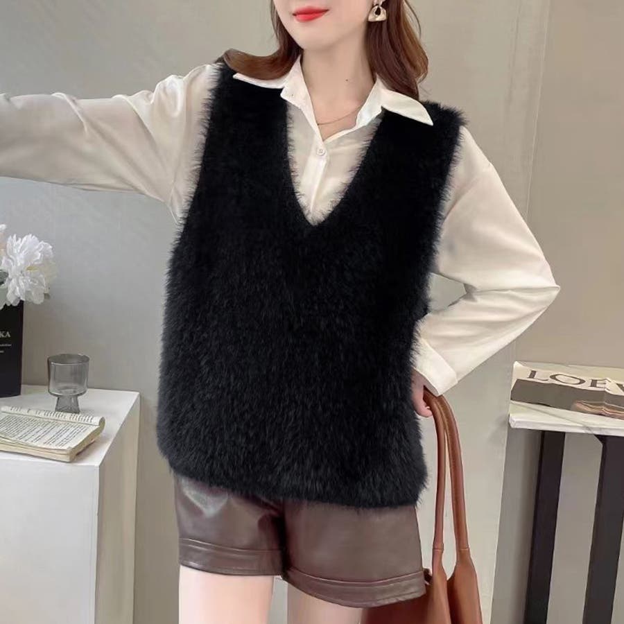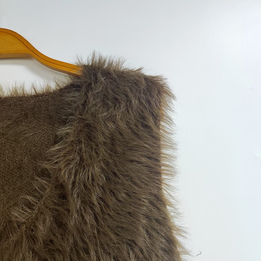 ふんわりとした毛並みが、シンプルなコーデに華やかさを添えます。