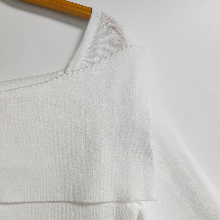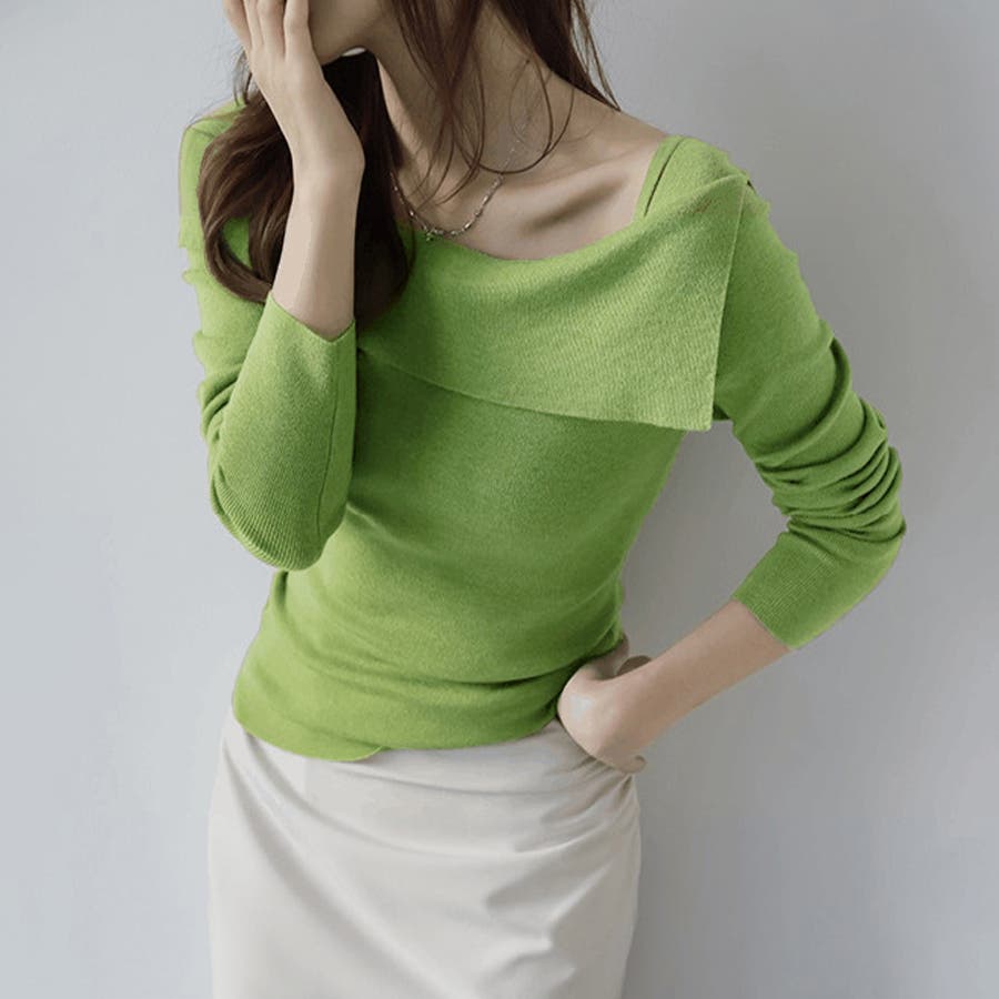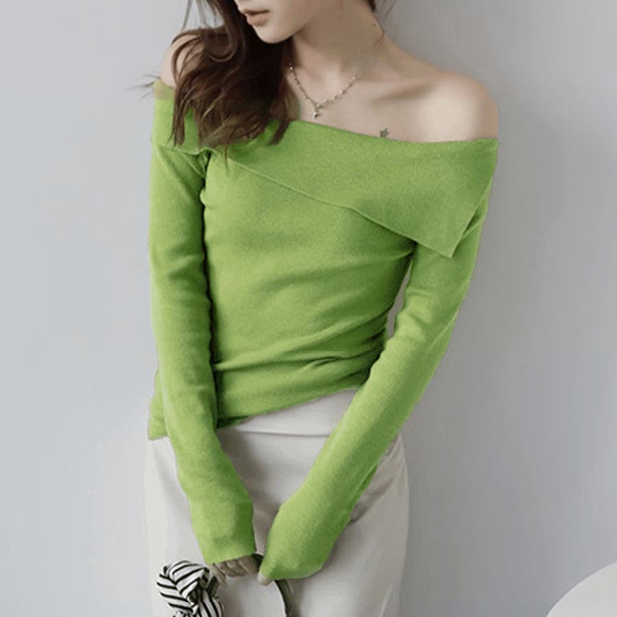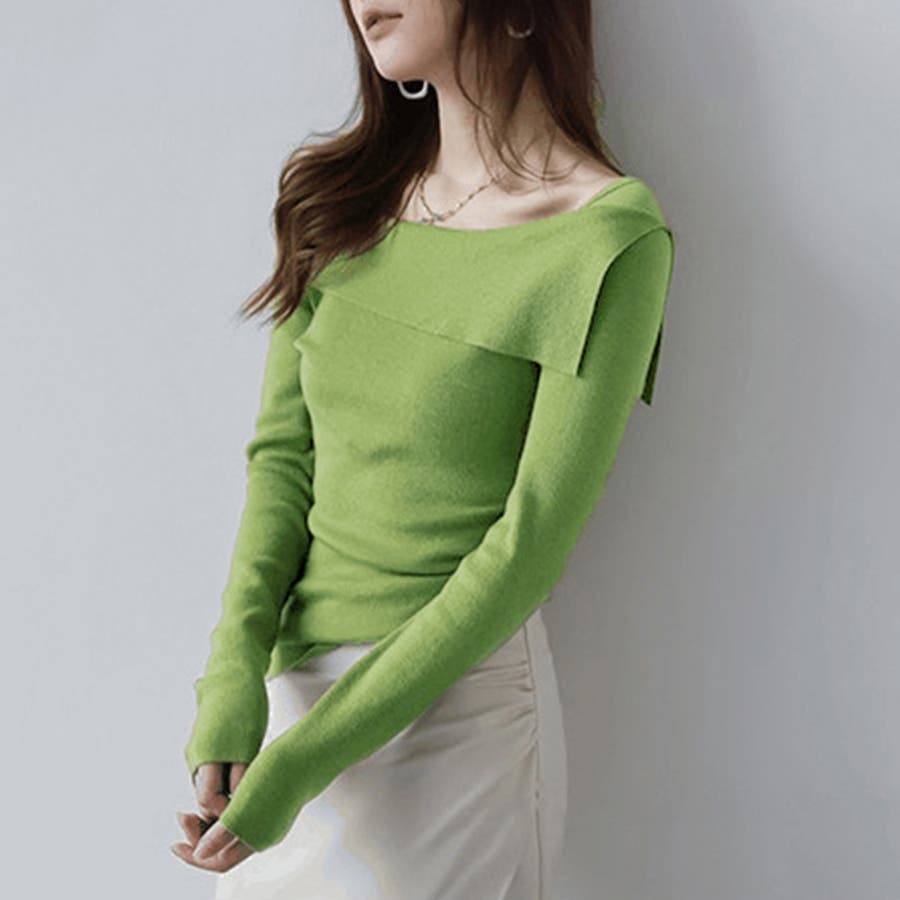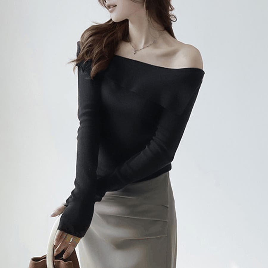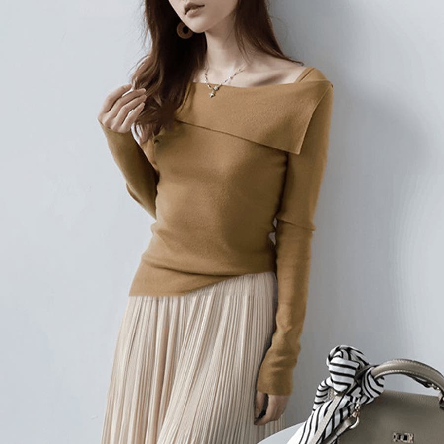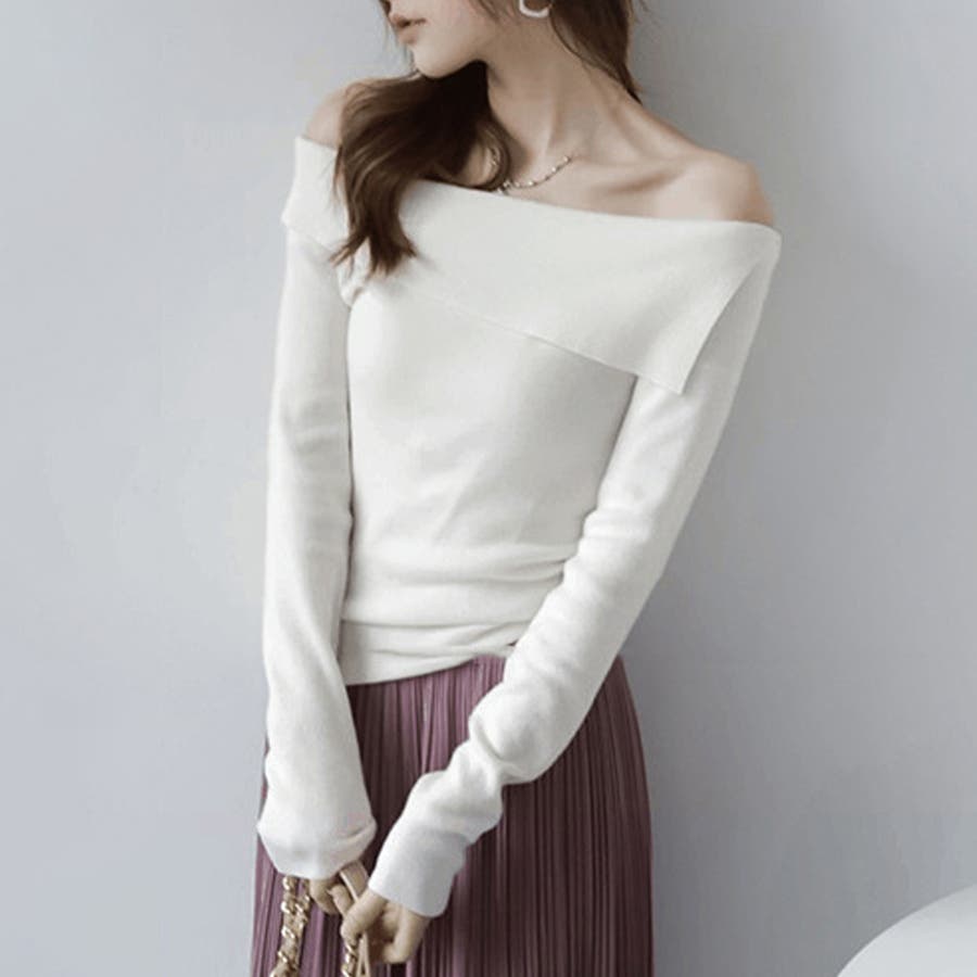 肩まわりに程よい抜け感を演出し、女性らしさを引き立てます。
