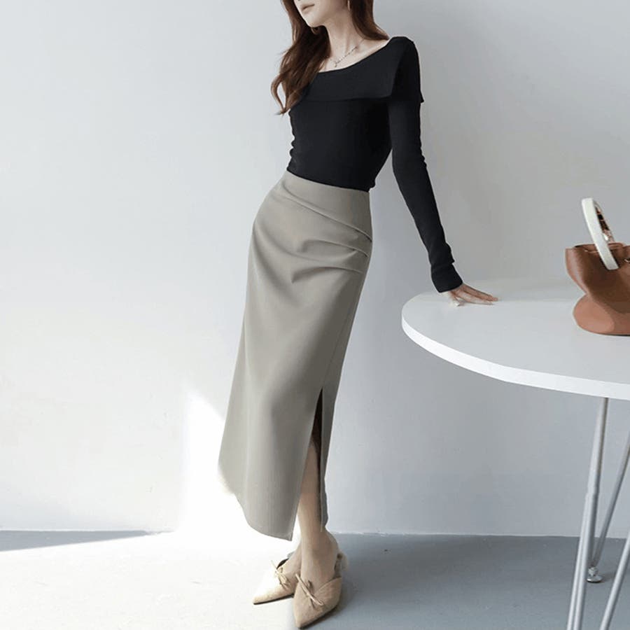 パンツにもスカートにも合わせやすく、オンオフ問わず活躍します。