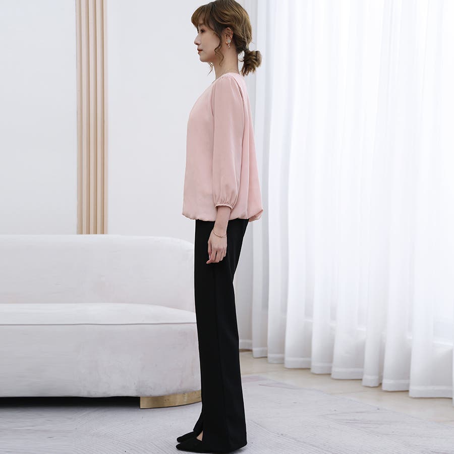 キュッと絞った袖口に、ゆとりのあるスリーブでメリハリをつけ、気張らない大人っぽさ。