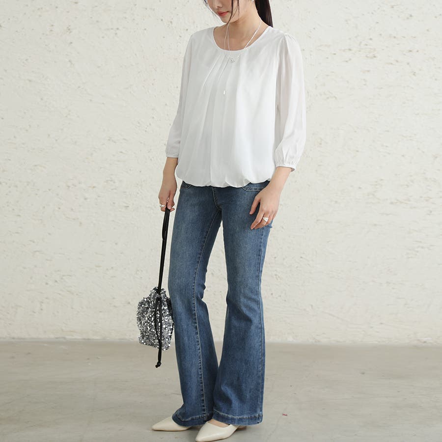 裾部分には丸みのあるタックデザインを加え、ボトムスインせずともふわっと纏まるフォルム。