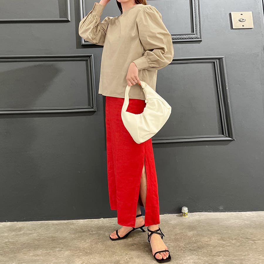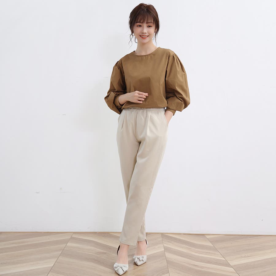 ボリュームを持たせたバプスリーブは、ダボっとしすぎないよう袖口でメリハリをつけます。