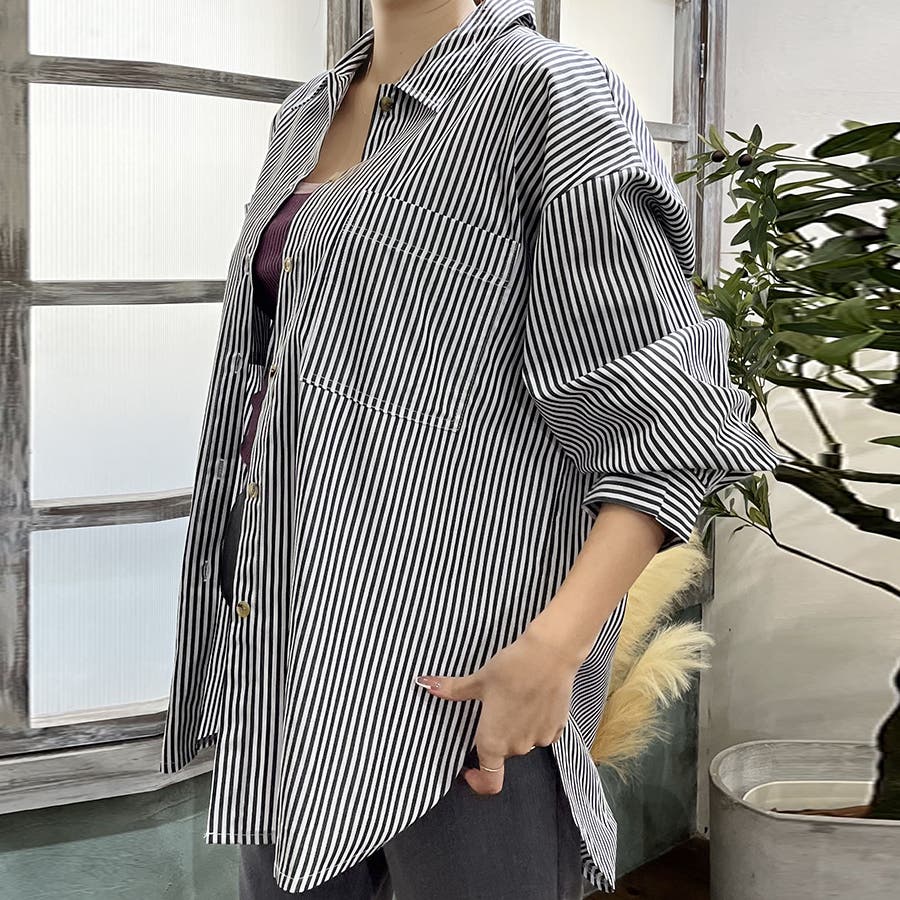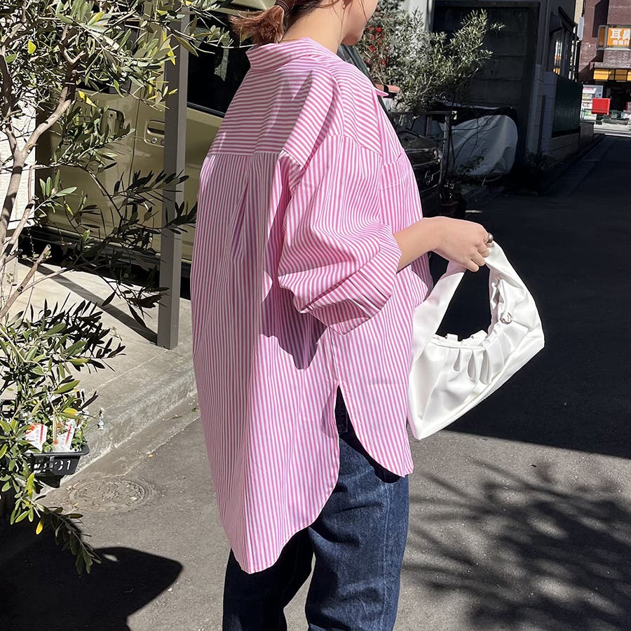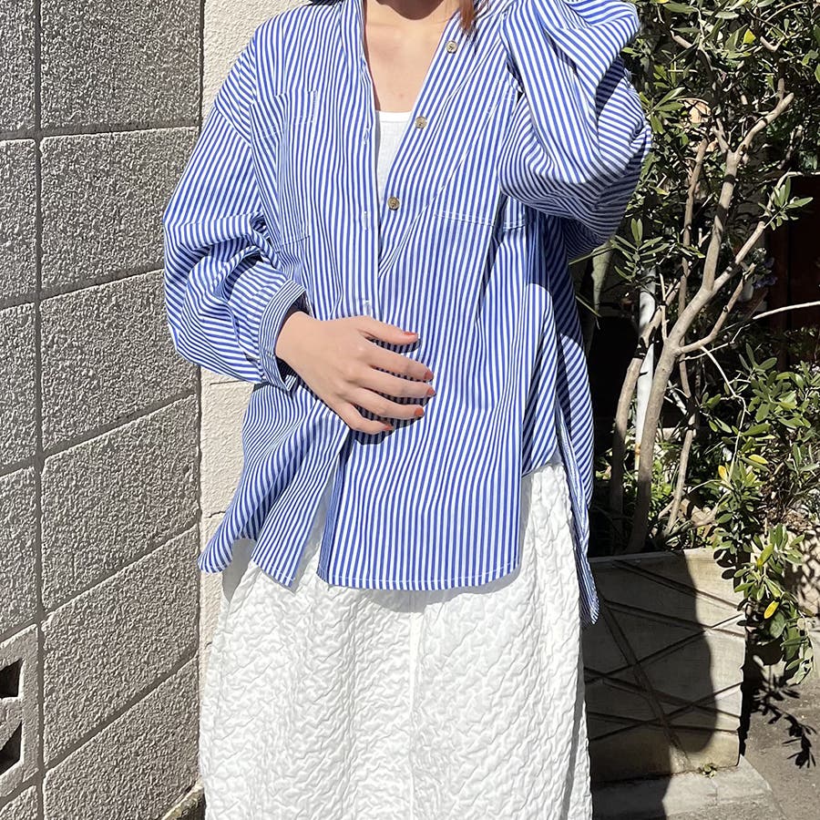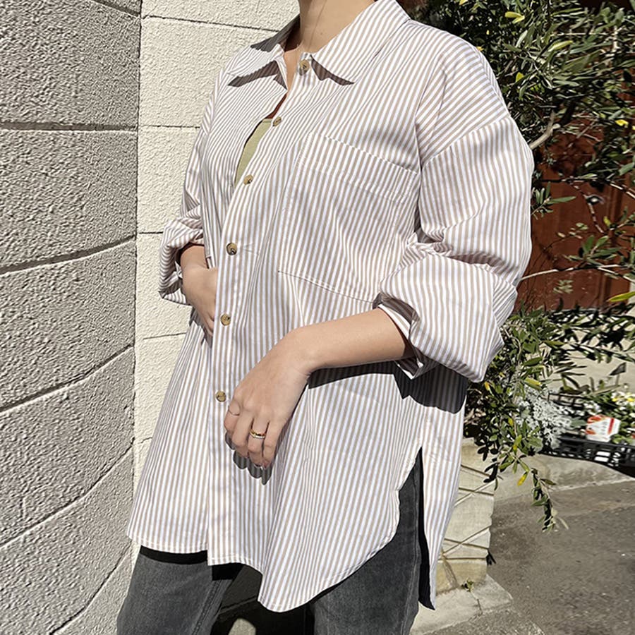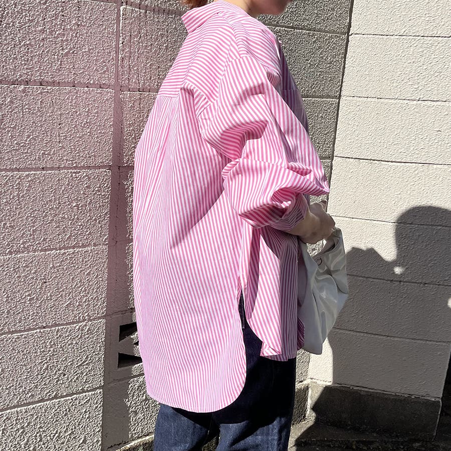 ゆるいビックシルエットで、シャツとしてはもちろん、ボタンを開けて羽織りとしても着回しができます。