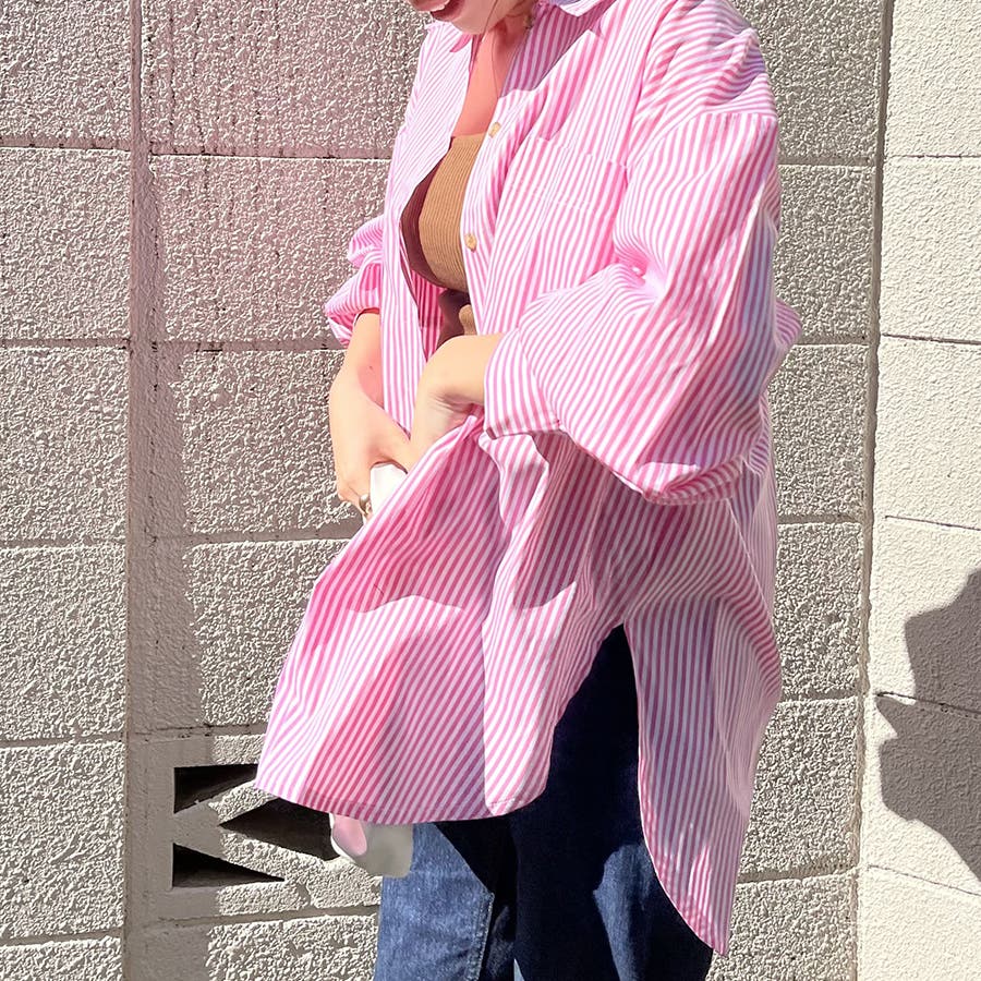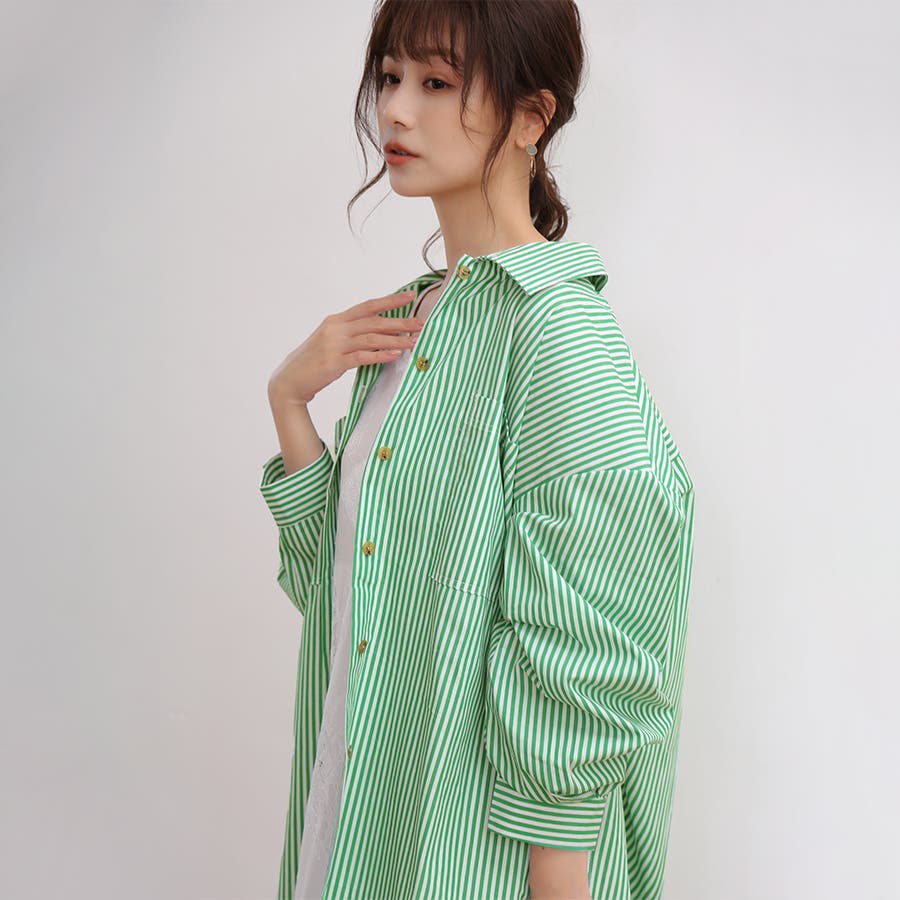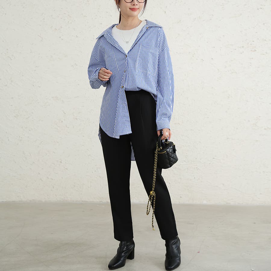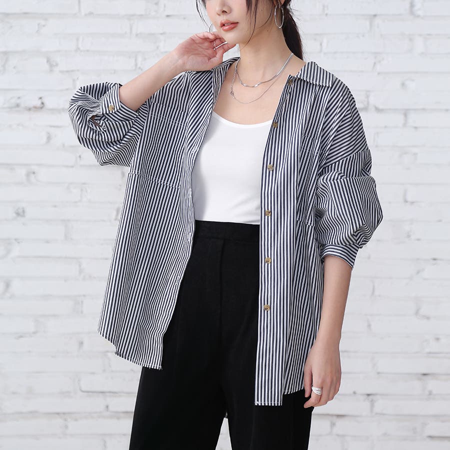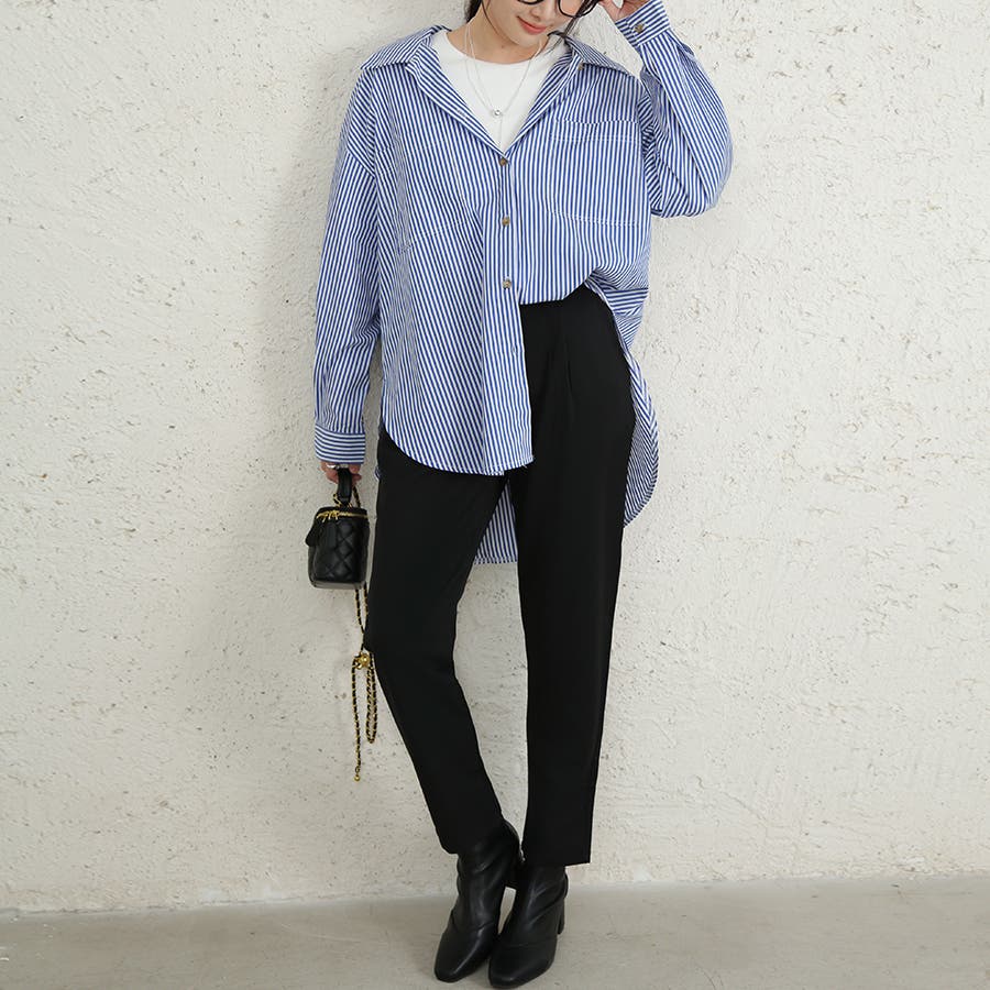 爽やかなストライプ柄は、今っぽく着回しの幅を広げてくれます。