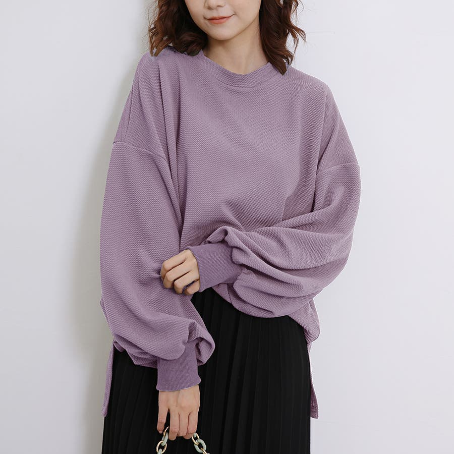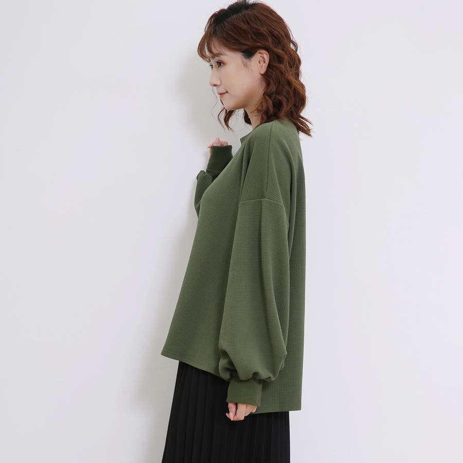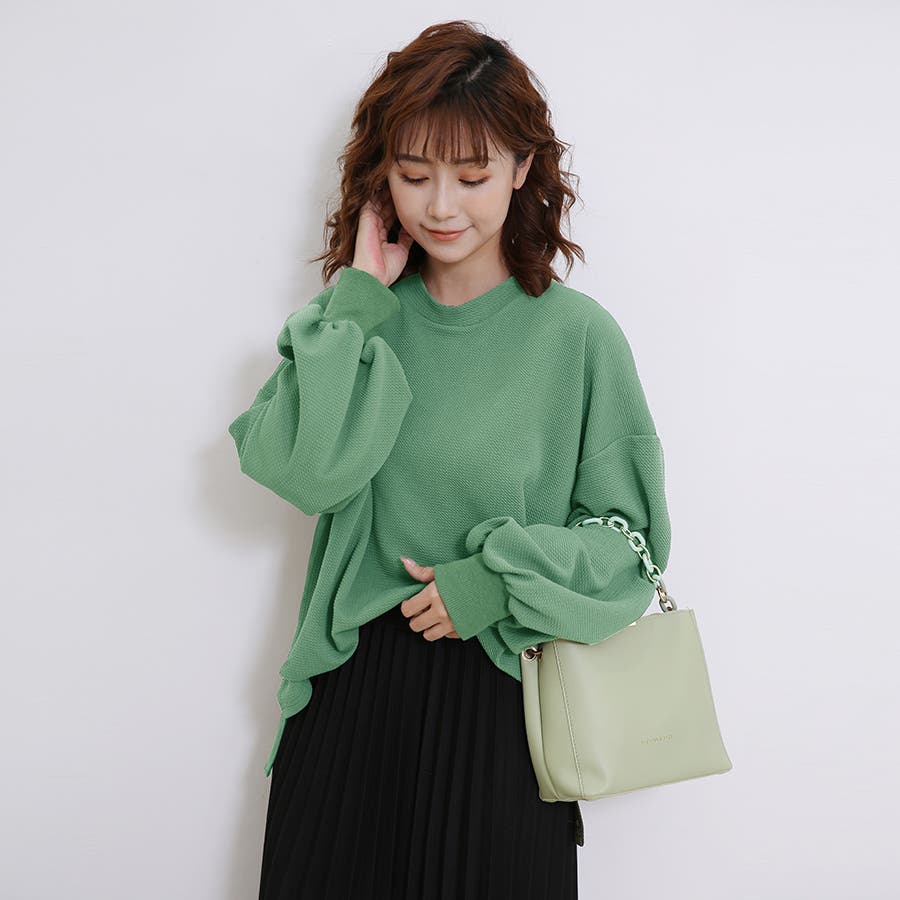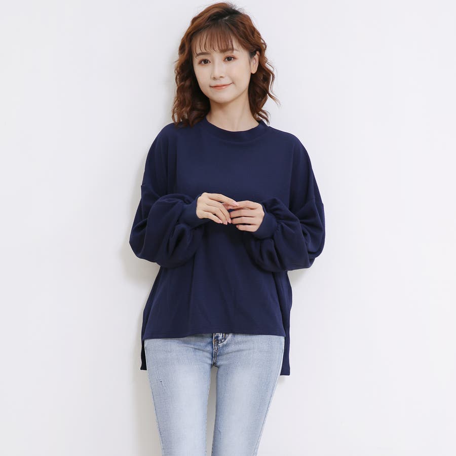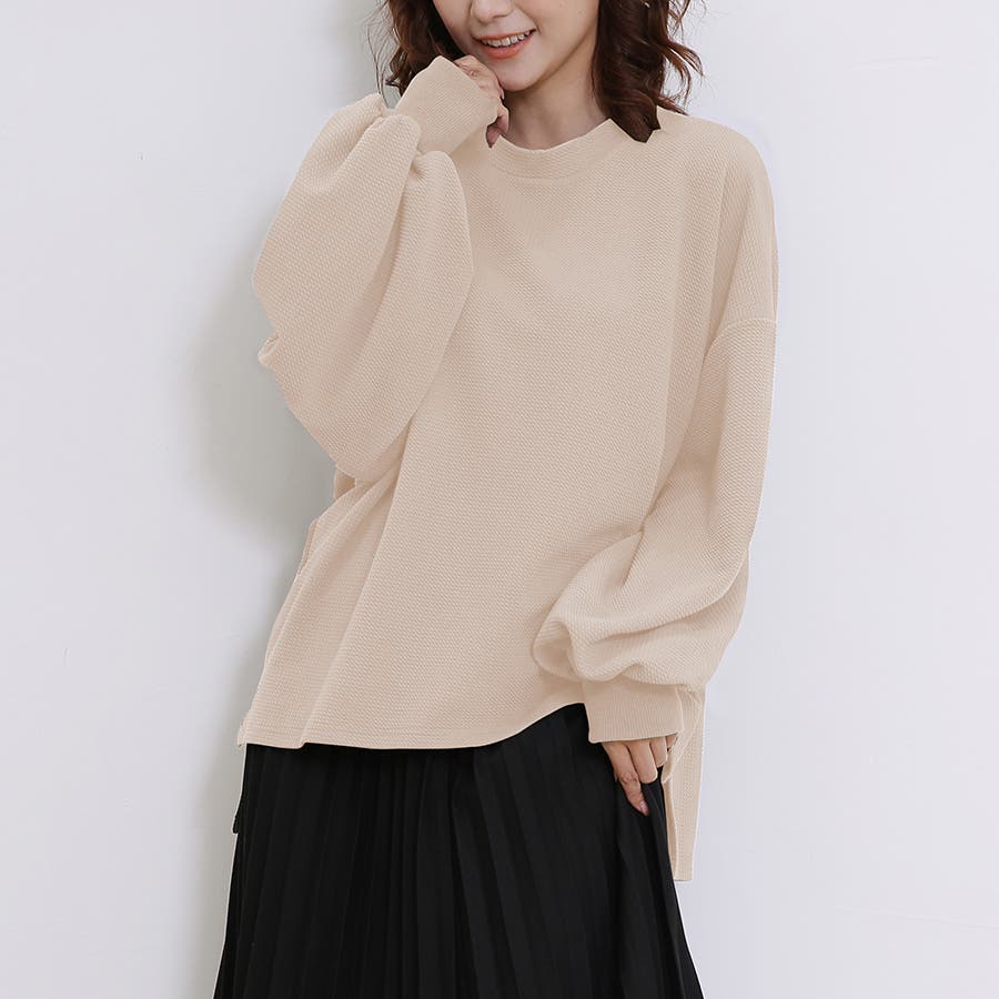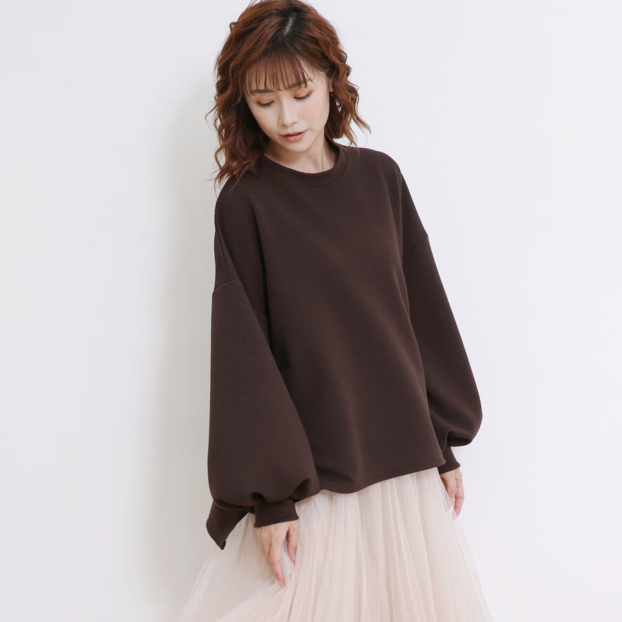 ボリューミーなバルーンスリーブは今っぽいトレンド感をプラス!
