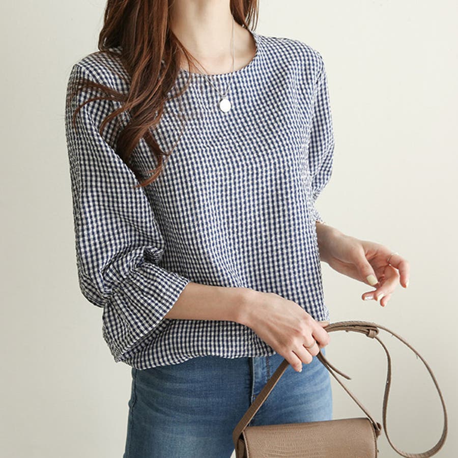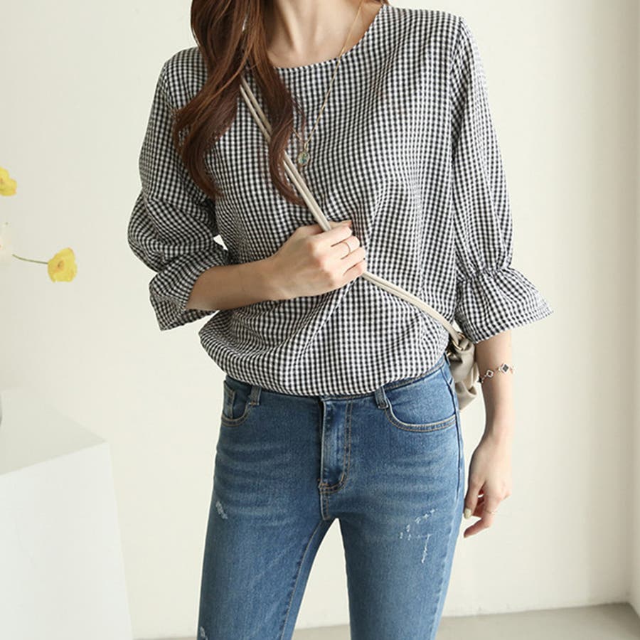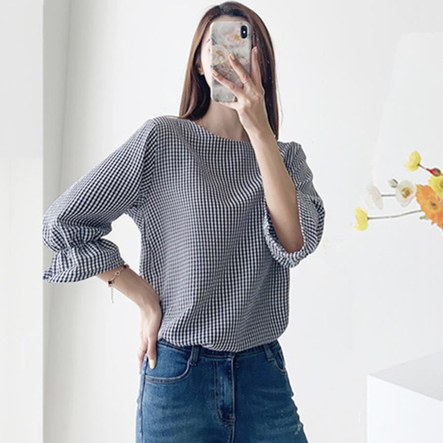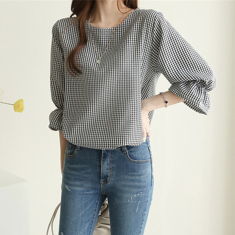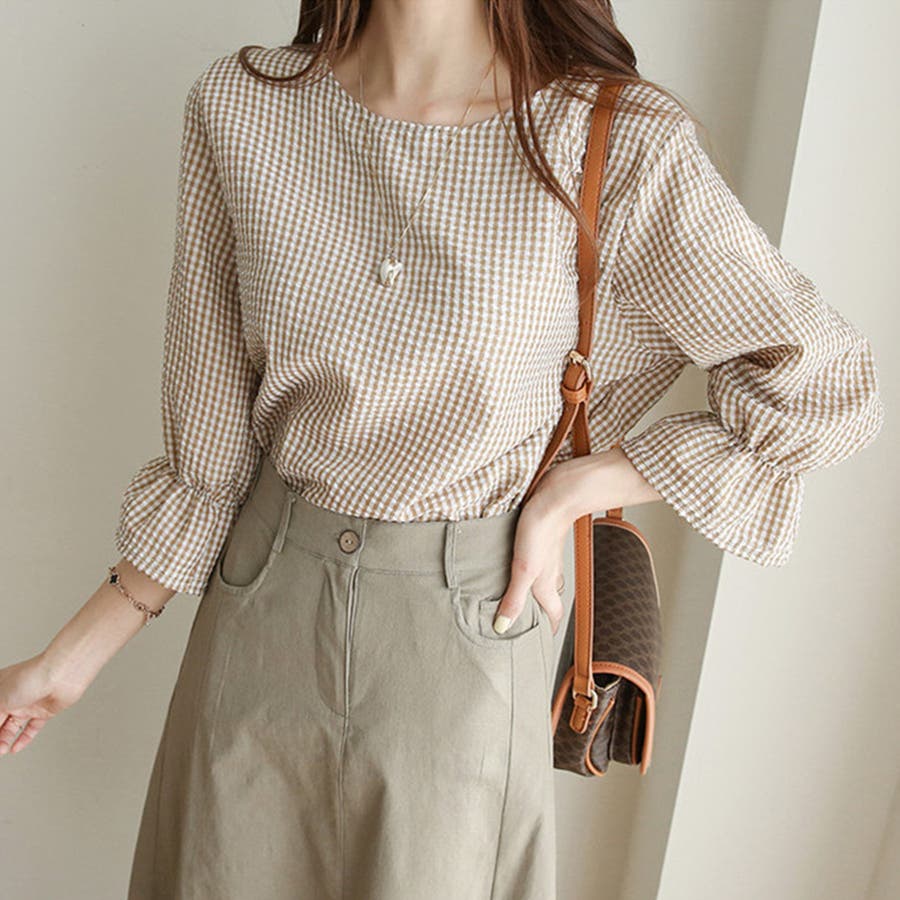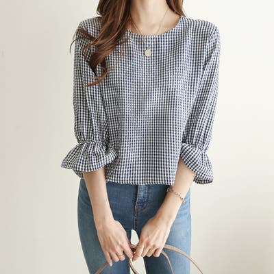 甘さのあるギンガムチェックブラウス。