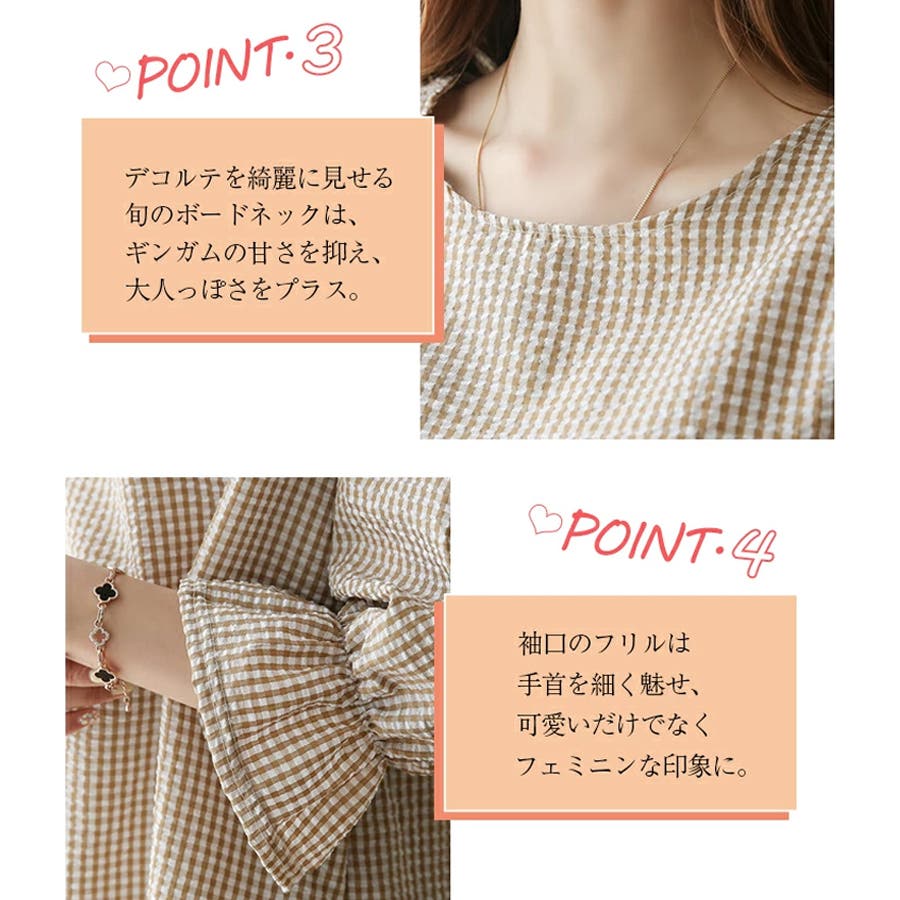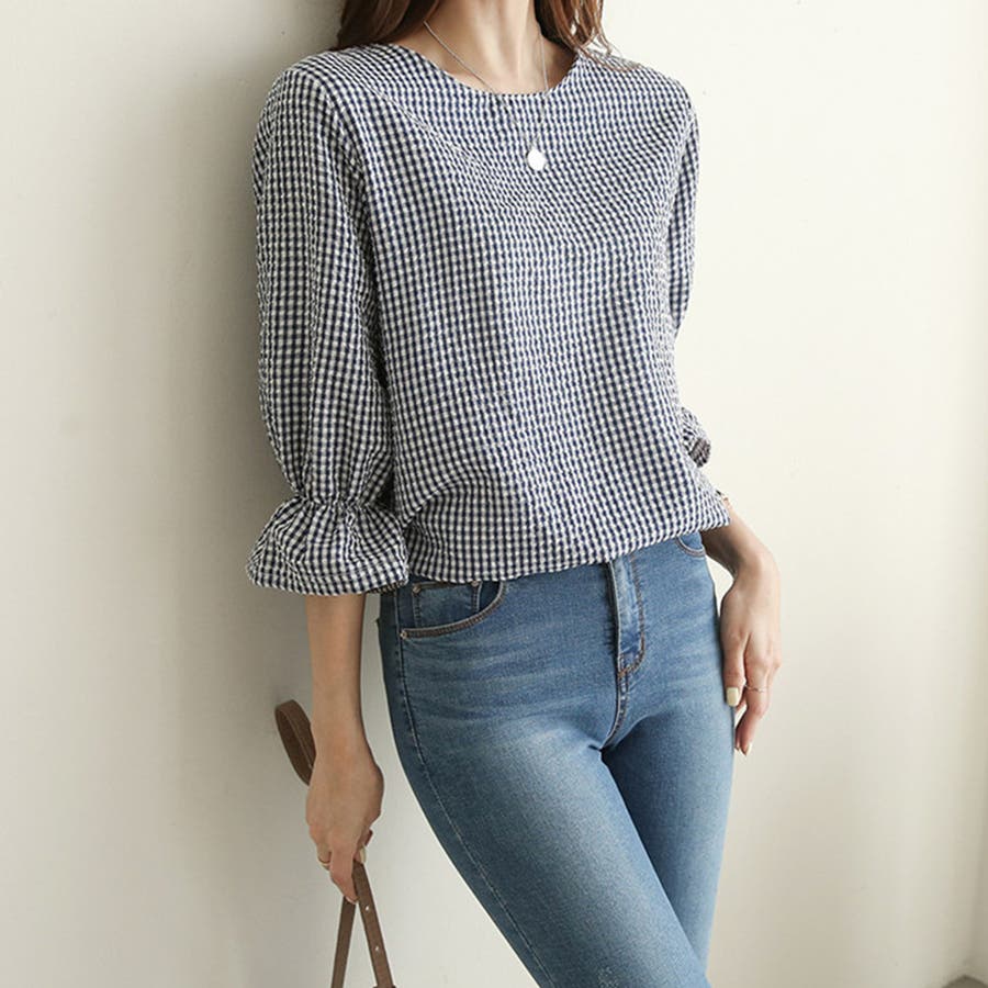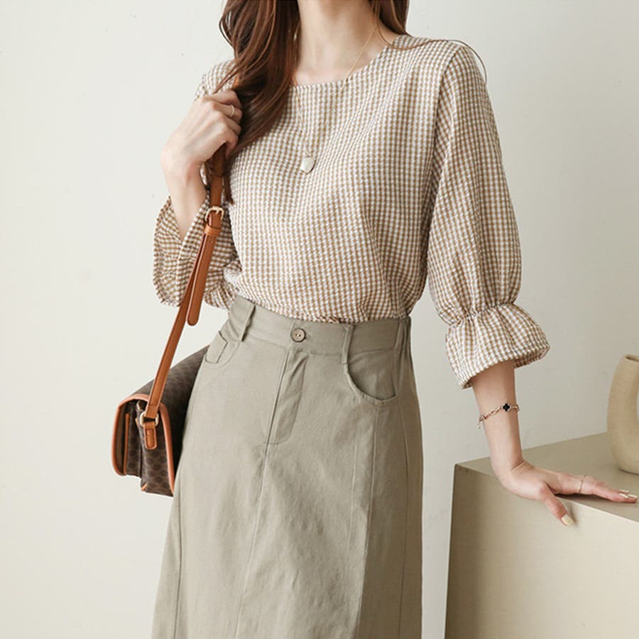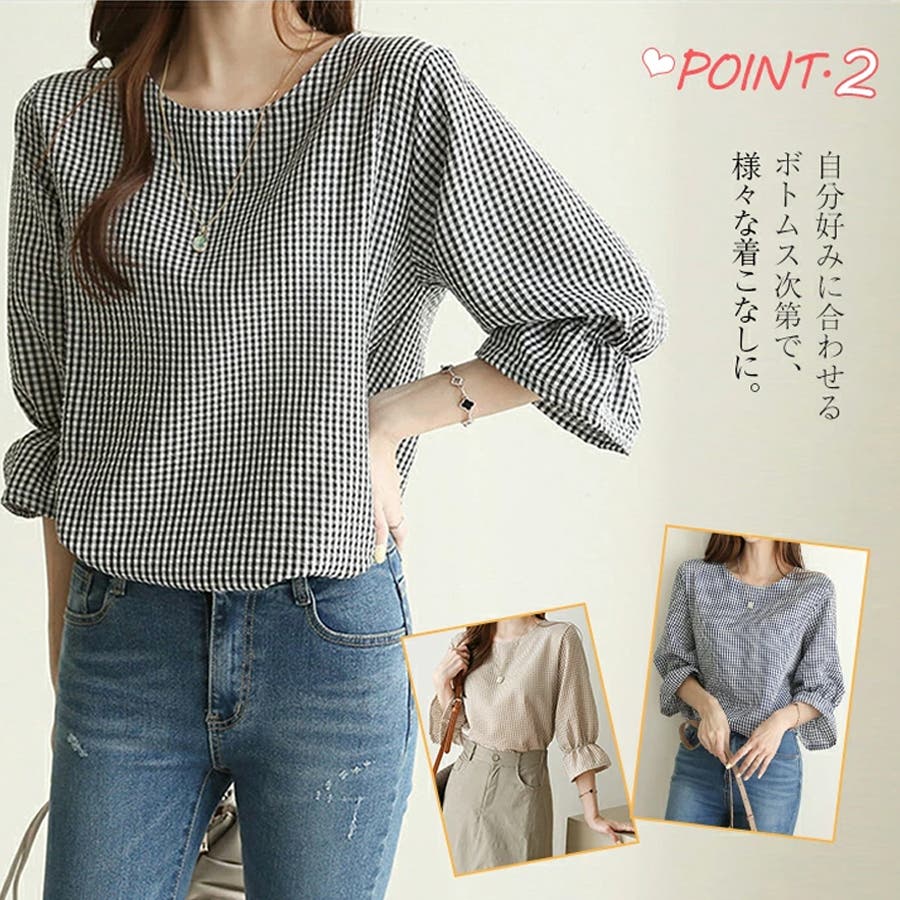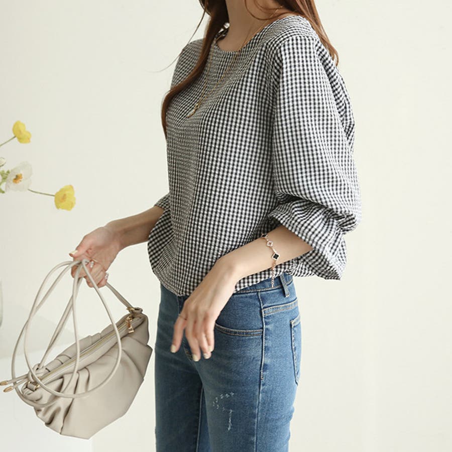 甘さのあるギンガムチェックブラウス。