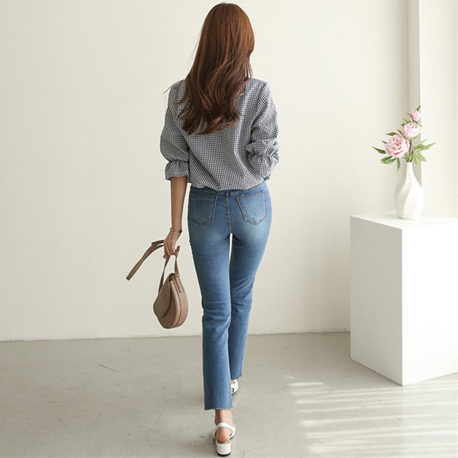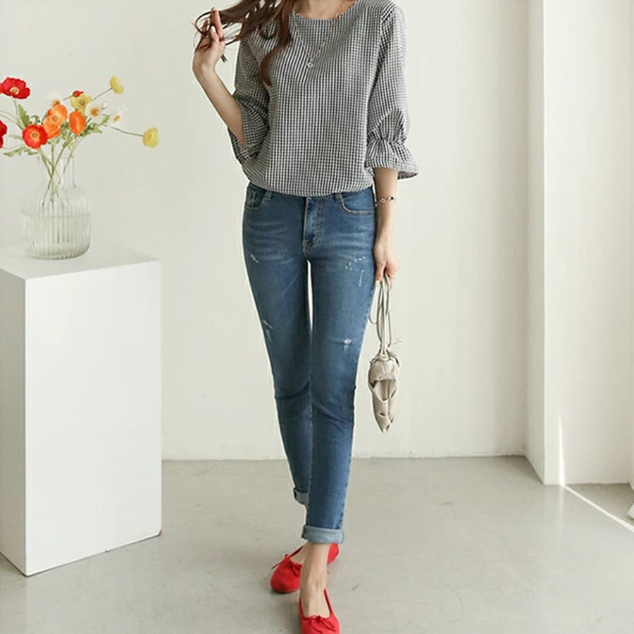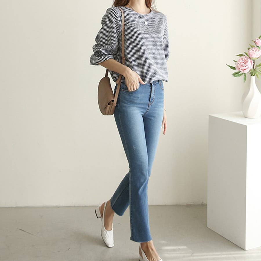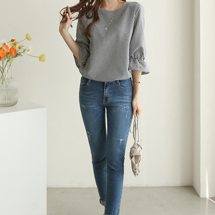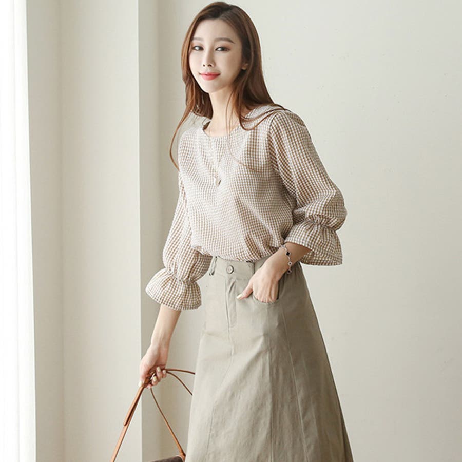 甘さのあるギンガムチェックブラウス。