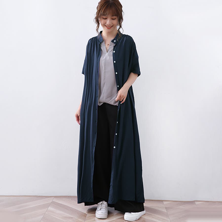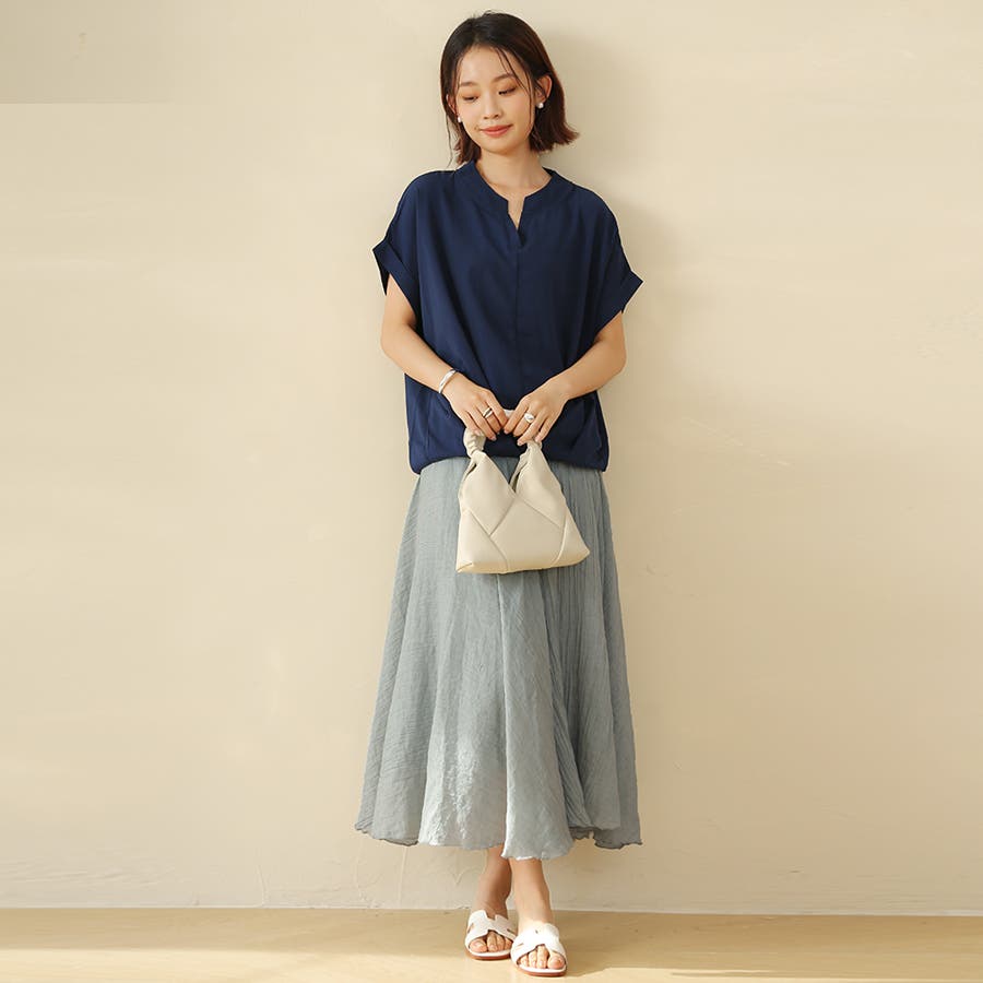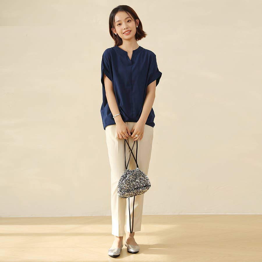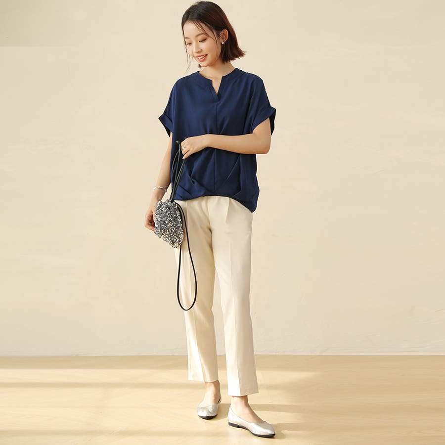 生地がサラサラしていて涼しいです。ネイビーを購入しましたが、色味は明るいネイビーでした。細身のパンツと合わせています。