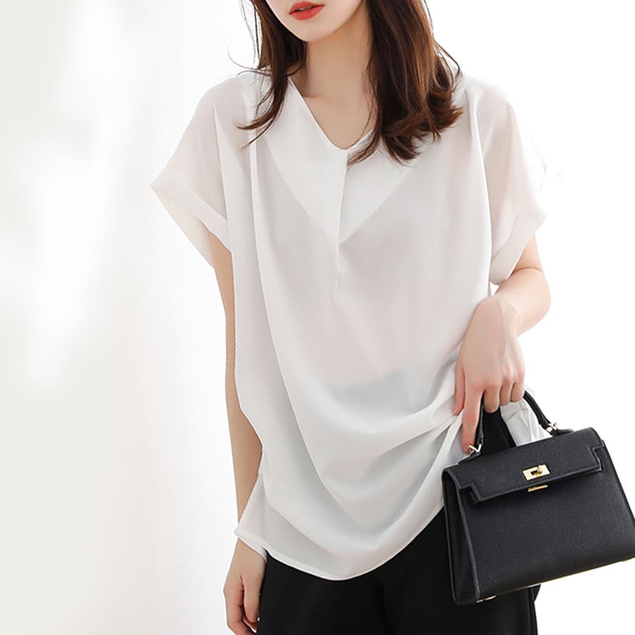 ディテールで勝負する女っぽいシフォンブラウス。