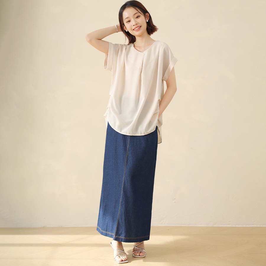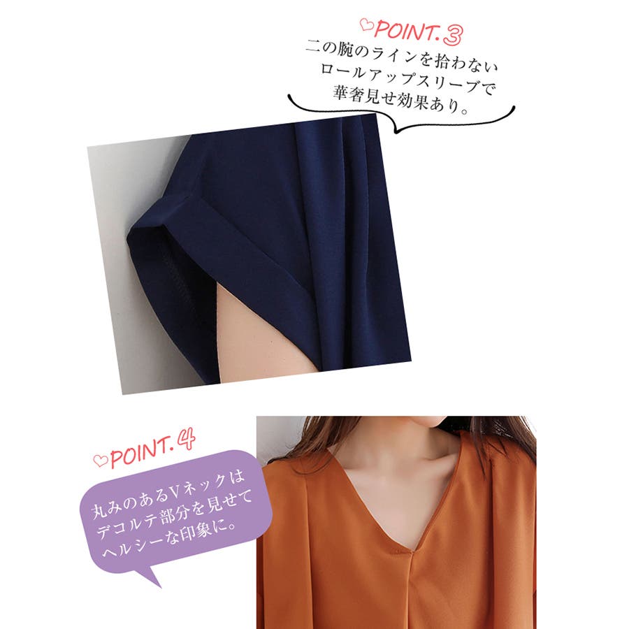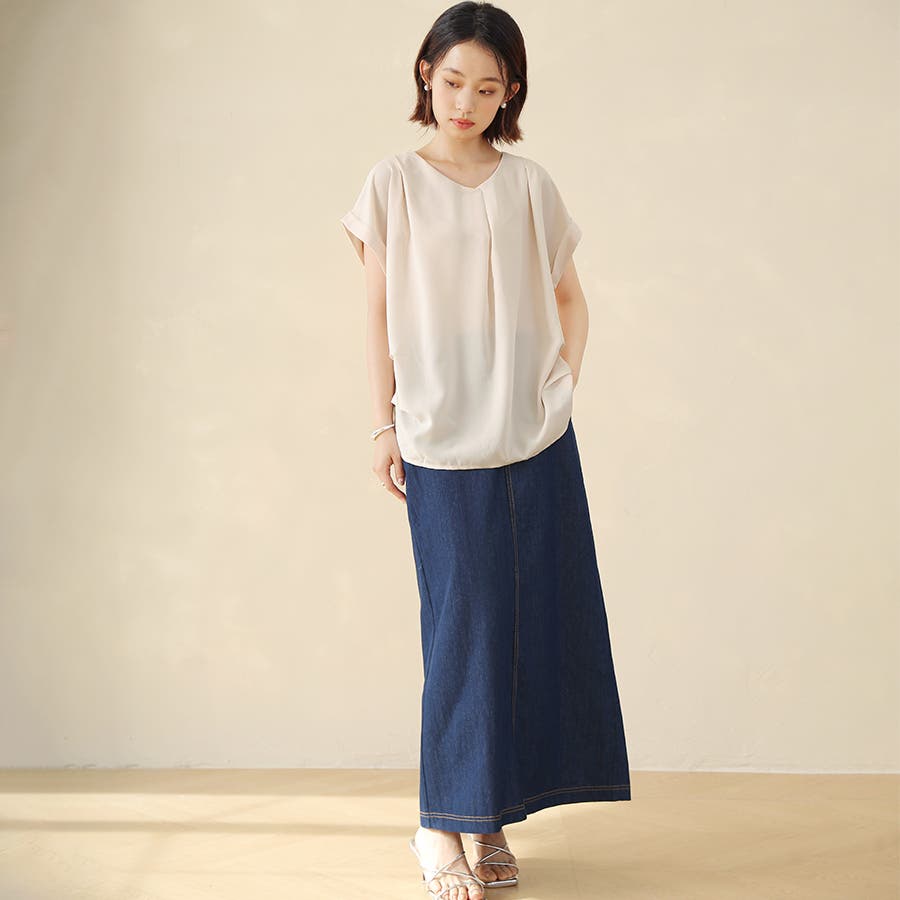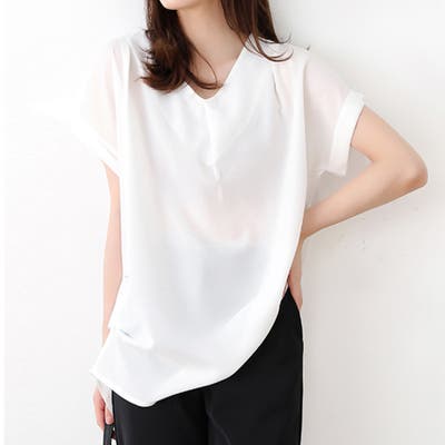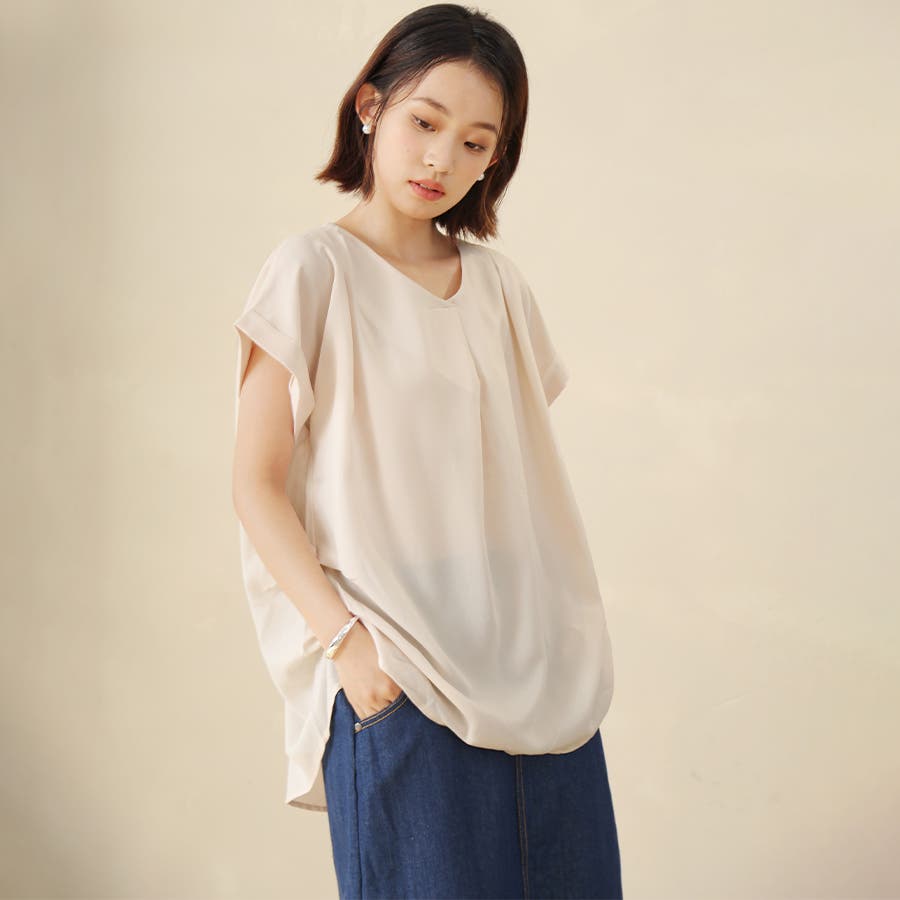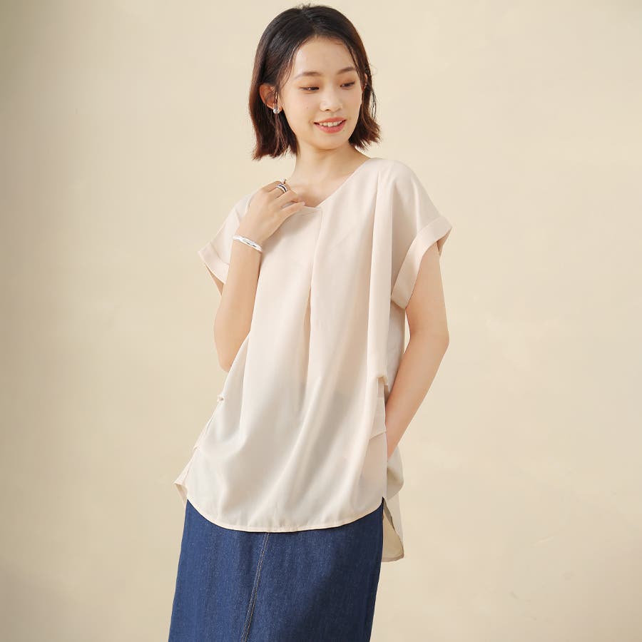 華奢見せするロールアップスリーブに上質なタック使いが洗練度をUP!デイリーはもちろんオフィスコーデにもぴったり。