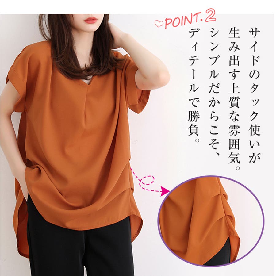 ゆるっとしたシルエットにヘルシーなVネックで大人っぽくシックに仕上げます。