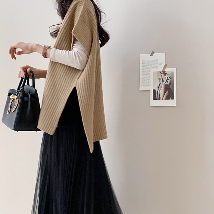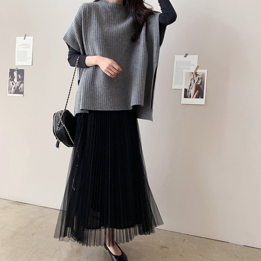サイドスリット入りで抜け感をプラスし、レイヤードコーデに使いやすいデザインとなっています。