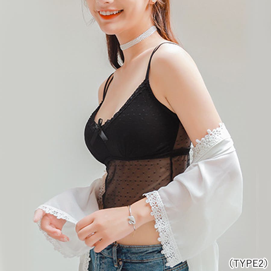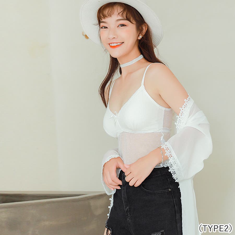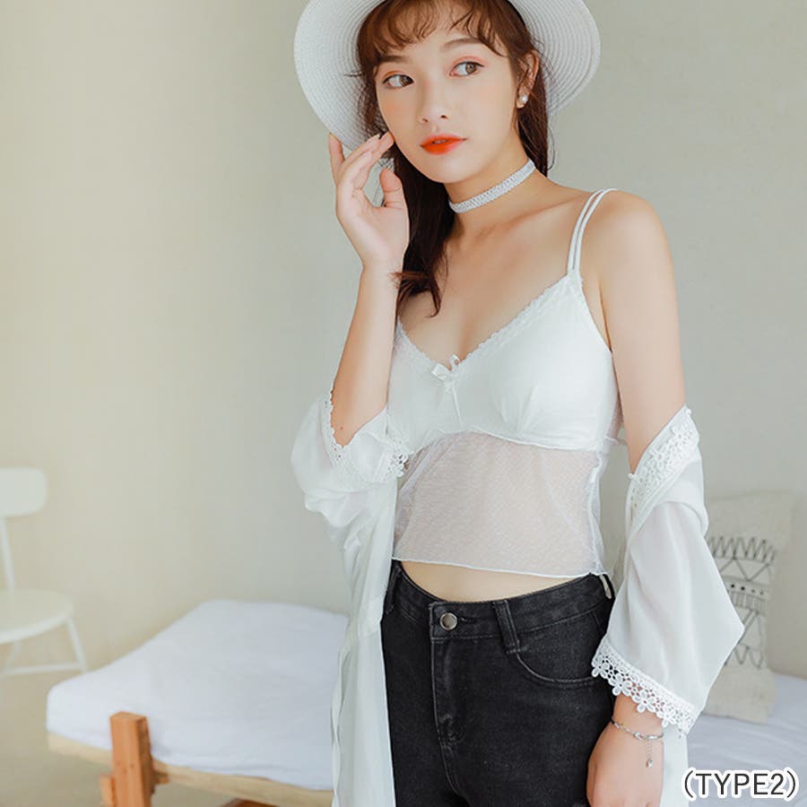 ブラトップの下はシースルーなデザインで、程よく色っぽくヘルシーな印象に仕上げます。
