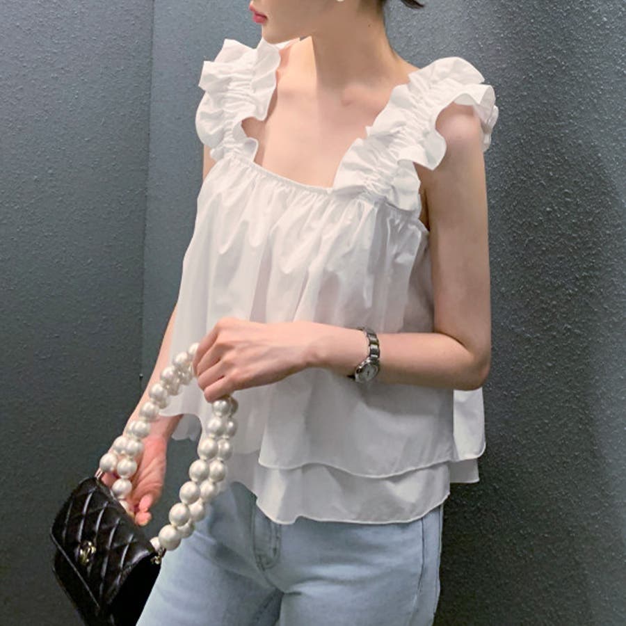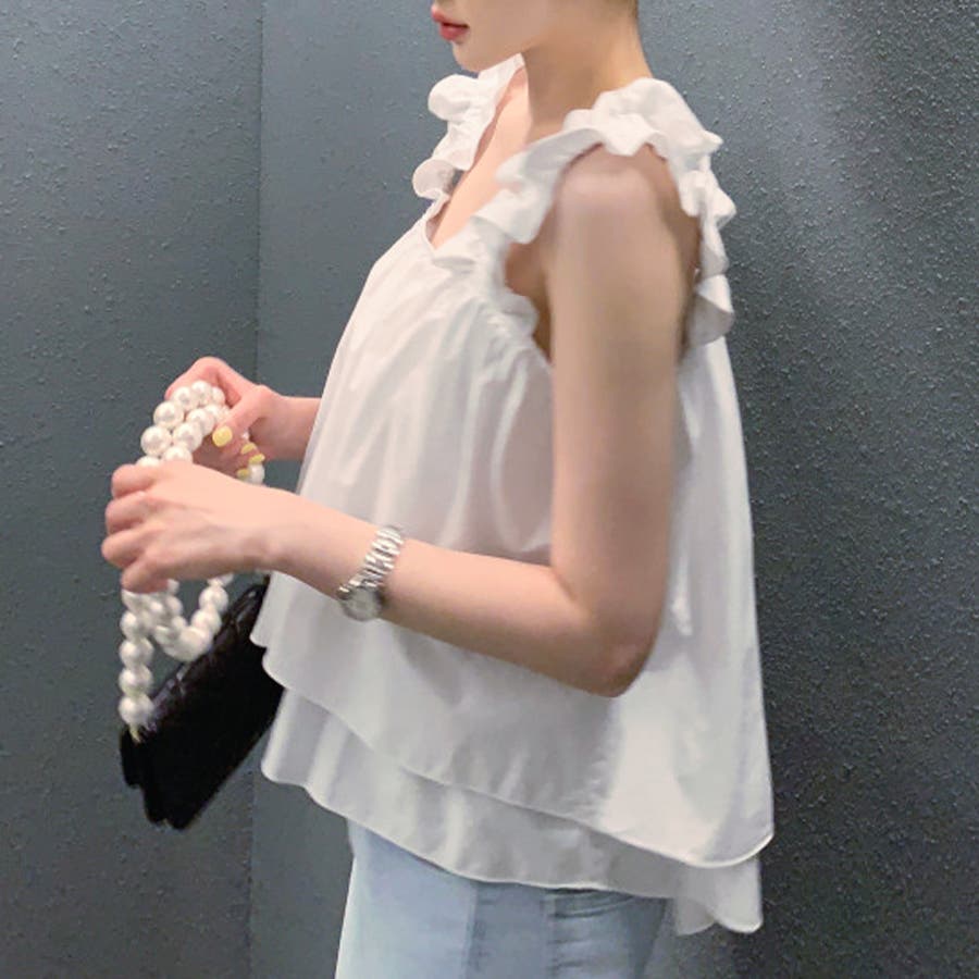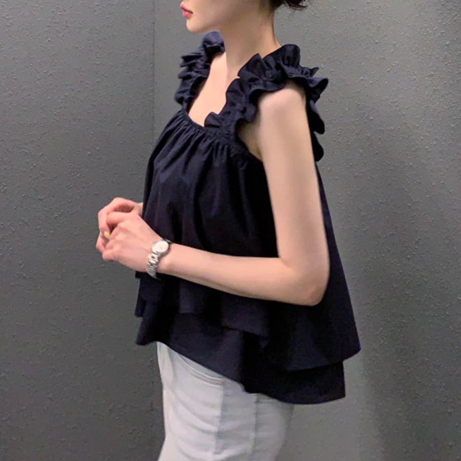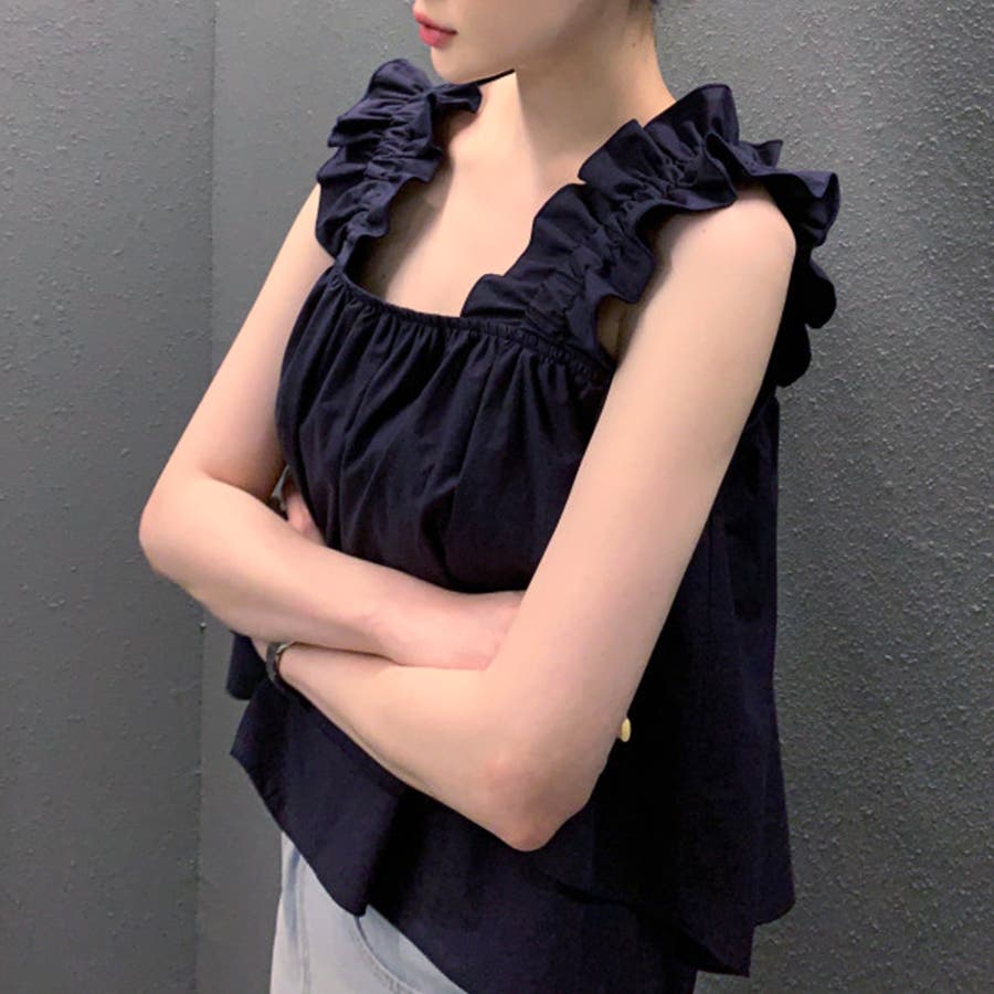 さらっとした肌触りが魅力の今季おすすめフリル付きタンクトップが新登場♪