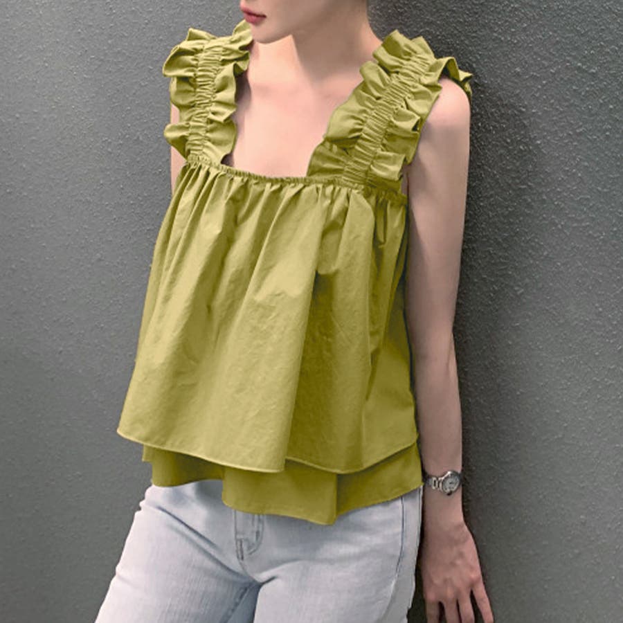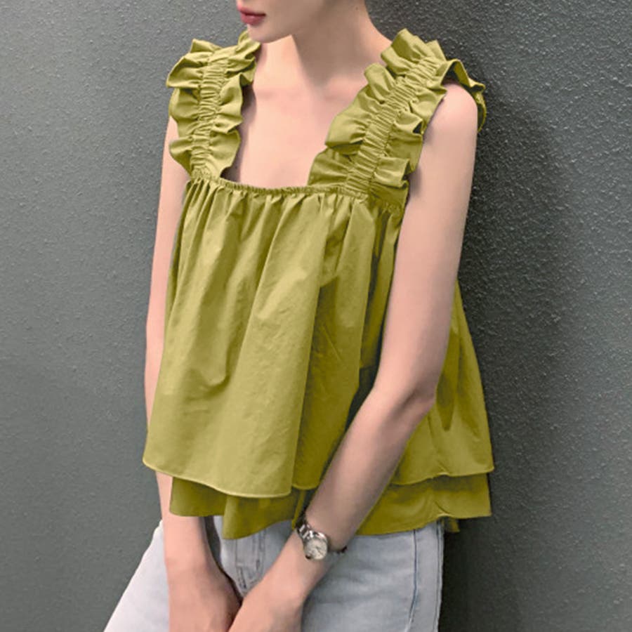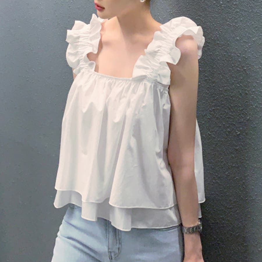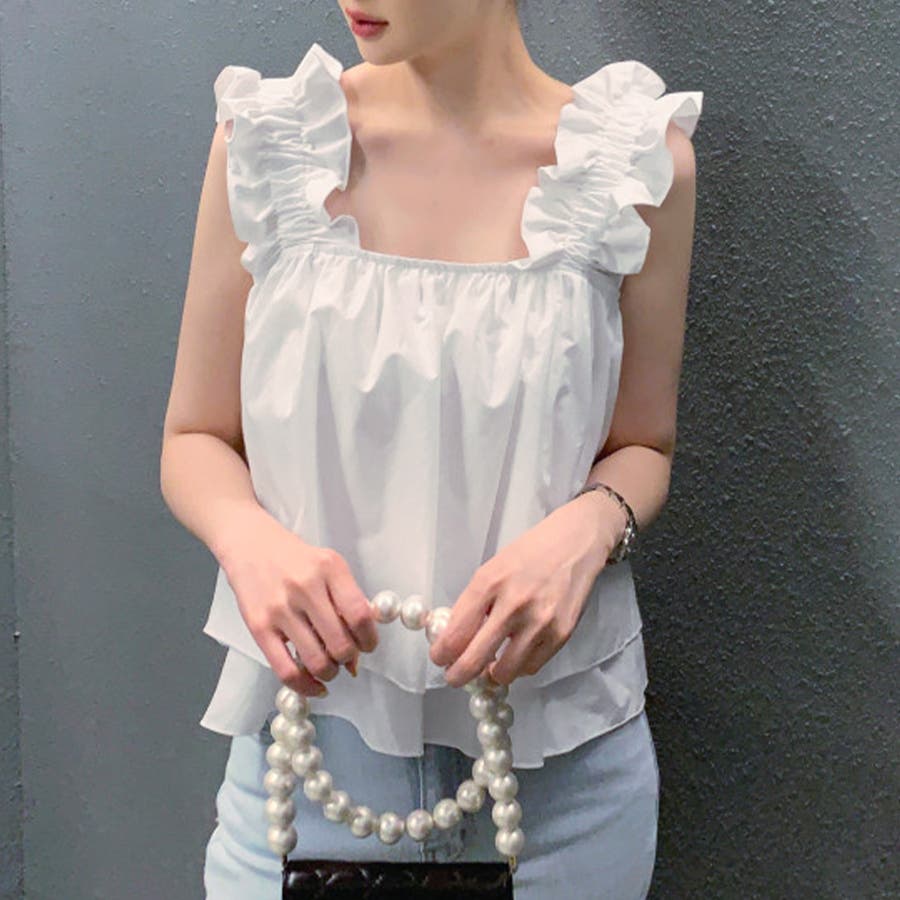 さらっとした肌触りが魅力の今季おすすめフリル付きタンクトップが新登場♪