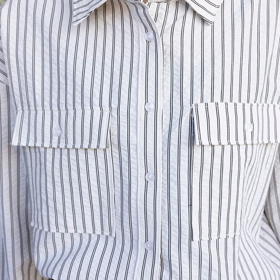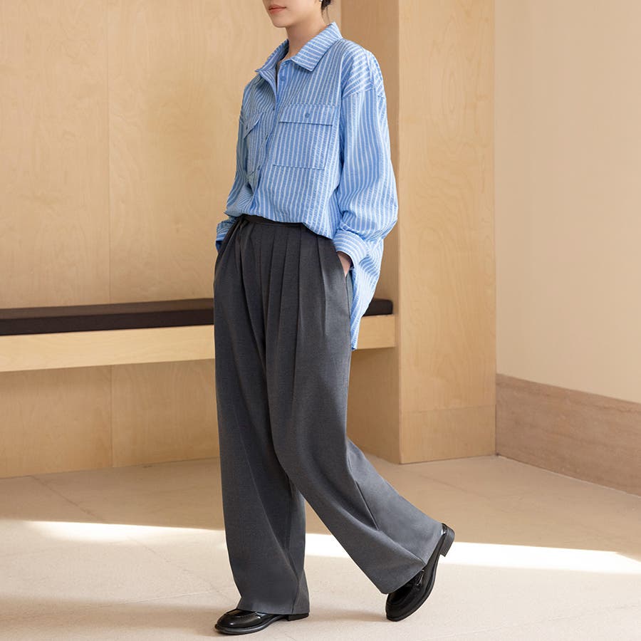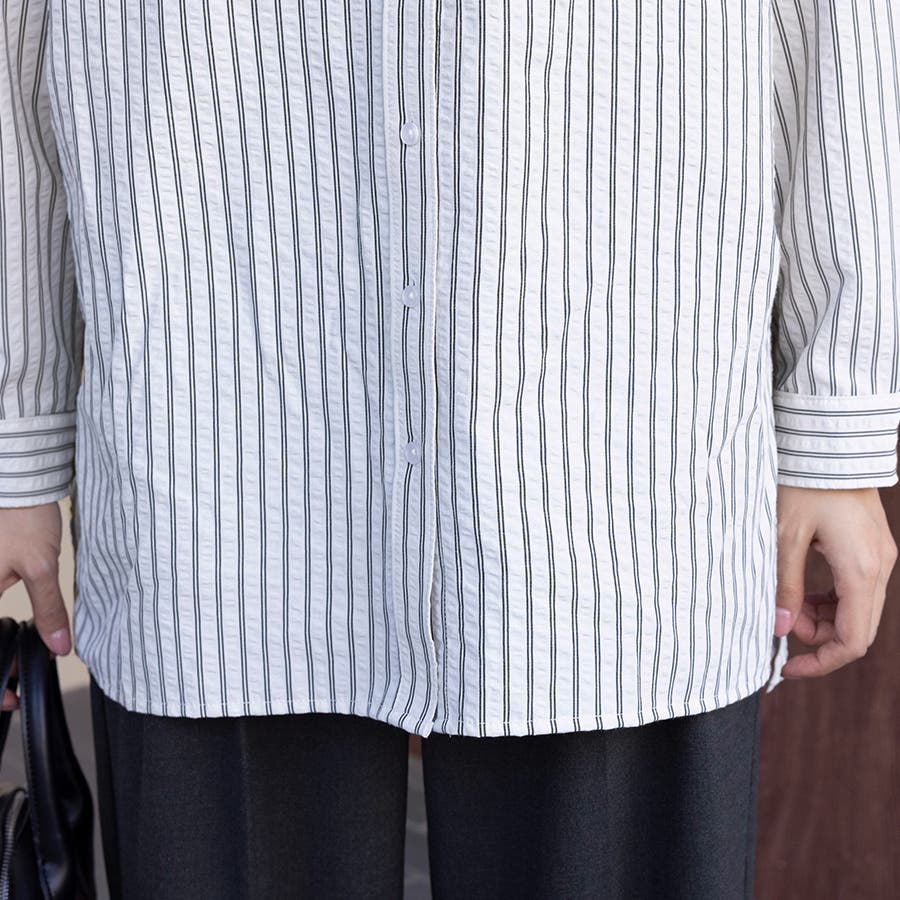控えめながらも存在感のあるストライプ柄はオフィスシーンからカジュアルシーンまで幅広く対応。