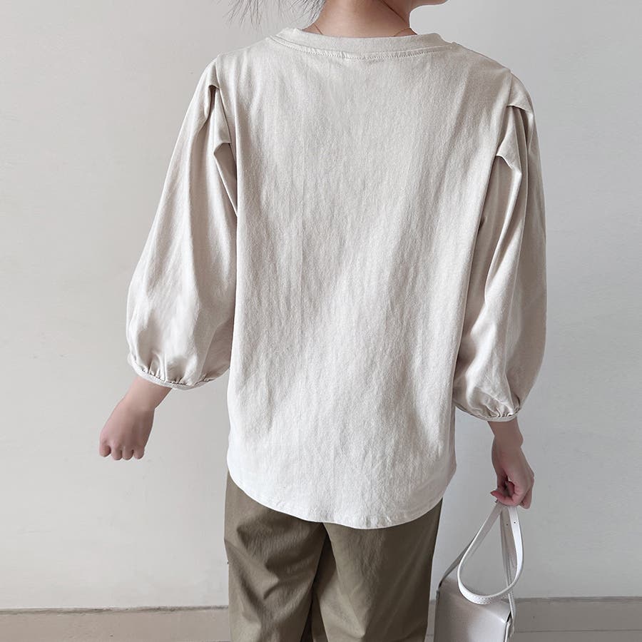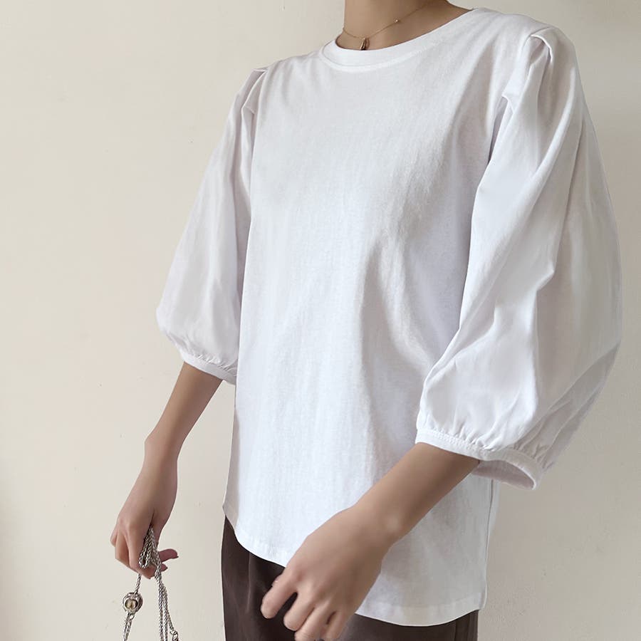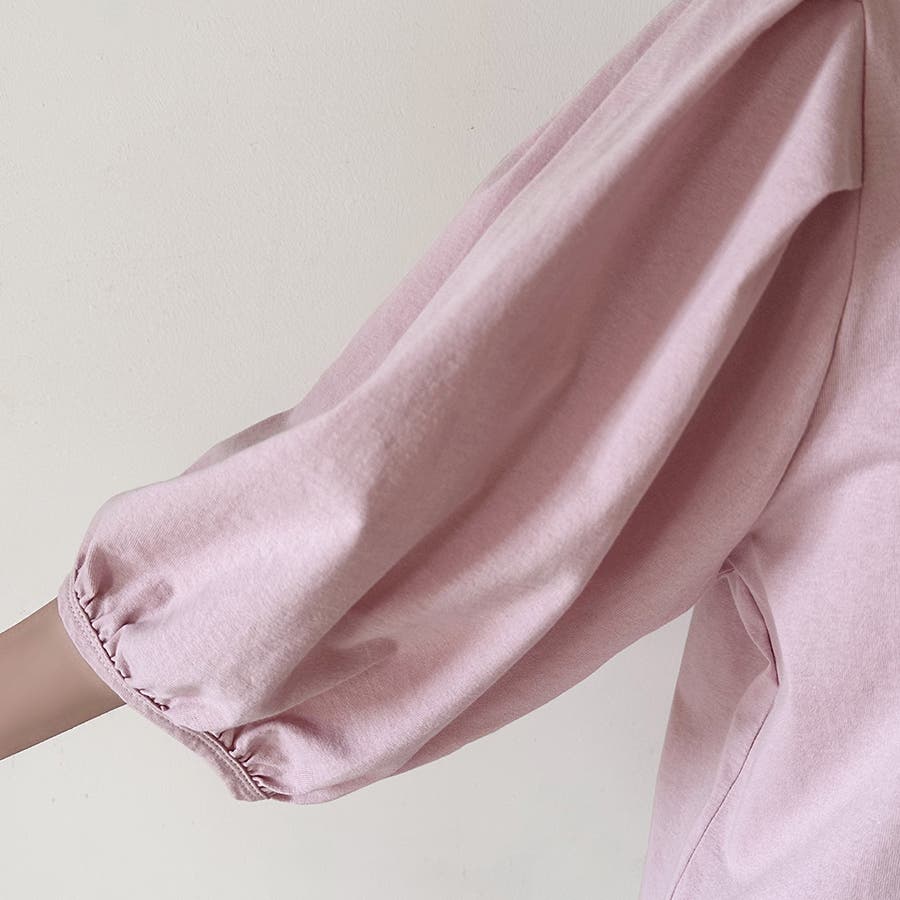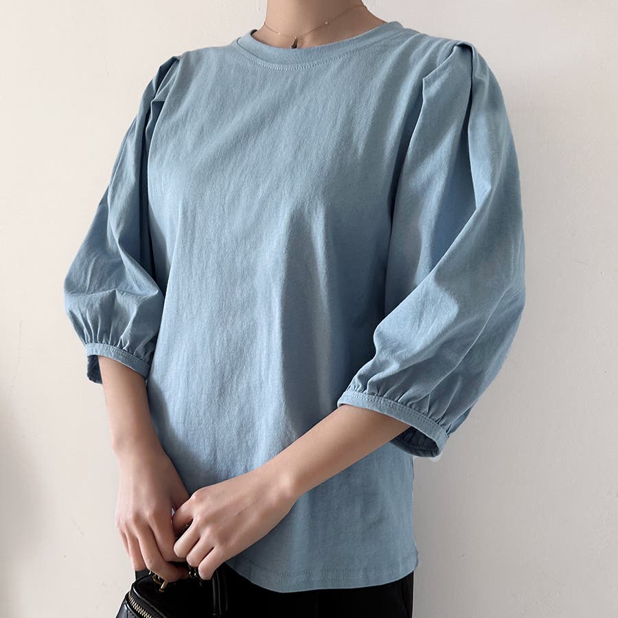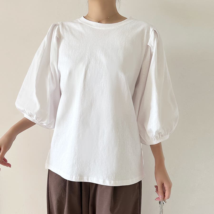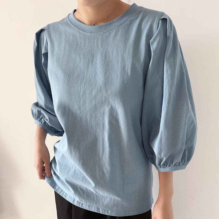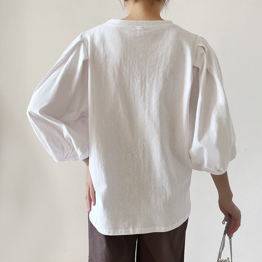 ボリュームスリーブでややボリューム感がありながら、ラウンドネックでスッキリ綺麗めに仕上げました。