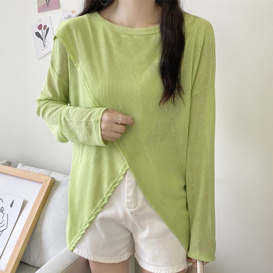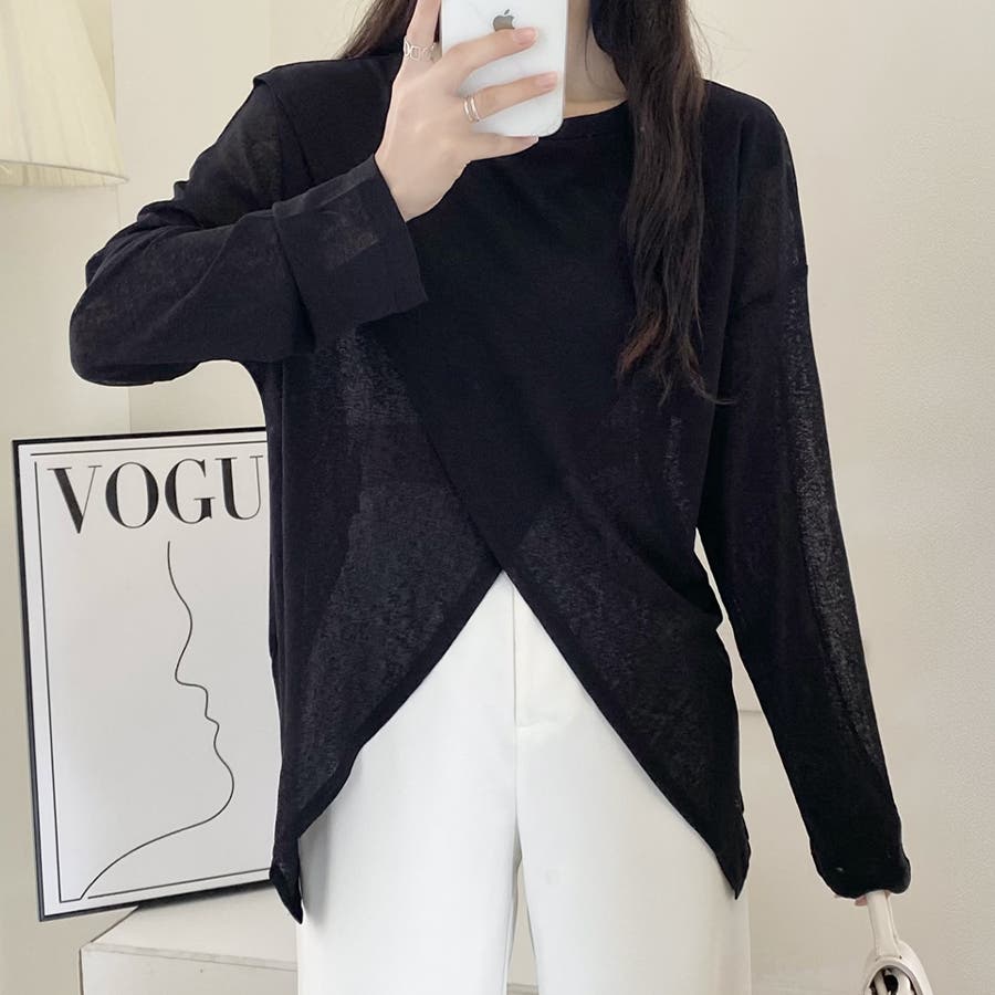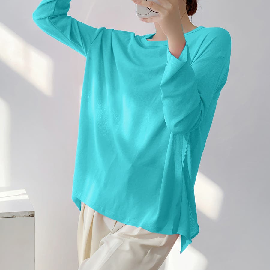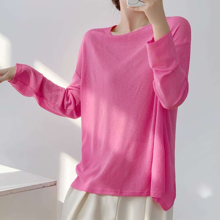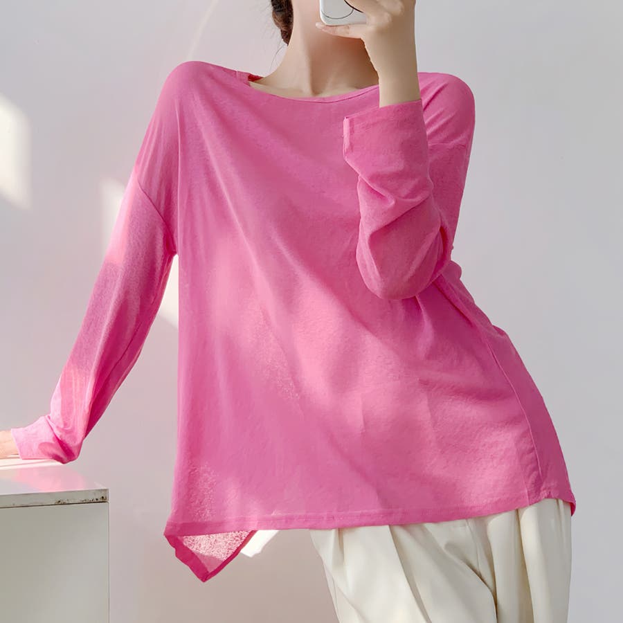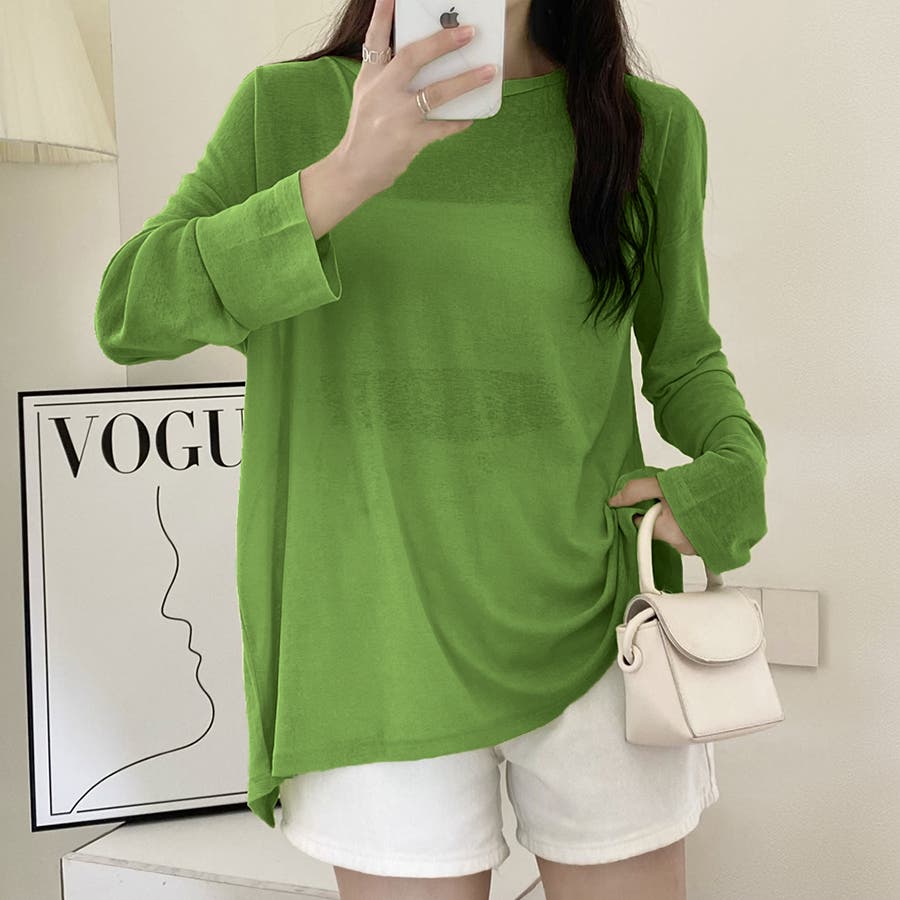薄めの素材で春~秋までロングシーズンで活躍する万能アイテムです♪