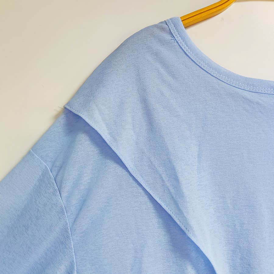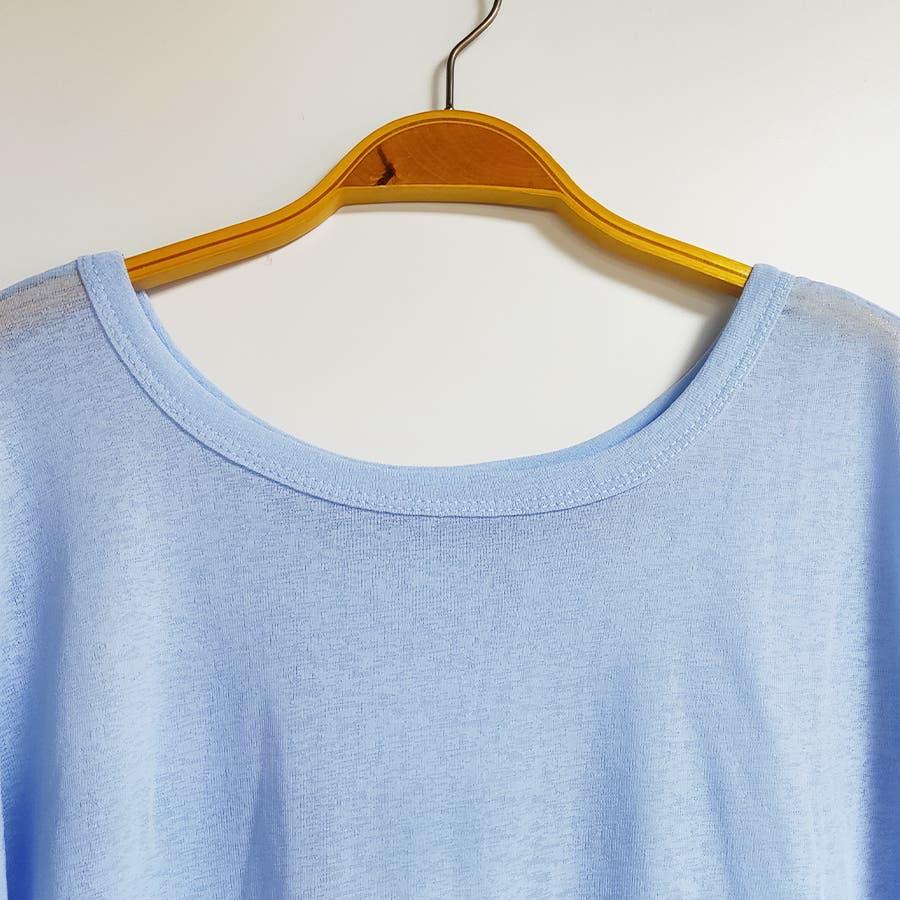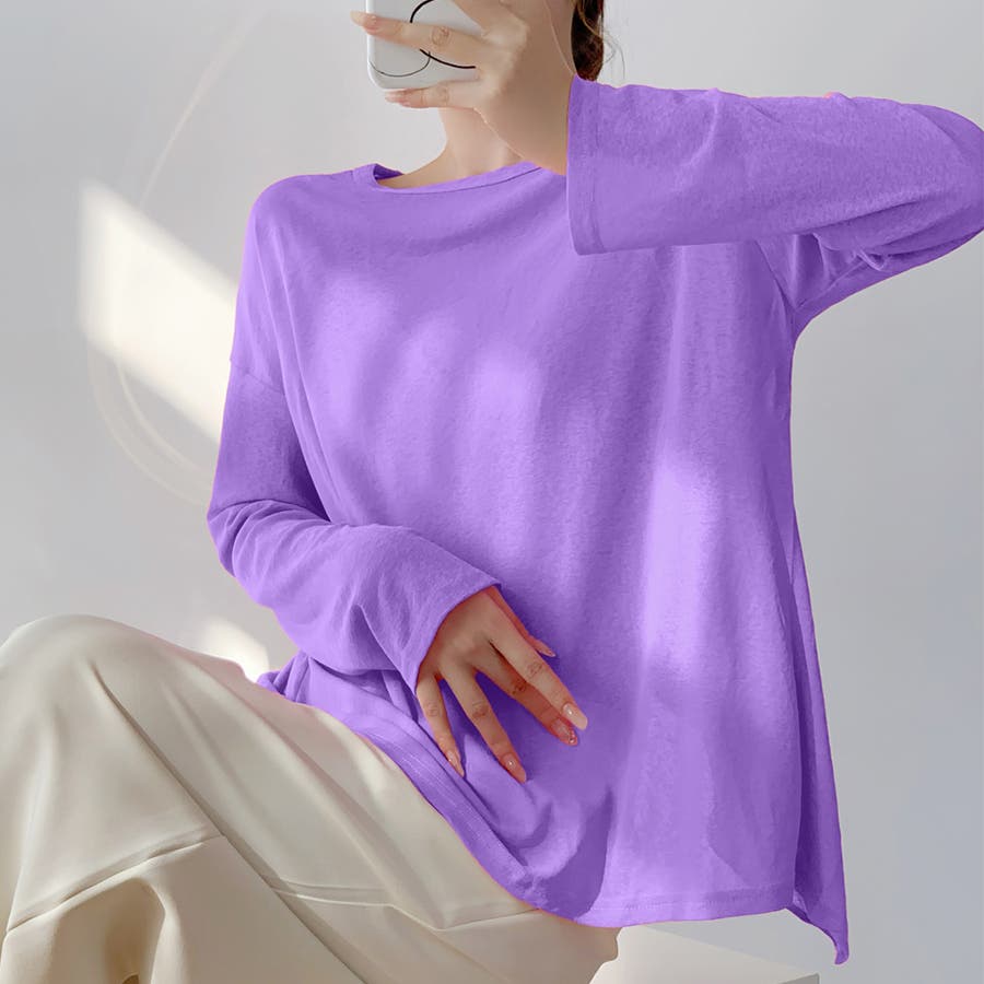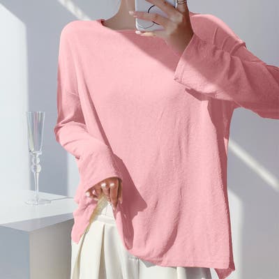 ゆったり長めの丈感でボリュームをとりながら、ラウンドネックでスッキリ綺麗めに仕上げました。
