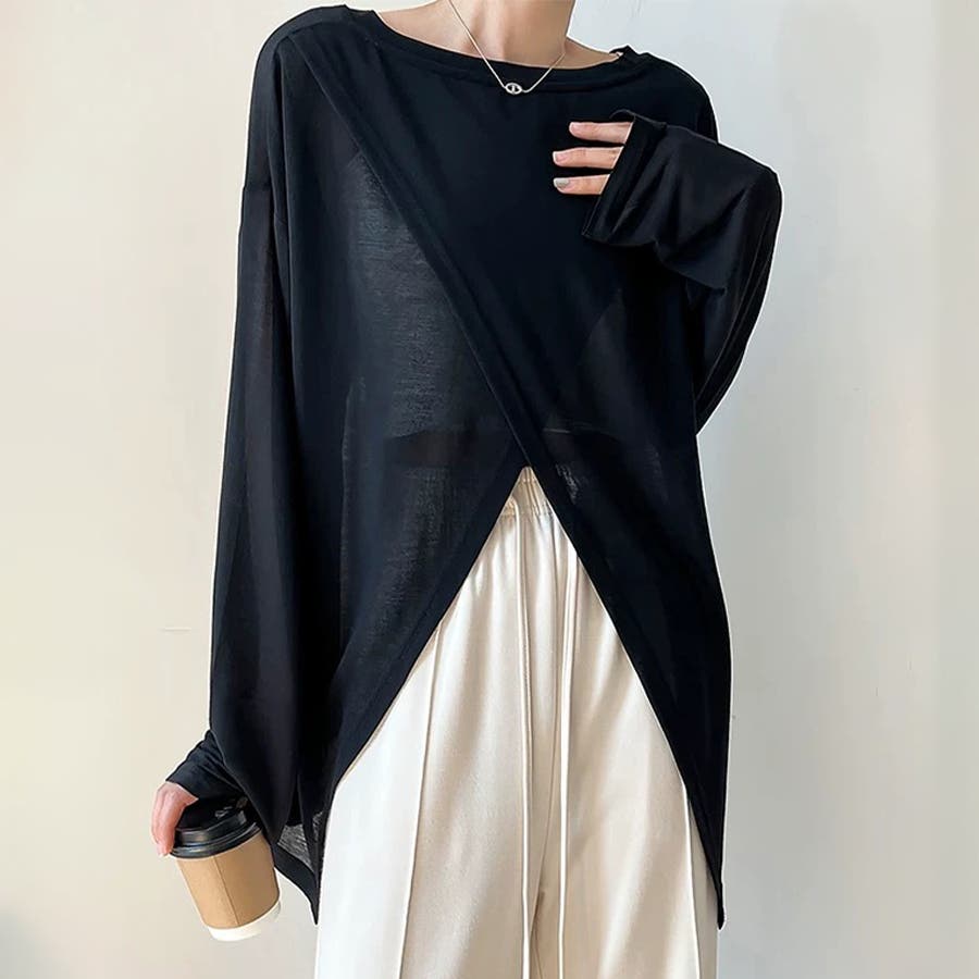 前後2way仕様!透け感を大人上品に表現するシアーロングシャツが新登場!