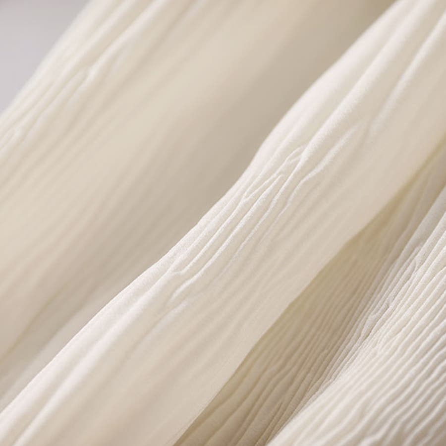 袖と裾のプリーツが揺れ、軽やかでフェミニンな印象に。