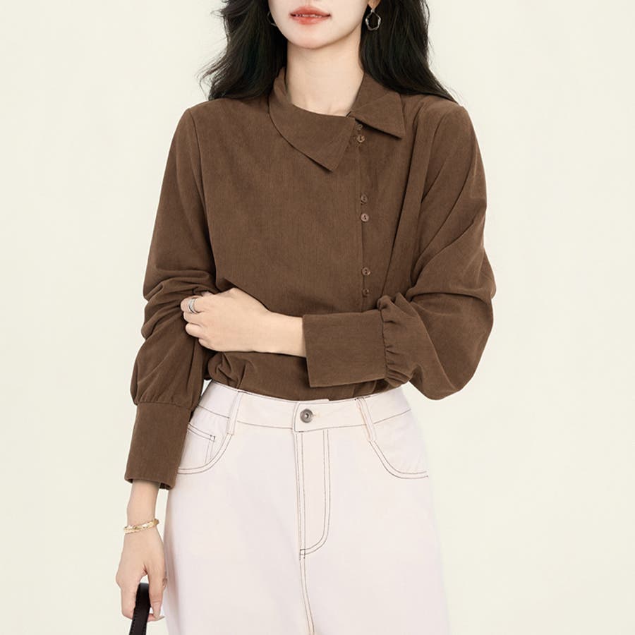アシメボタン×バックタックブラウス