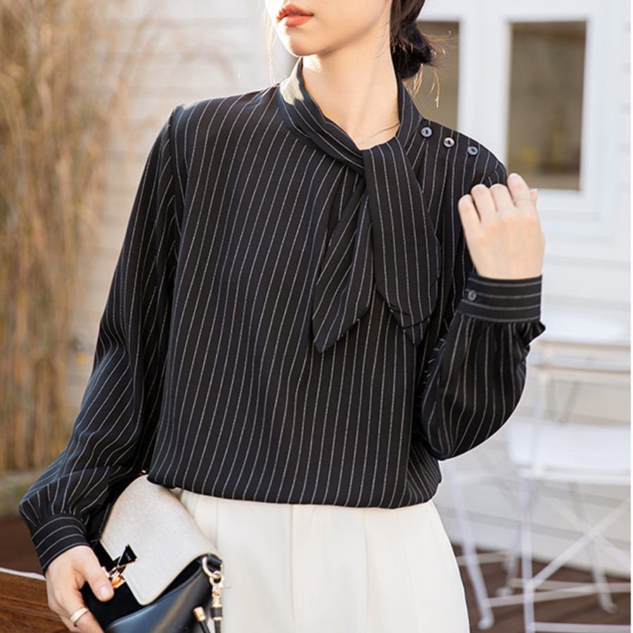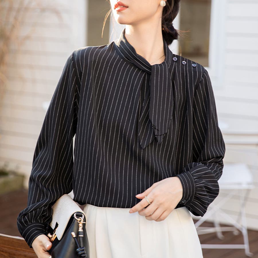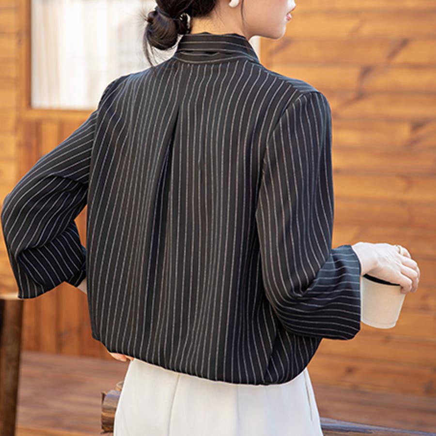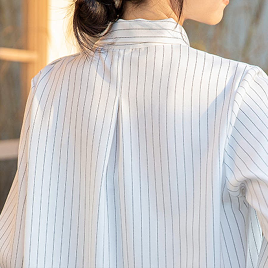 ストライプ柄ボウタイブラウス