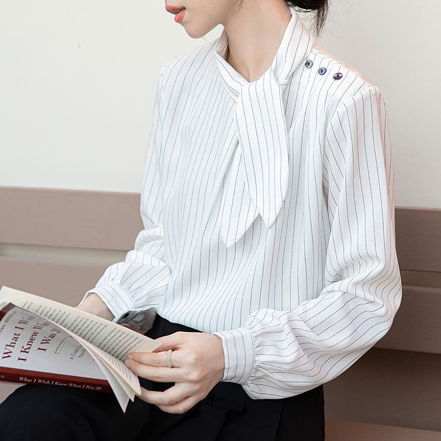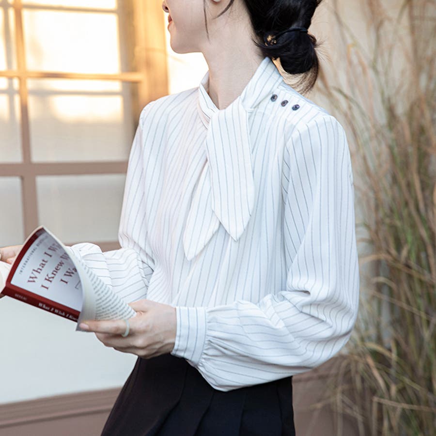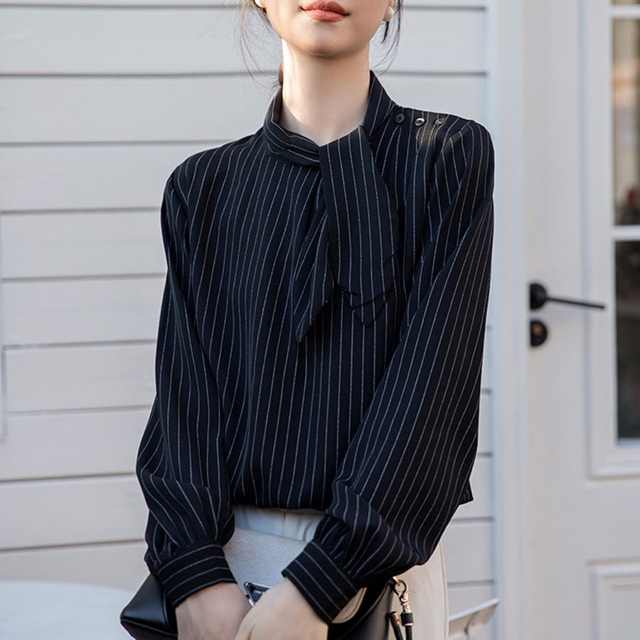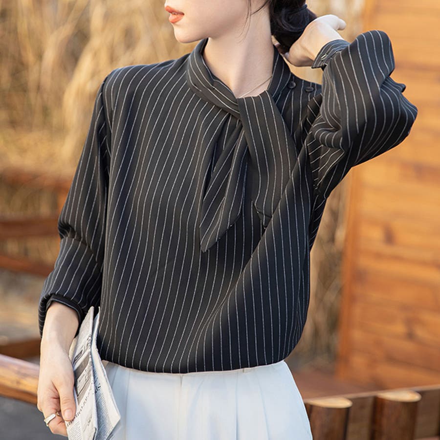 ストライプ柄ボウタイブラウス