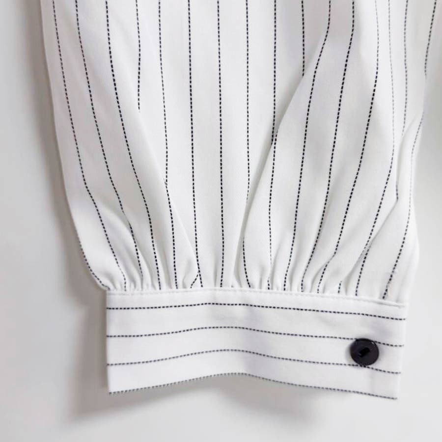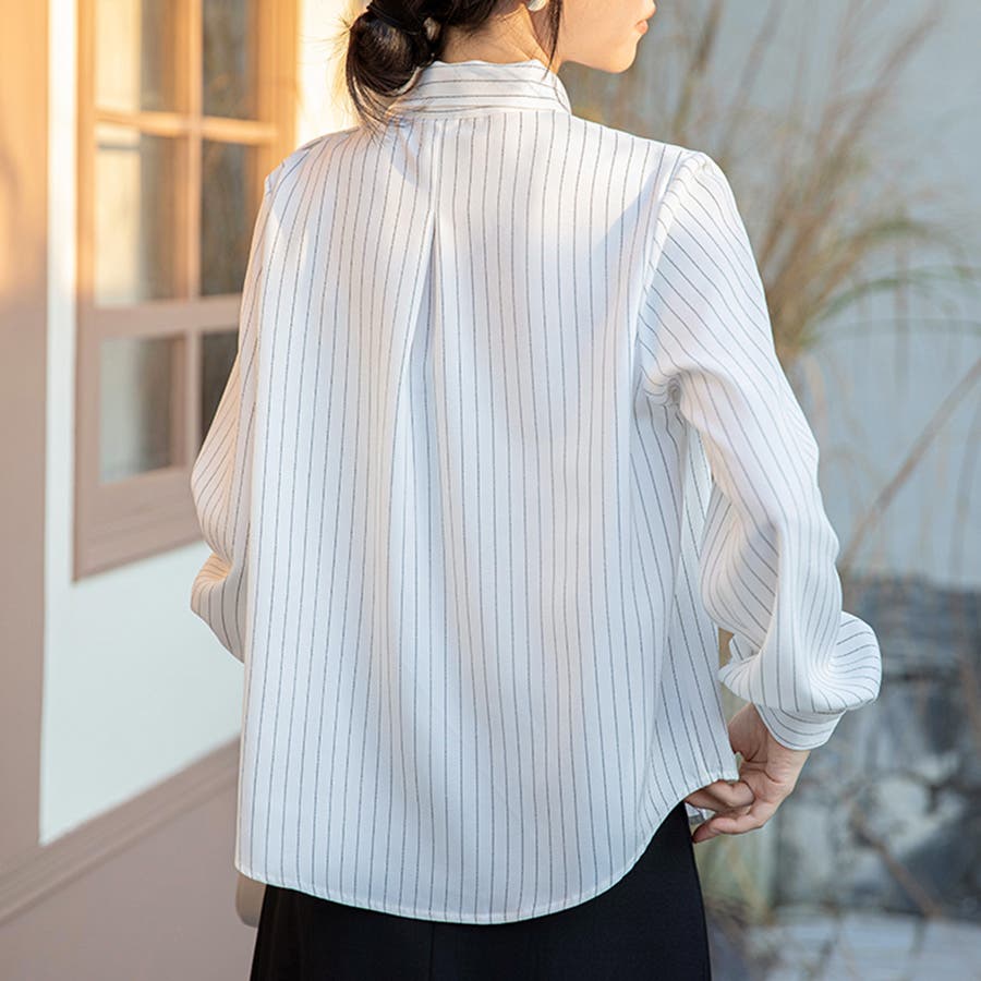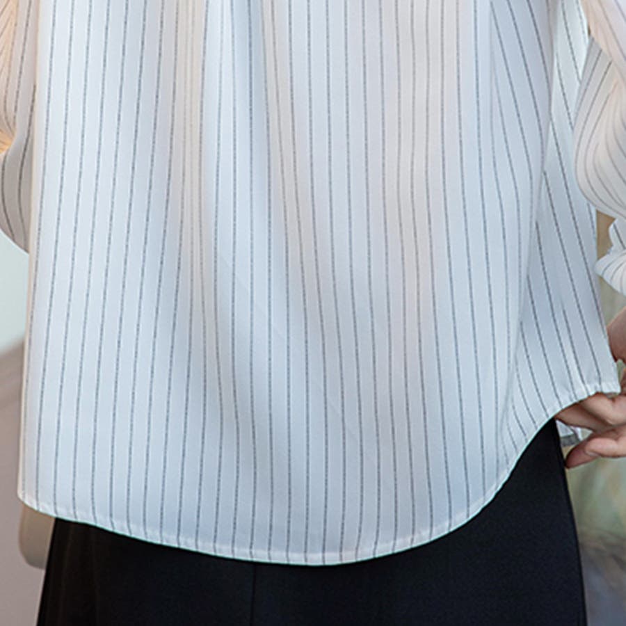 ストライプ柄が印象的な長袖ブラウスです。
