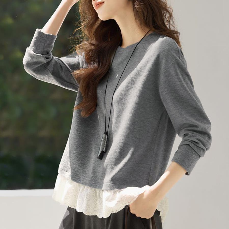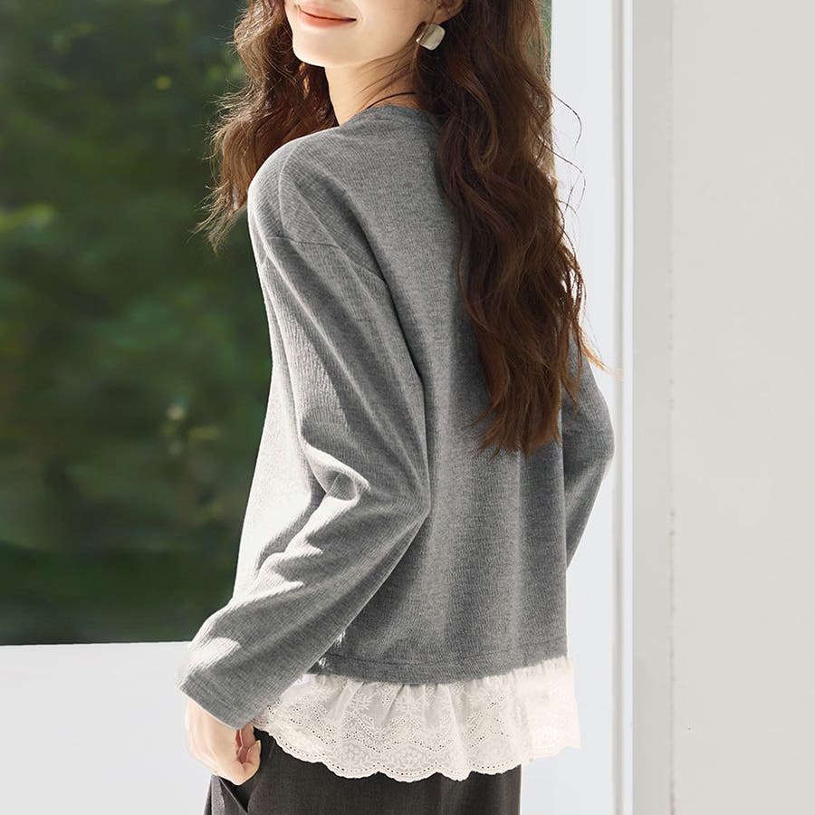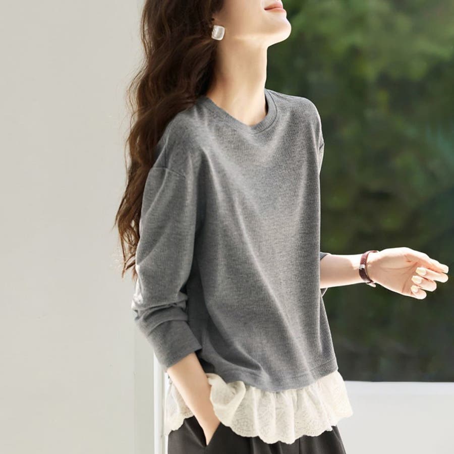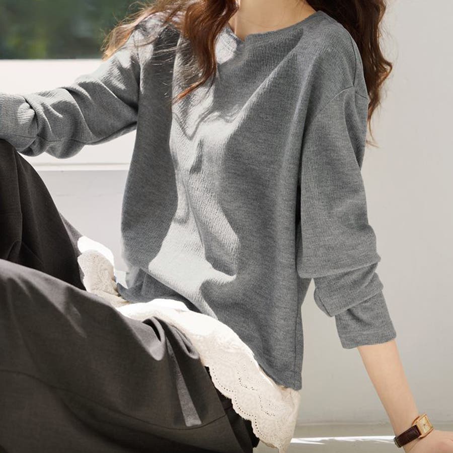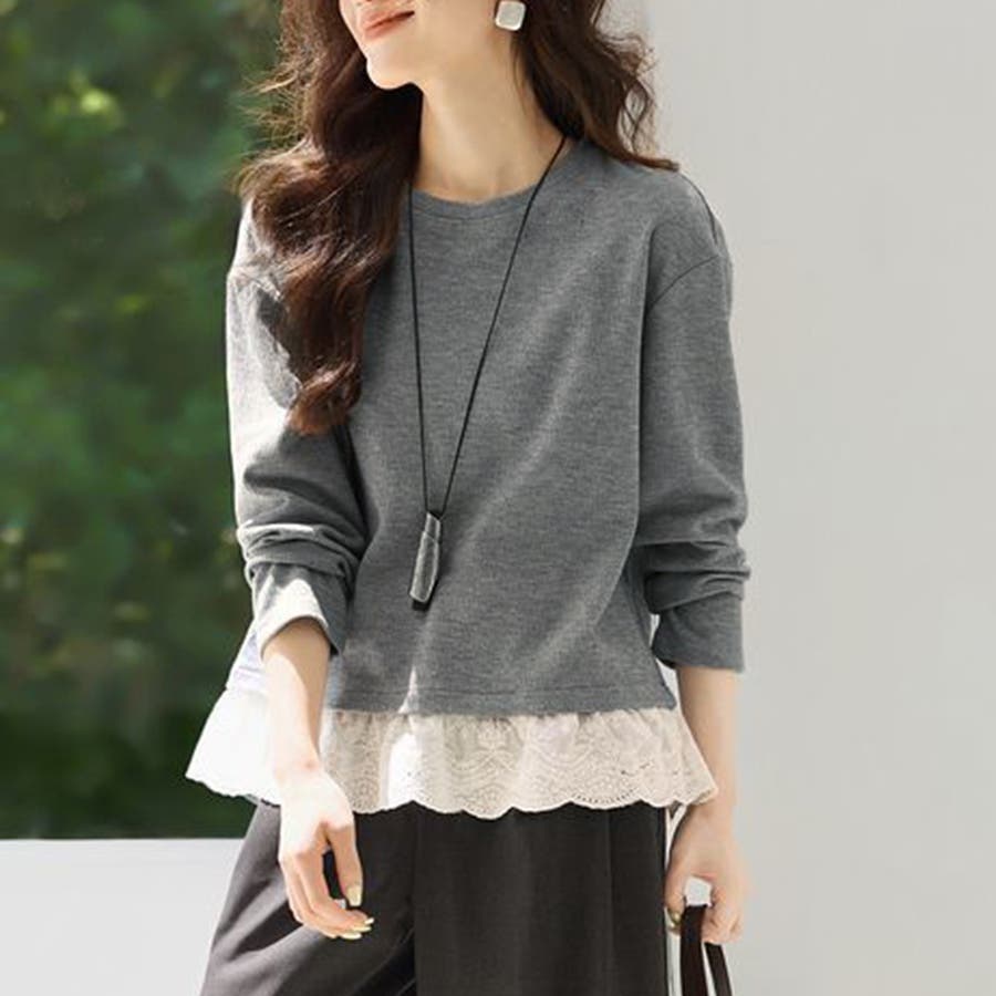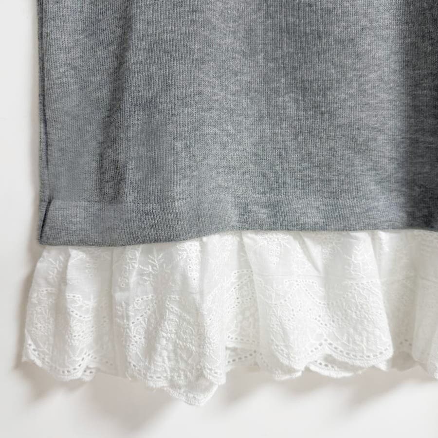レース部分が揺れるたびに華やかさを演出し、シンプルながらも着映えする一枚です。