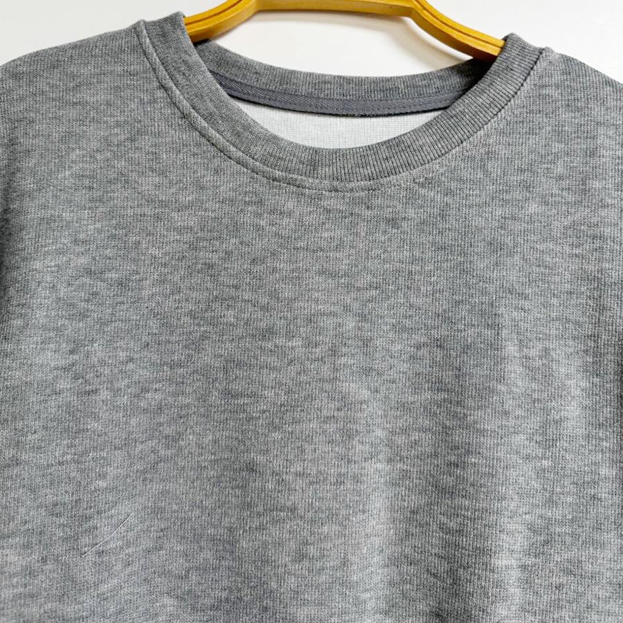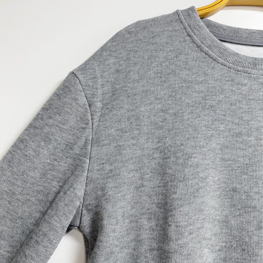 ラウンドネック仕様で、顔まわりをすっきりと見せてくれます。