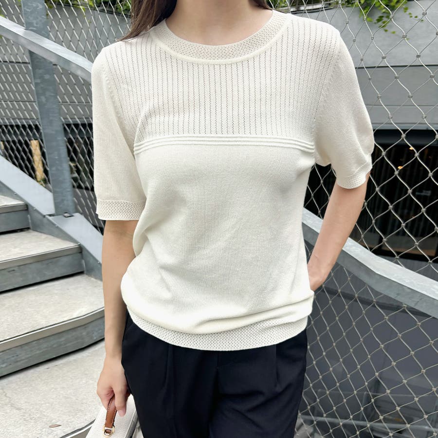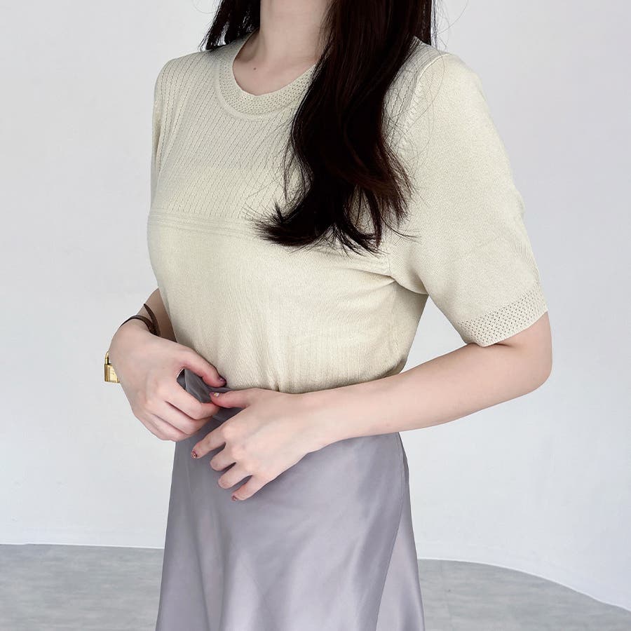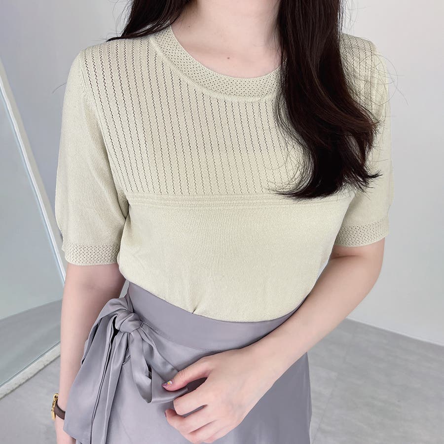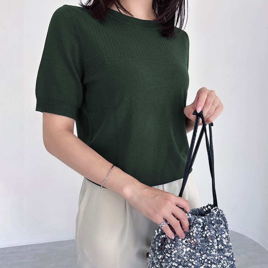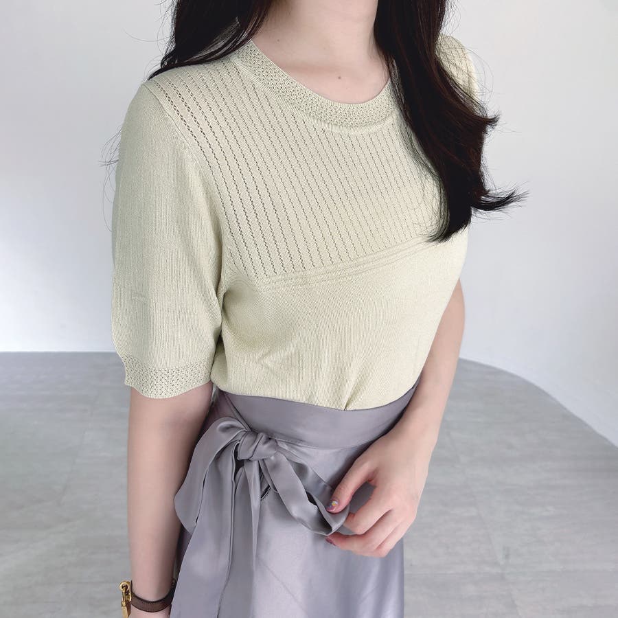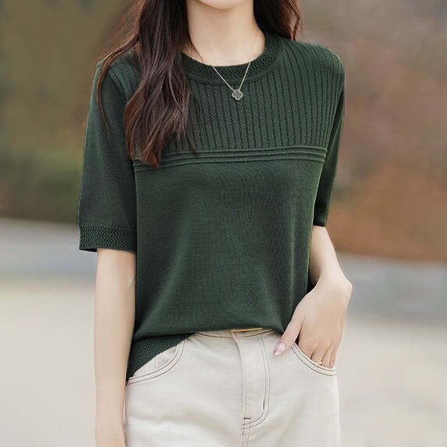 リブ切り替え×半袖ニットトップス