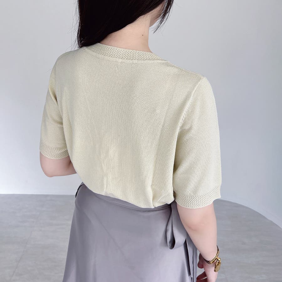 胸元と袖口部分には細かいメッシュ編を施し、上質なワンポイントをプラス。