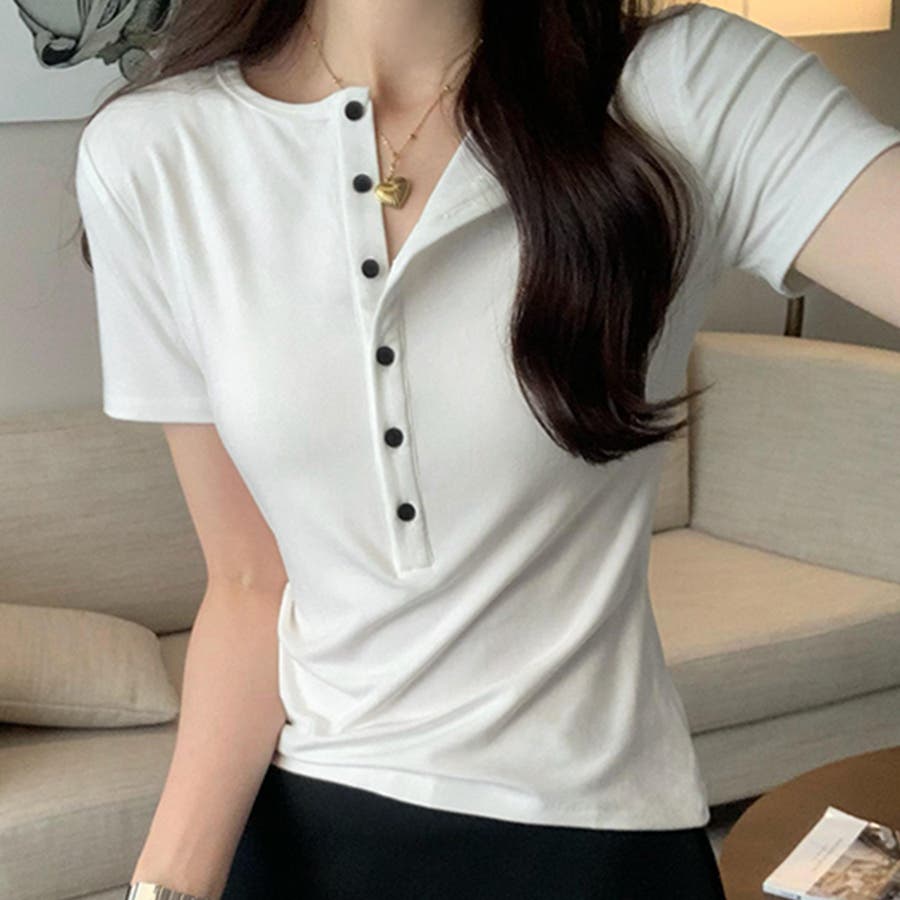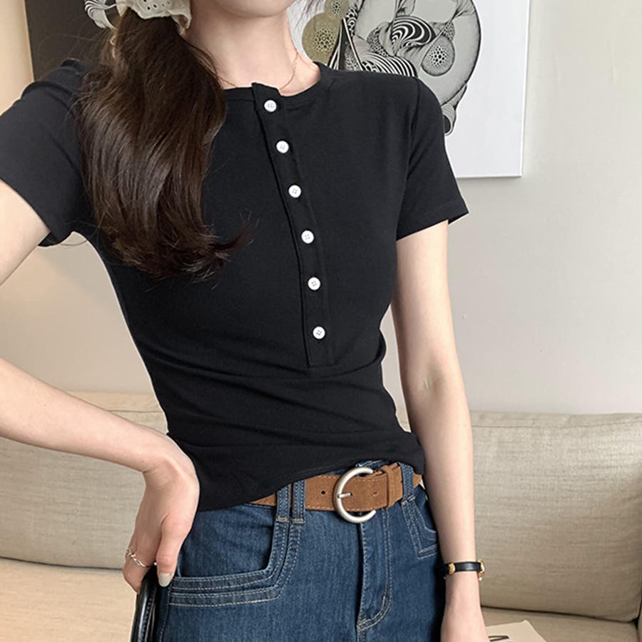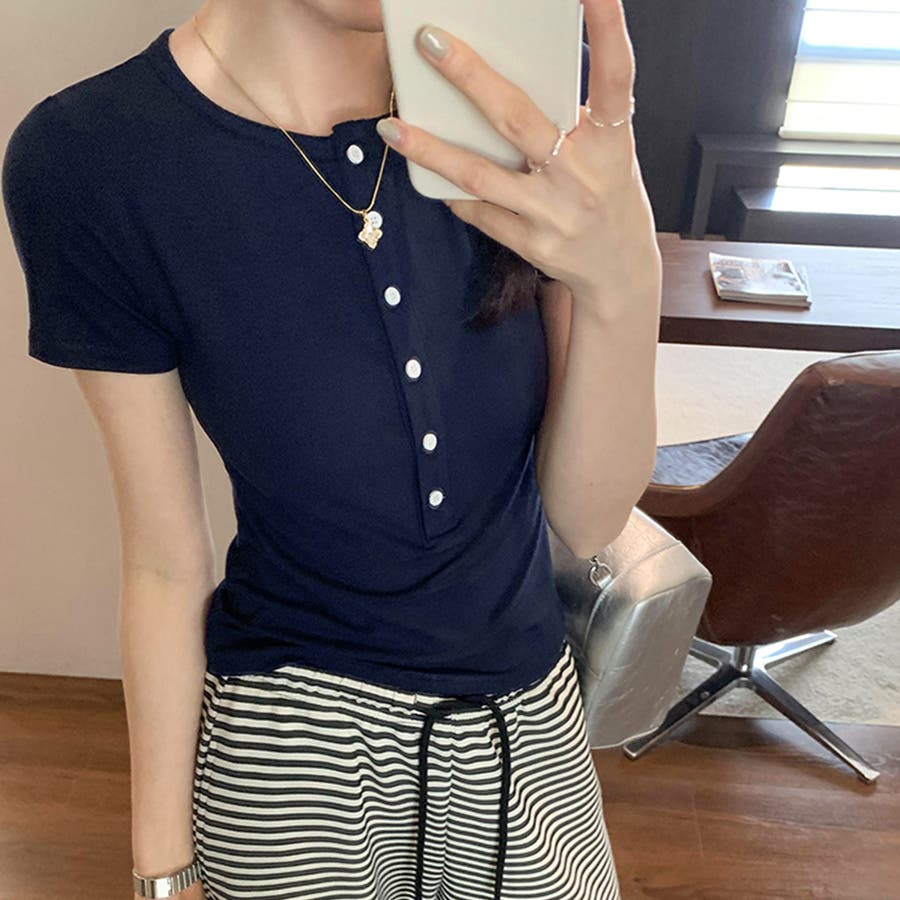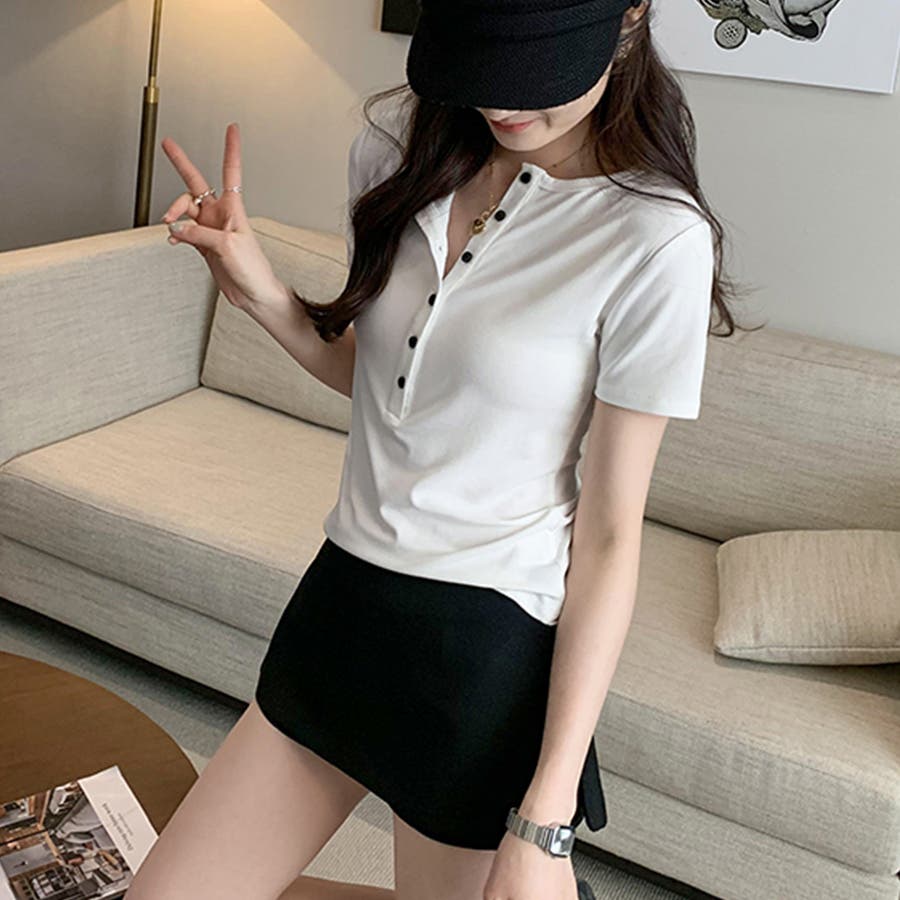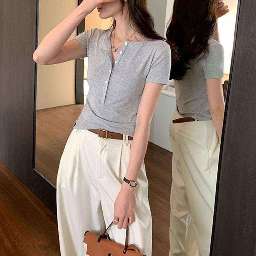 ハーフボタンヘンリーネックトップス